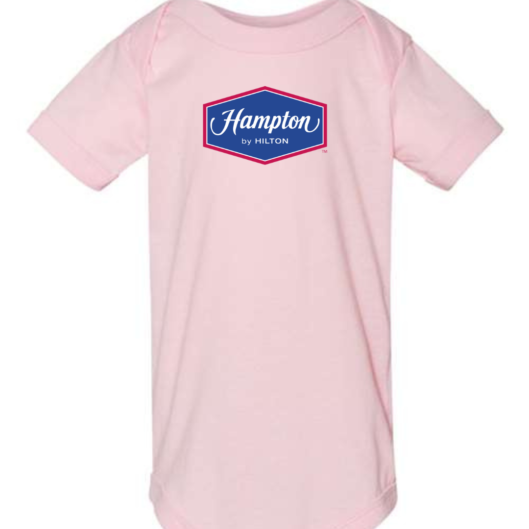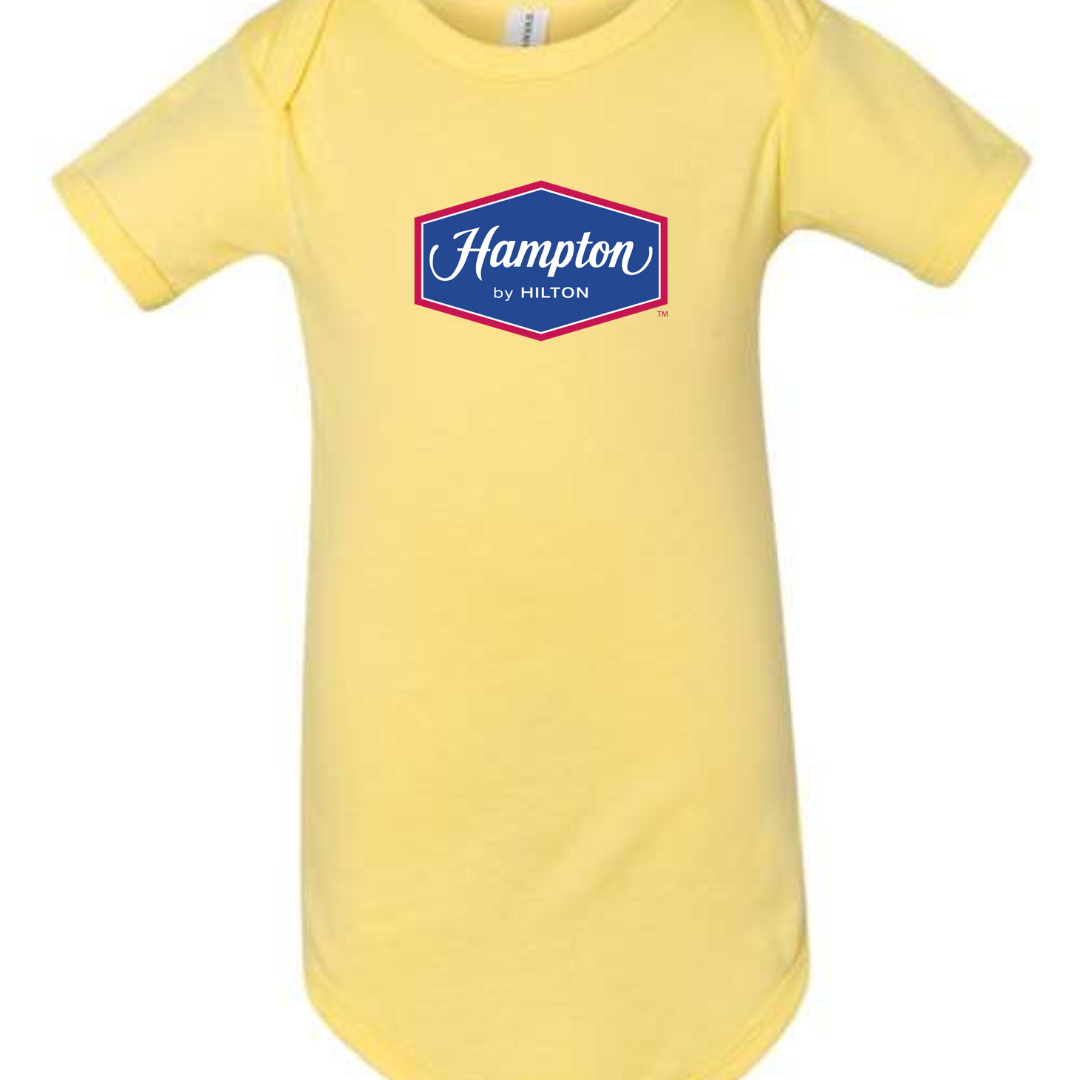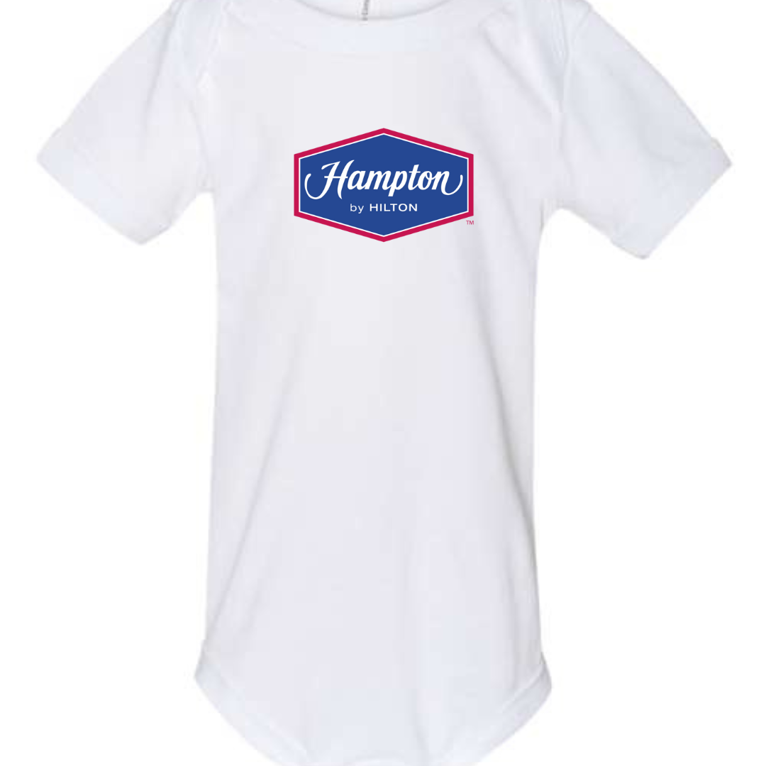 Give your tiny traveler a head start in hospitality style with our Hampton by Hilton Logo Infant Bodysuit. Featuring the recognizable Hampton emblem, this cozy one-piece is perfect for families who love road trips, hotel stays, and making memories together. Designed with soft, breathable fabric and easy snap closures, it’s ideal for comfort on the go. Available in sizes 3M to 24M.