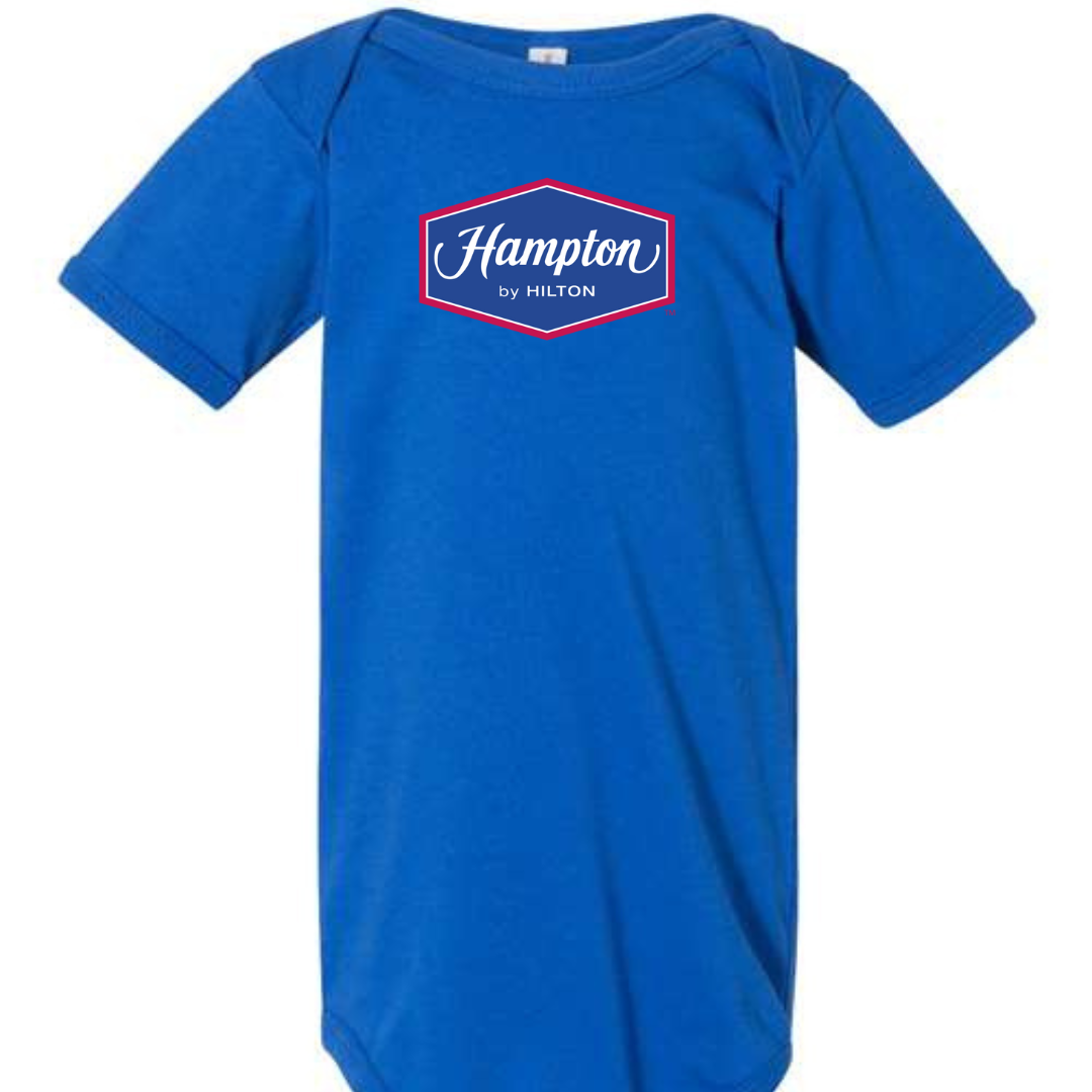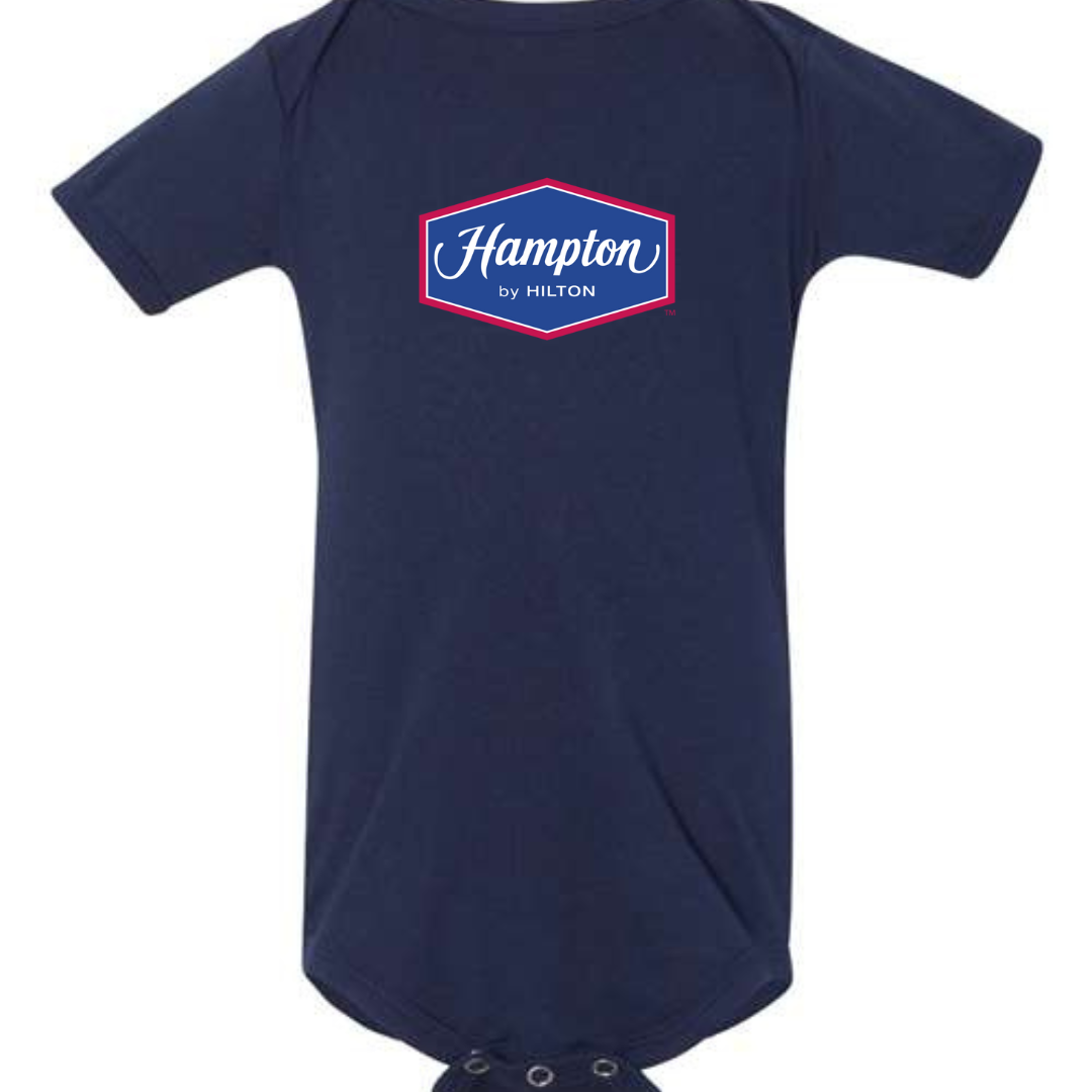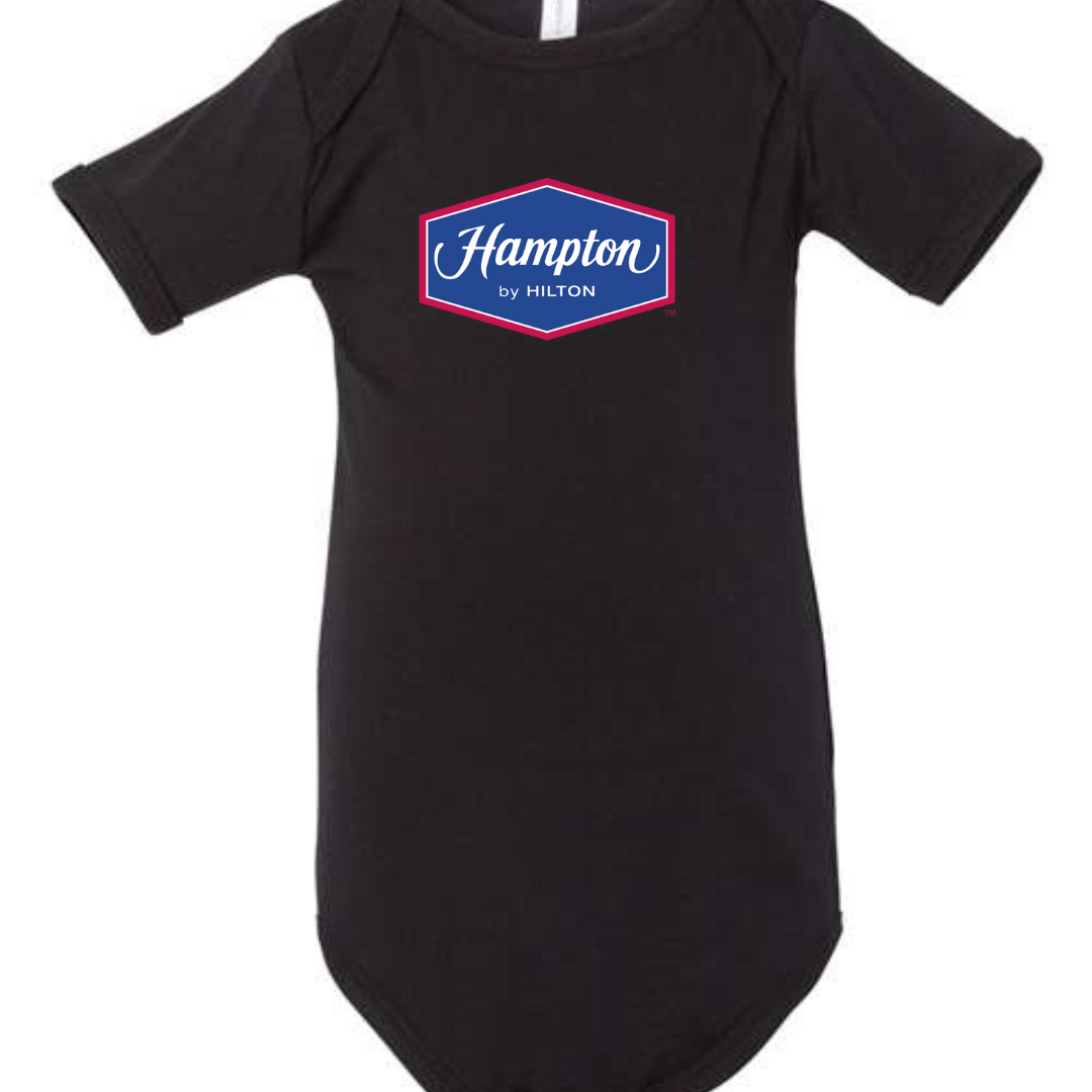 Give your tiny traveler a head start in hospitality style with our Hampton by Hilton Logo Infant Bodysuit. Featuring the recognizable Hampton emblem, this cozy one-piece is perfect for families who love road trips, hotel stays, and making memories together. Designed with soft, breathable fabric and easy snap closures, it’s ideal for comfort on the go. Available in sizes 3M to 24M.
