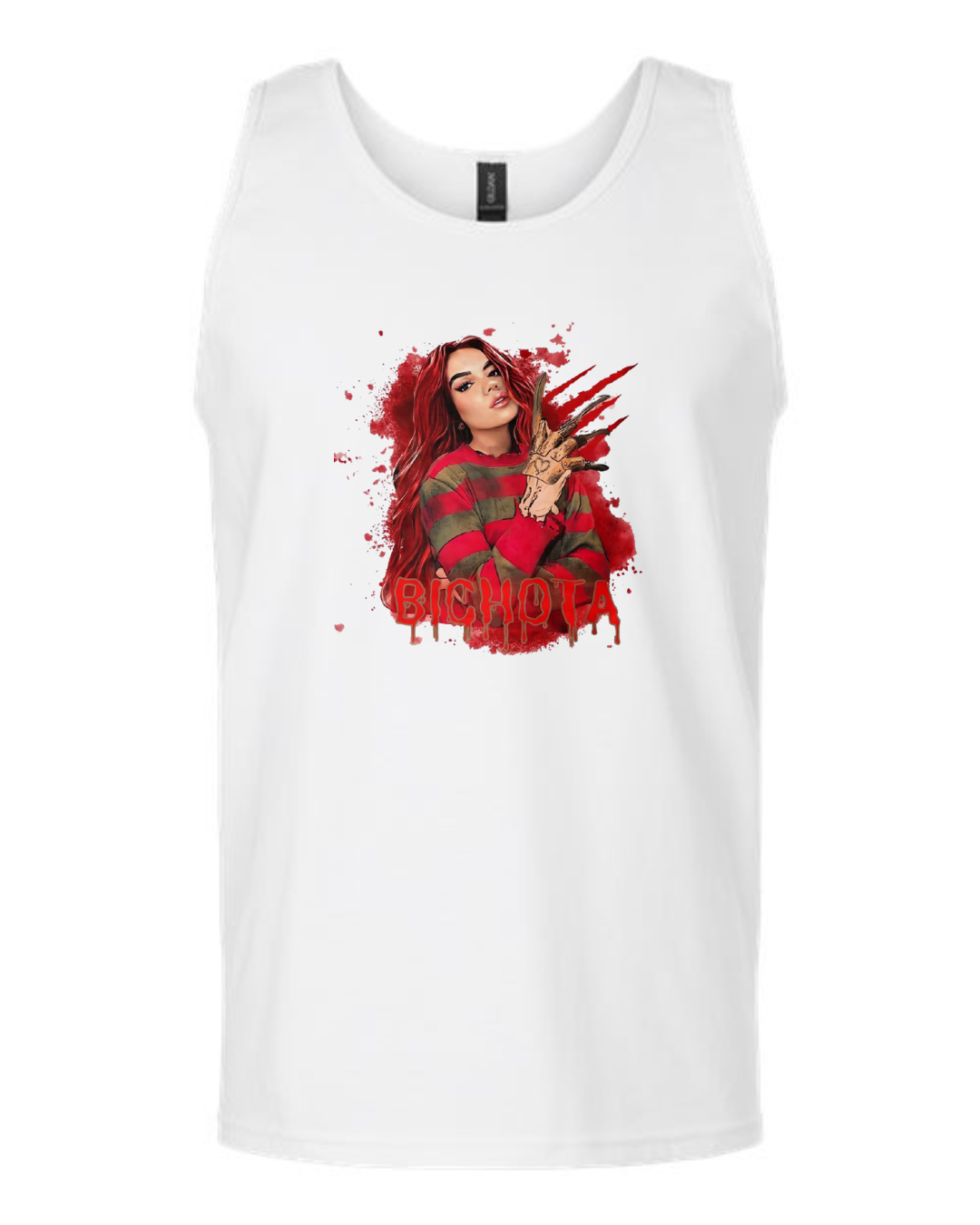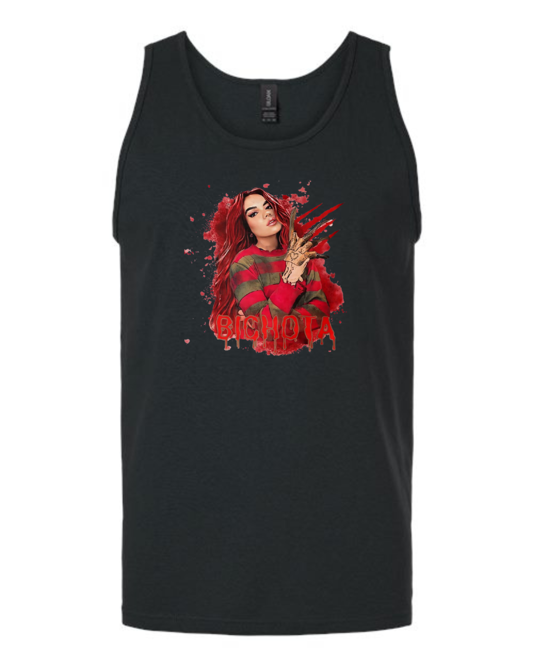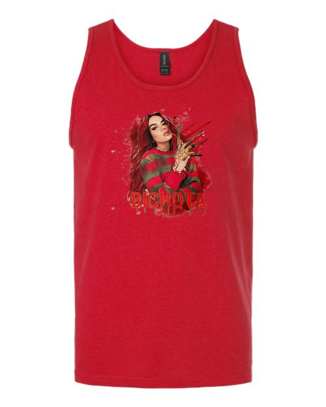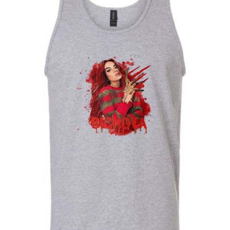 Unleash your dark side with our Horror Slasher Art Men’s Tank Top. Featuring a bold graphic of a fierce character inspired by classic slasher horror vibes, complete with blood-red accents and chilling claw details, this tank is perfect for horror fans and streetwear enthusiasts. Made from soft, breathable cotton-blend fabric, it’s ideal for concerts, Halloween events, or making a bold everyday statement. Available in sizes S to 2XL.