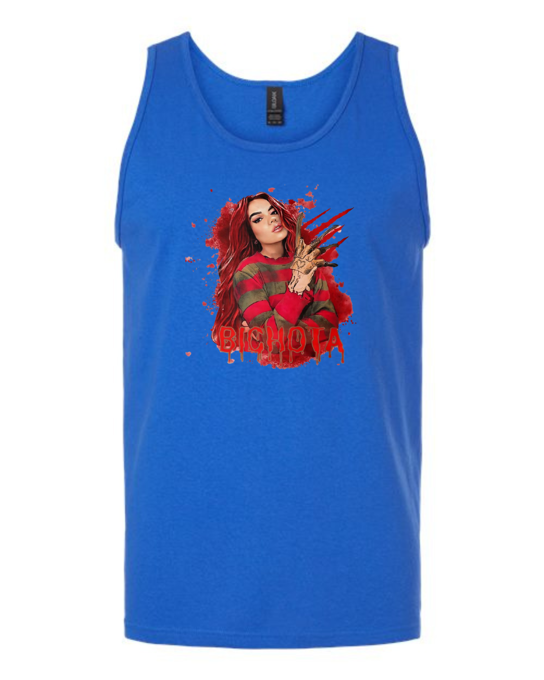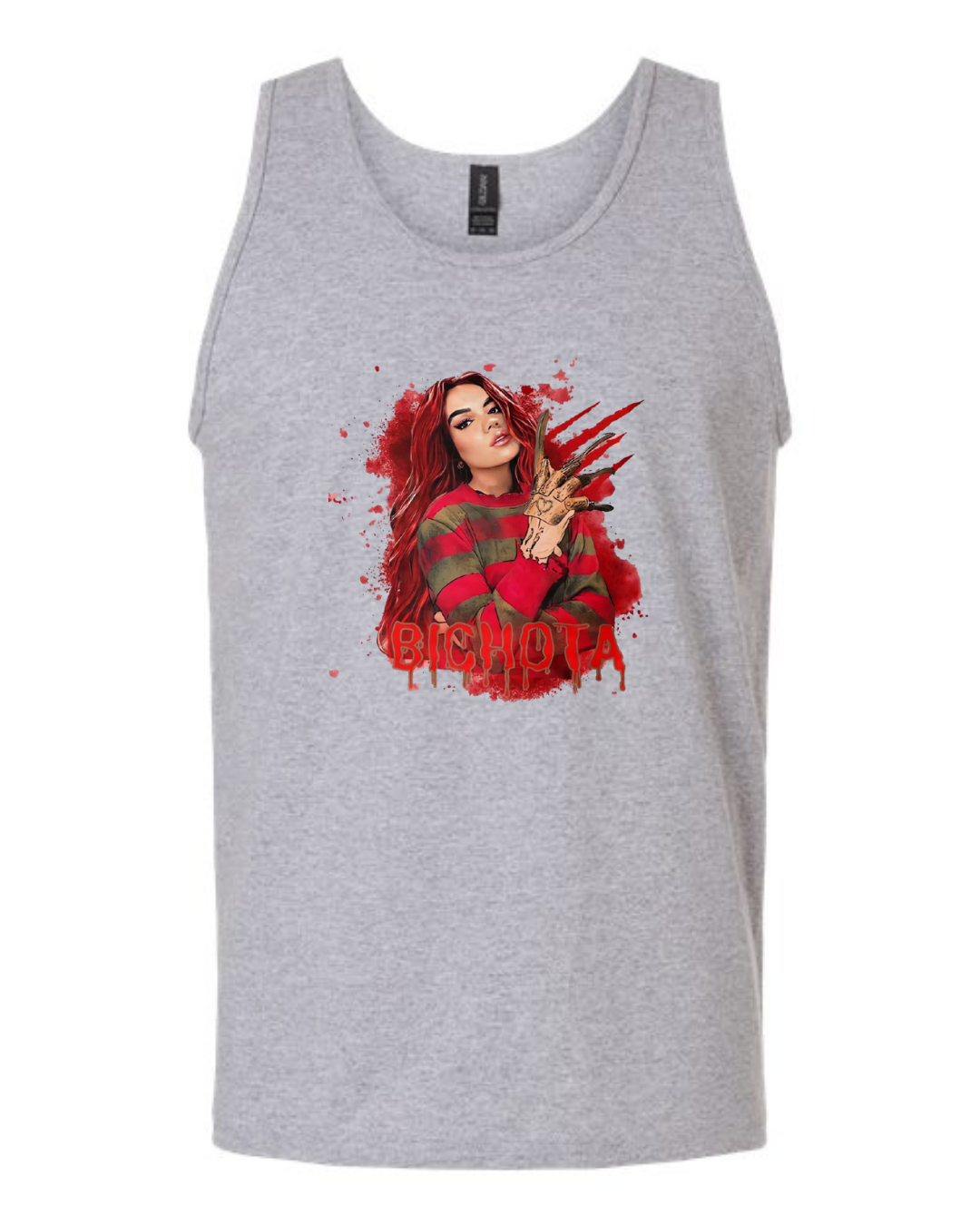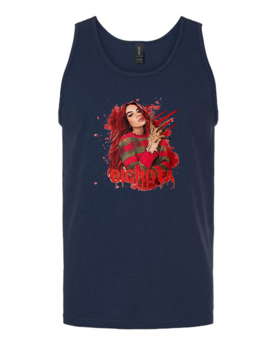 Unleash your dark side with our Horror Slasher Art Men’s Tank Top. Featuring a bold graphic of a fierce character inspired by classic slasher horror vibes, complete with blood-red accents and chilling claw details, this tank is perfect for horror fans and streetwear enthusiasts. Made from soft, breathable cotton-blend fabric, it’s ideal for concerts, Halloween events, or making a bold everyday statement. Available in sizes S to 2XL.
