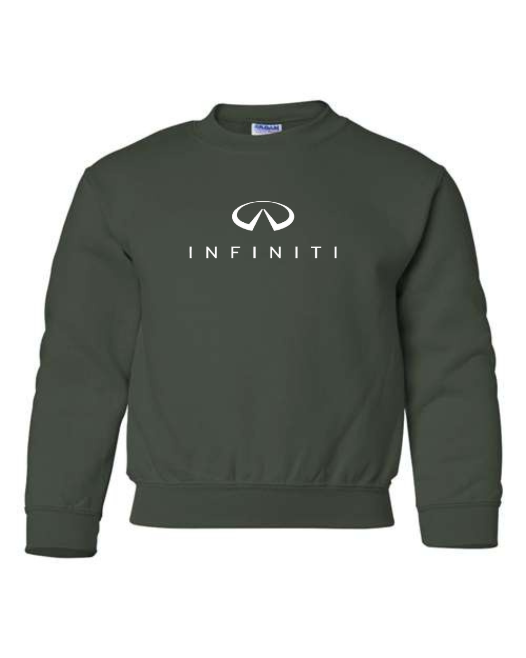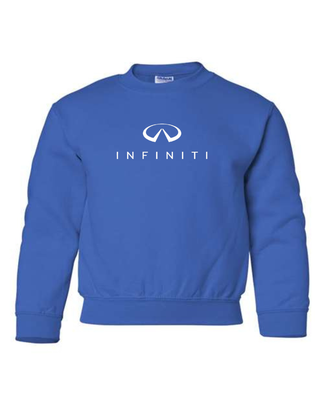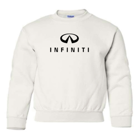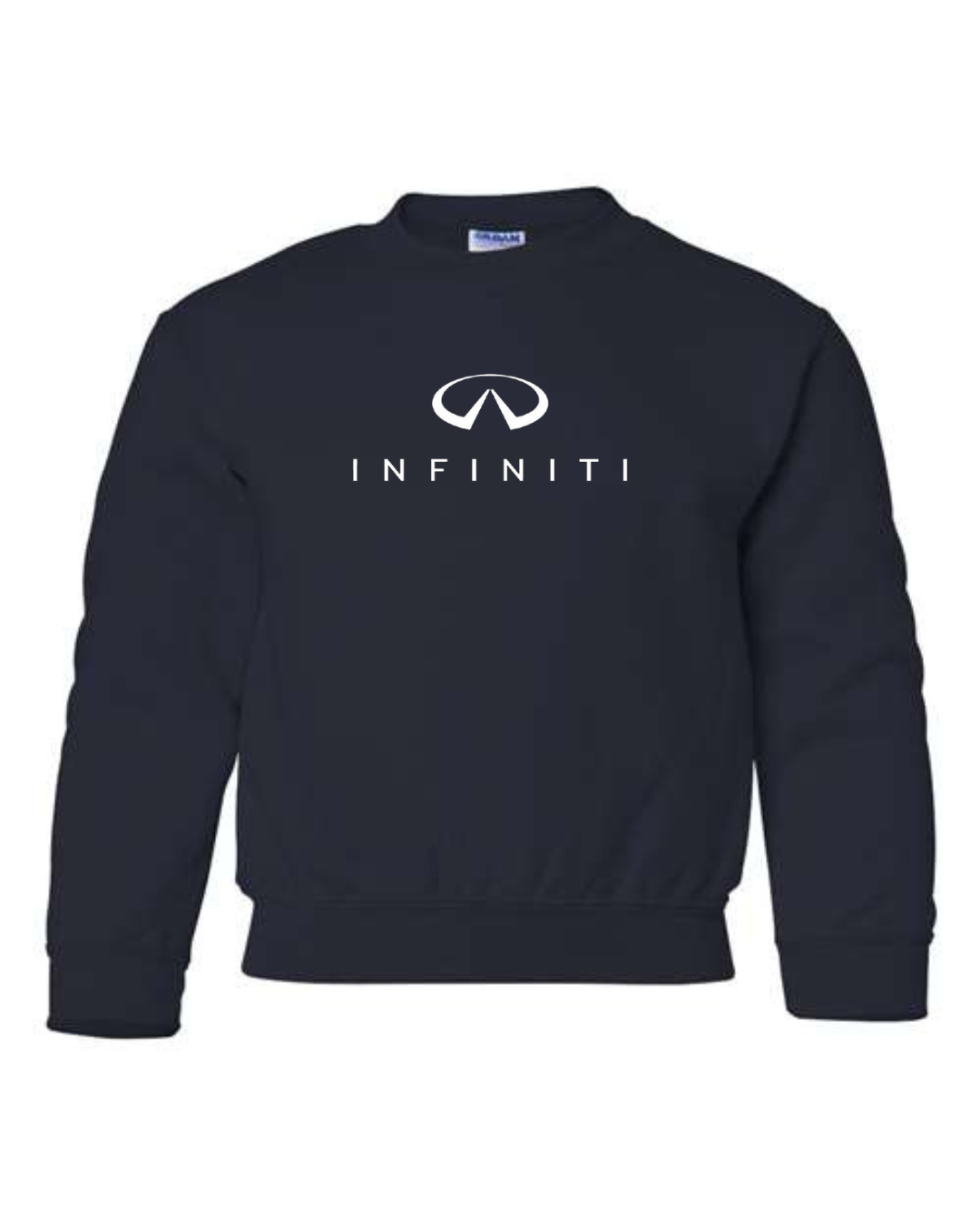 Elevate their everyday look with the sleek Infiniti Logo Black Youth Sweatshirt. Featuring the premium Infiniti emblem across the chest, this pullover fuses modern luxury with everyday comfort. Ideal for young auto enthusiasts or fans of minimalist design, it’s crafted for durability and warmth perfect for school, play, or just relaxing in style. Available in youth sizes XS to XL.