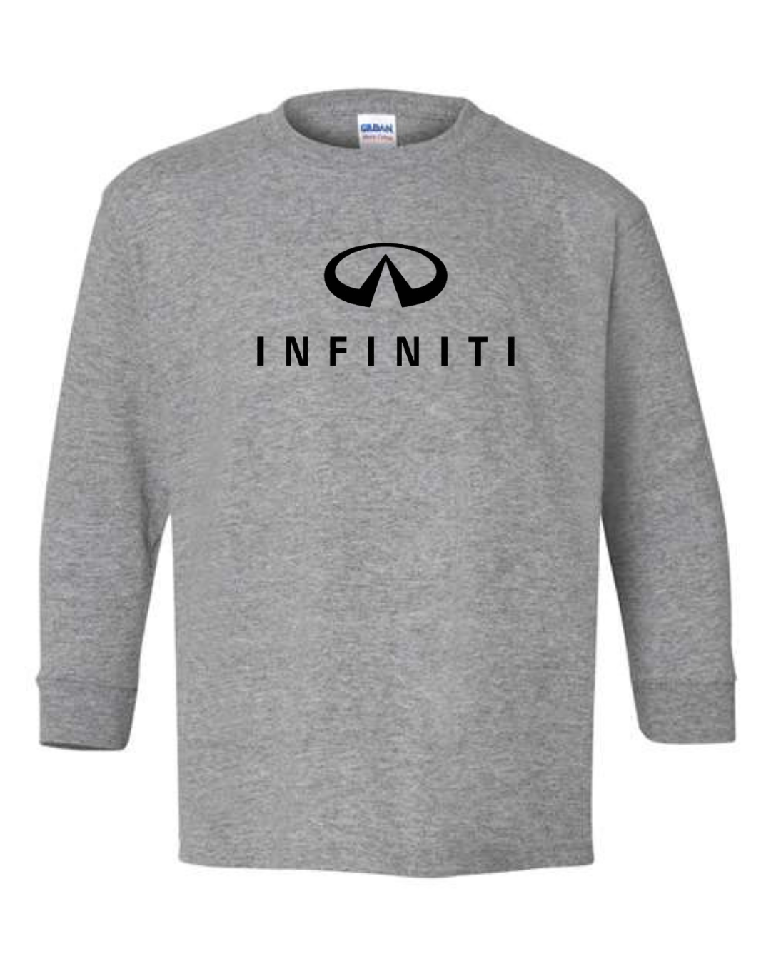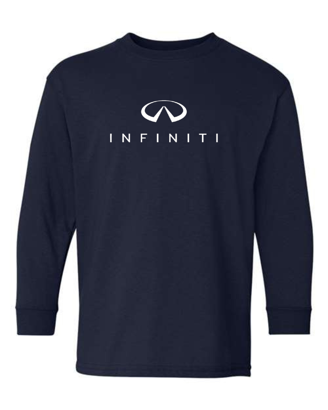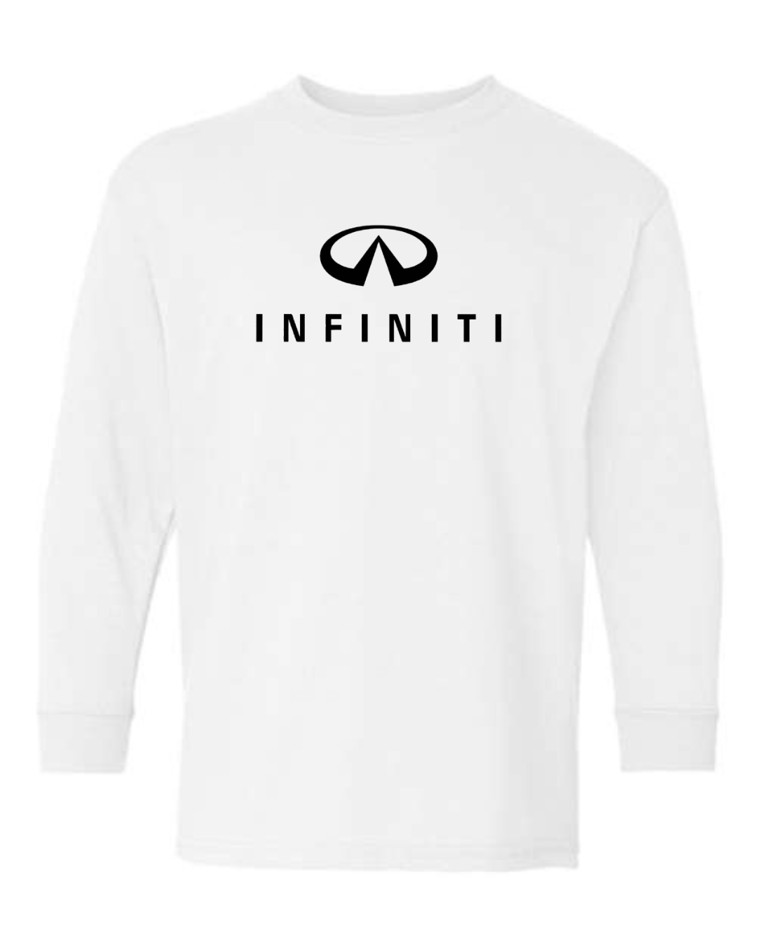 For the young trendsetter with refined taste, this INFINITI Logo White Youth Long Sleeve T-Shirt delivers clean luxury and effortless style. Featuring the sleek black INFINITI emblem and text across the chest, this tee makes a bold statement on a crisp white background. Perfect for school days, casual outings, or layering in cooler weather, it’s a must-have for future car lovers and fans of minimalist design.