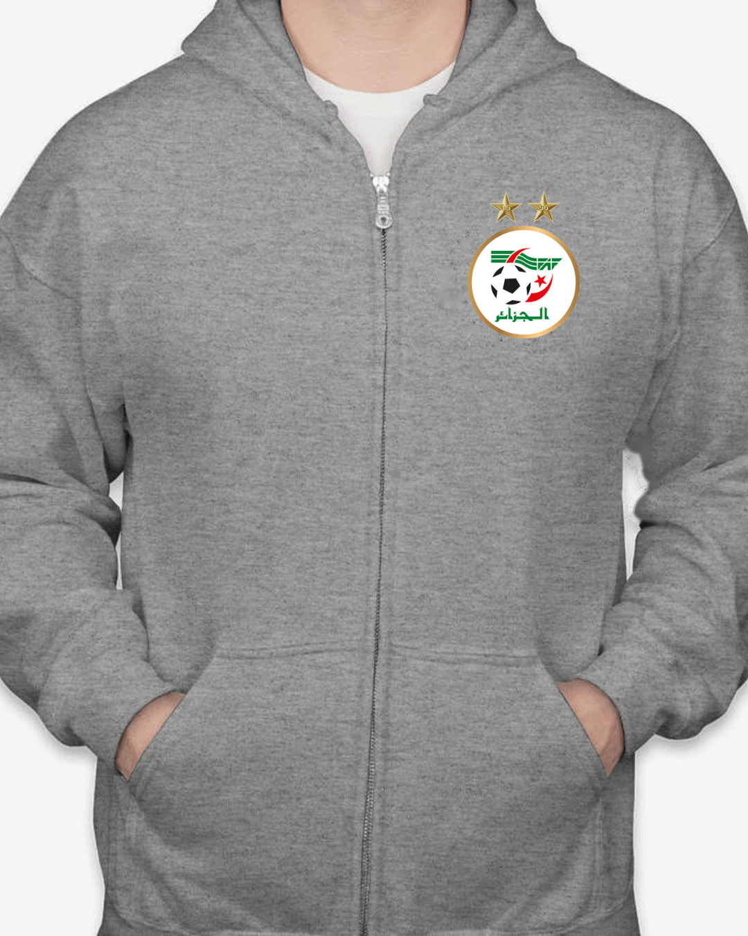 Celebrate your passion for international football with this Algeria Football Team National Team Zip-Up Hoodie. Featuring the official crest with two championship stars on the chest, this hoodie is perfect for proud fans who want to show love for their country both on and off the pitch. Designed for comfort and style, it’s a great choice for match days, training sessions, or everyday wear. Available in sizes S to 2XL.