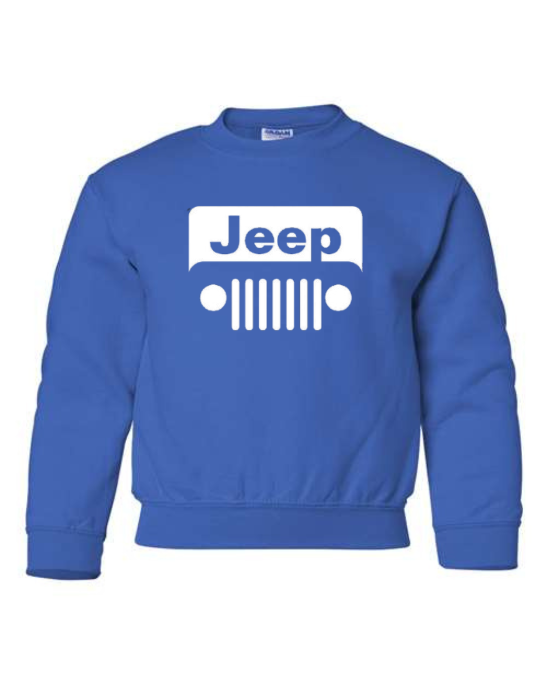 Adventure meets style with the Jeep Logo Youth Sweatshirt. Featuring the iconic Jeep grille design across the chest, this pullover is perfect for young explorers and fans of rugged, outdoor-inspired fashion. Cozy yet durable, it’s ideal for school, weekend outings, or lounging in comfort. Available in youth sizes XS to XL.