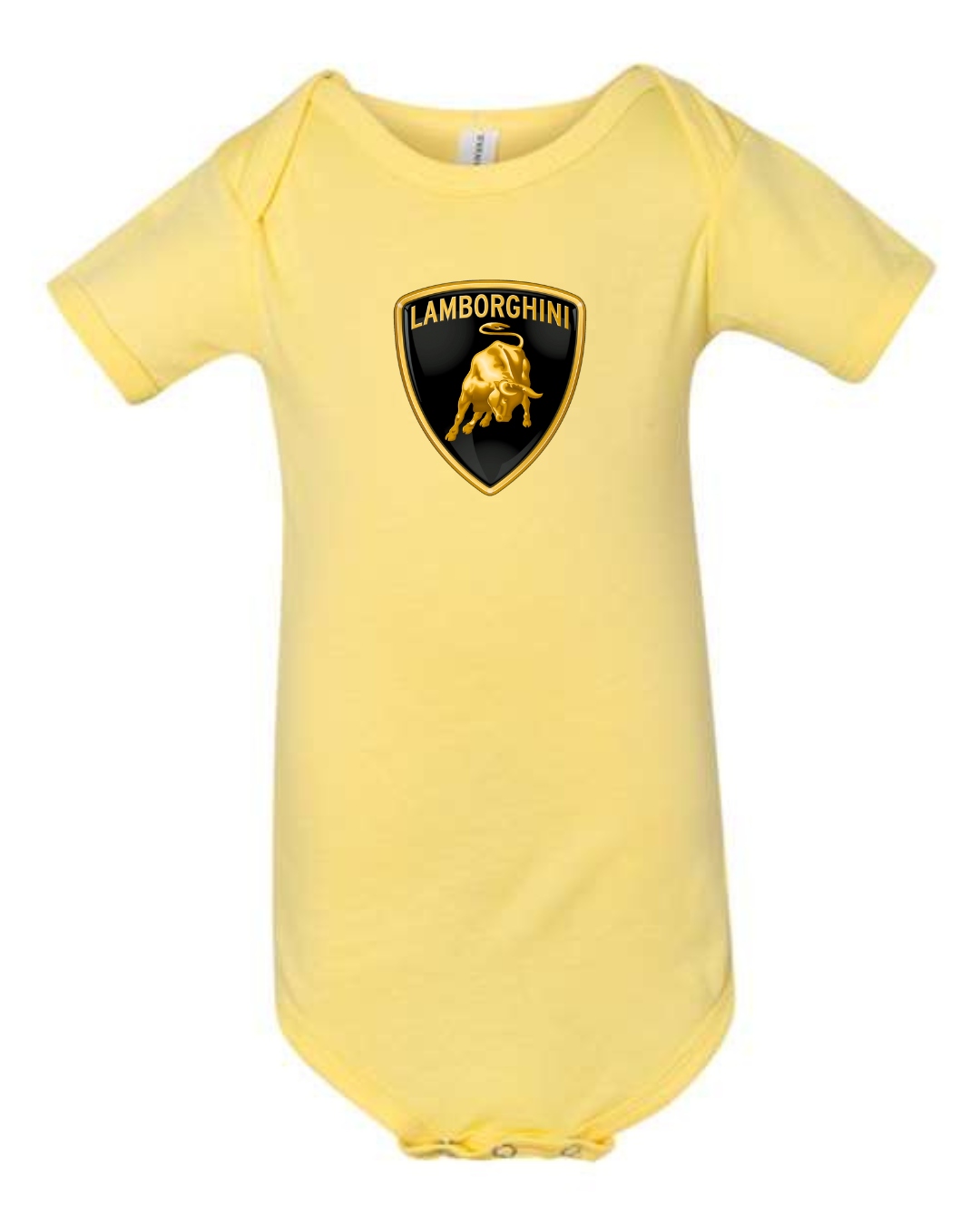 Unleash the luxury early with our Lamborghini Logo Infant Bodysuit. Featuring the iconic raging bull crest, this bold one-piece is perfect for little speedsters in the making. Crafted from soft, breathable fabric and designed with snap closures for quick diaper changes, it delivers comfort with high-performance style. Ideal for supercar fans, automotive families, and future drivers with elite taste. Available in sizes 3M to 24M.