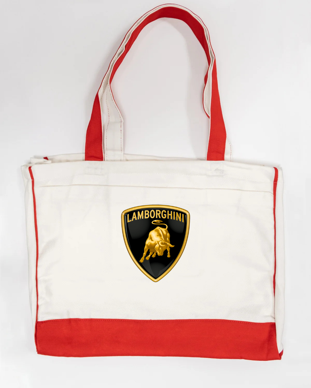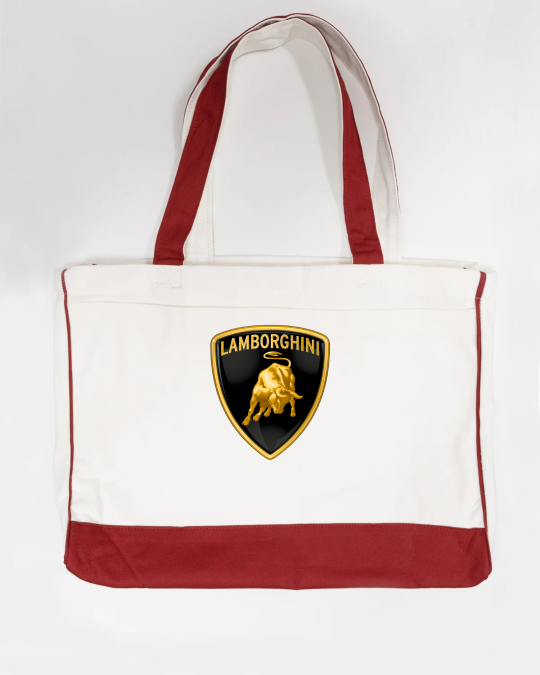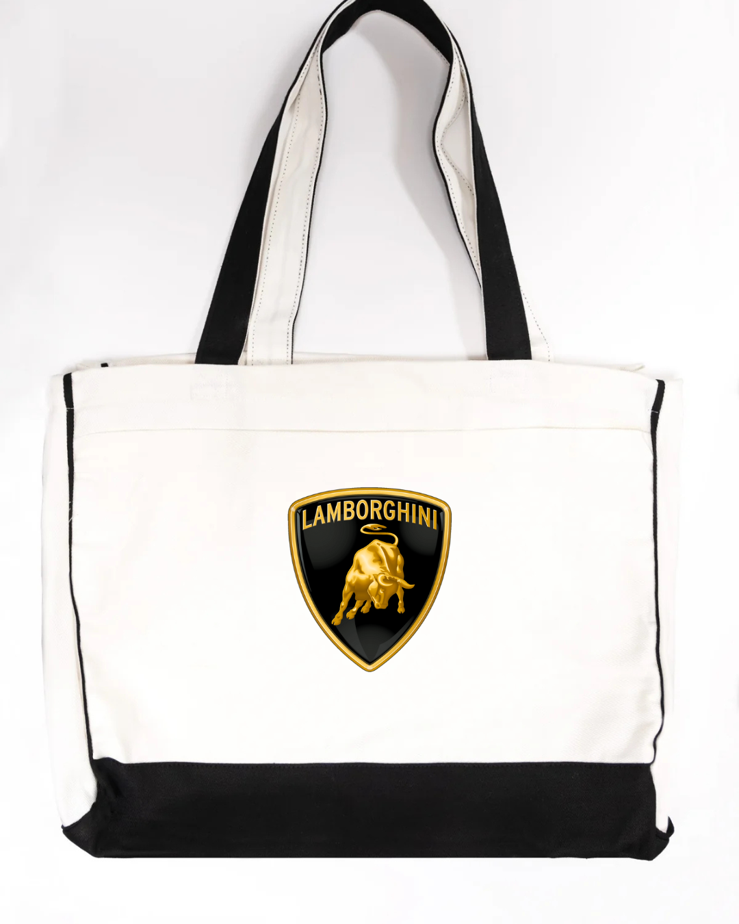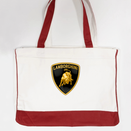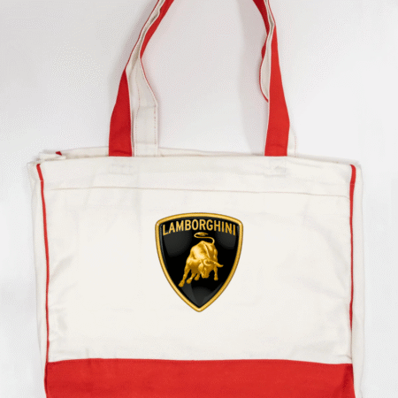 Bring supercar luxury to your everyday carry with our Lamborghini Logo Trimmed Tote Bag. Featuring the iconic Lamborghini bull logo, this tote blends high-end automotive style with practical functionality. Crafted from durable canvas fabric and accented with sleek black trimming, it offers a spacious interior perfect for errands, work, travel, or daily essentials. Lightweight, sturdy, and stylish—ideal for anyone who loves bold, premium branding.