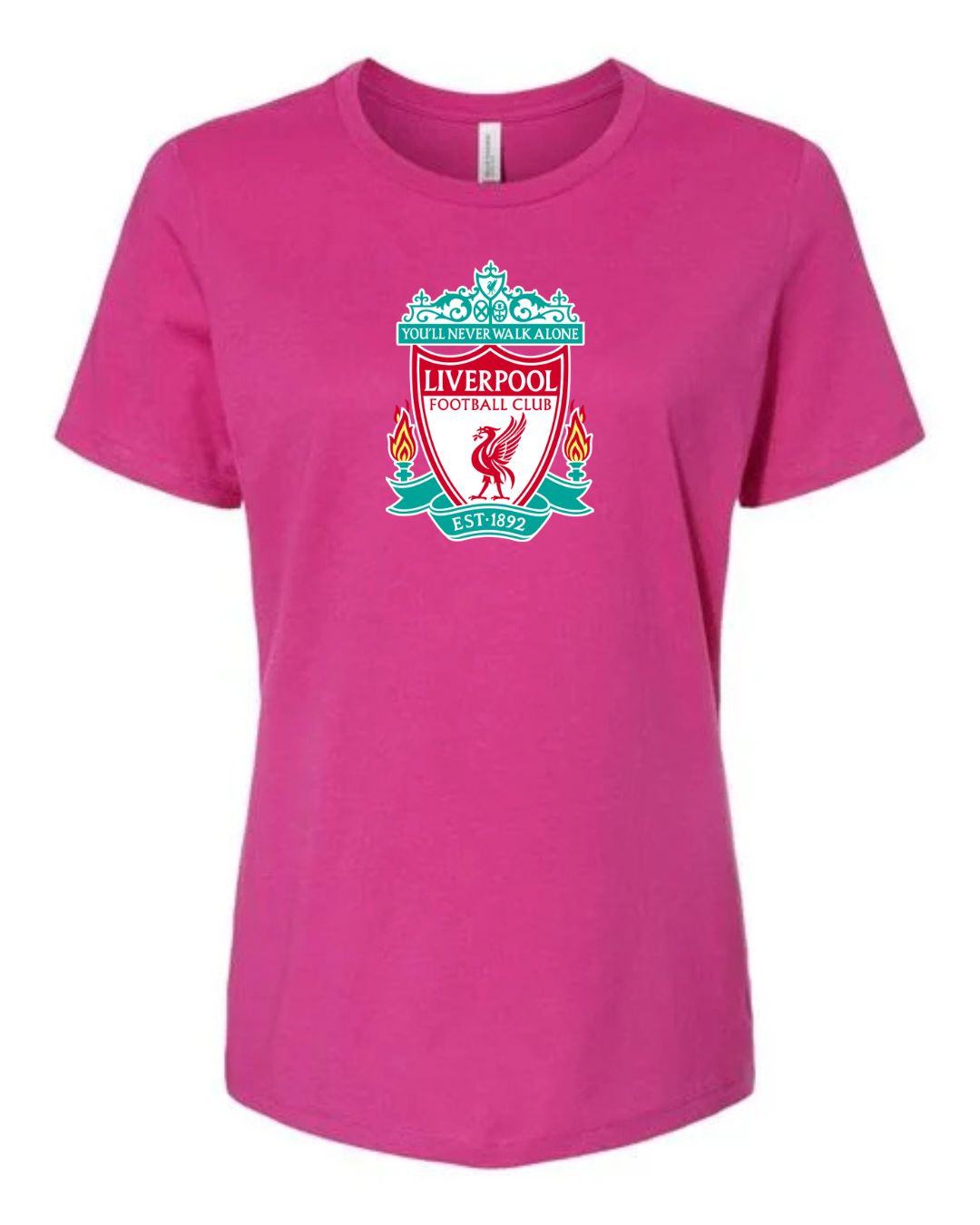 Show your unwavering support for Liverpool FC with this stylish women’s tee featuring the club’s iconic crest. Printed on a super-soft Bella+Canvas shirt, this fan-favorite top is perfect for match days, casual wear, or repping your favorite football team with pride.