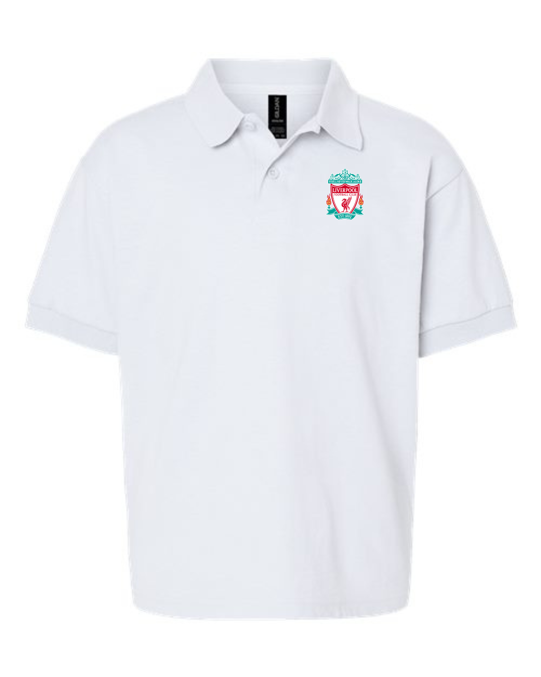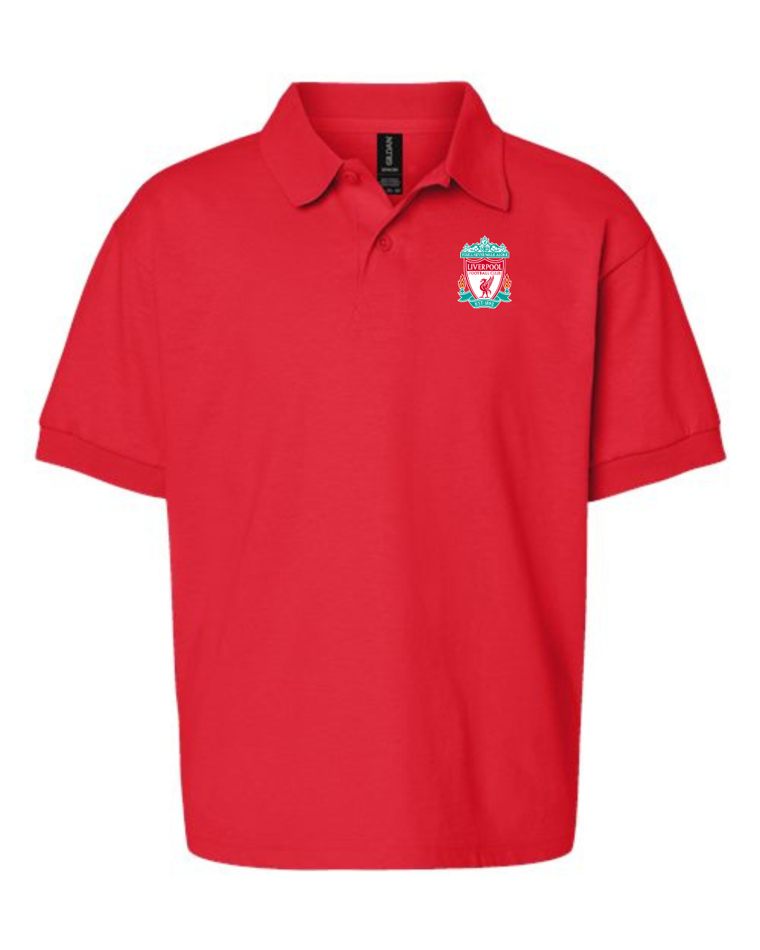 Show your passion for the Reds with our Liverpool FC Logo Youth Polo Shirt. Featuring the iconic Liverpool crest with the Liver bird, this polo is perfect for young supporters who want to represent their favorite Premier League club in style. Comfortable, durable, and great for school, match days, or casual wear. Available in sizes XS to XL.