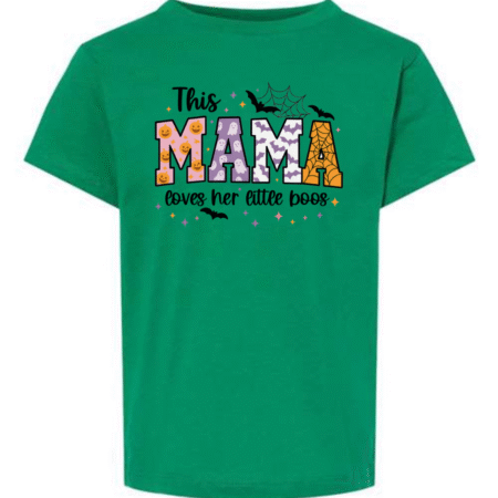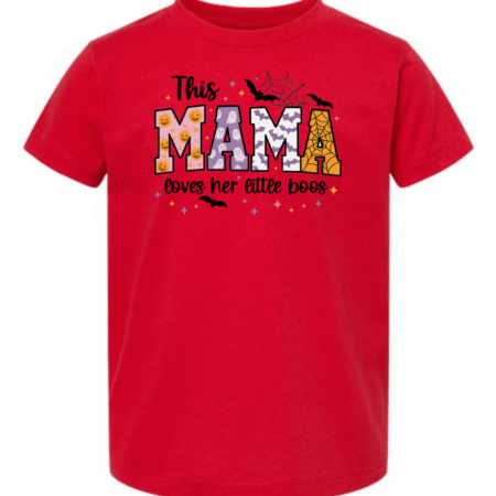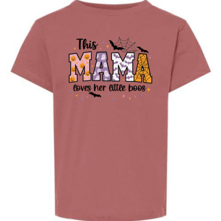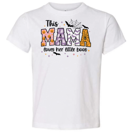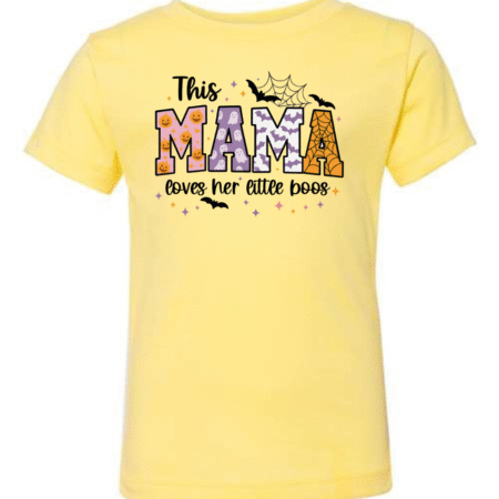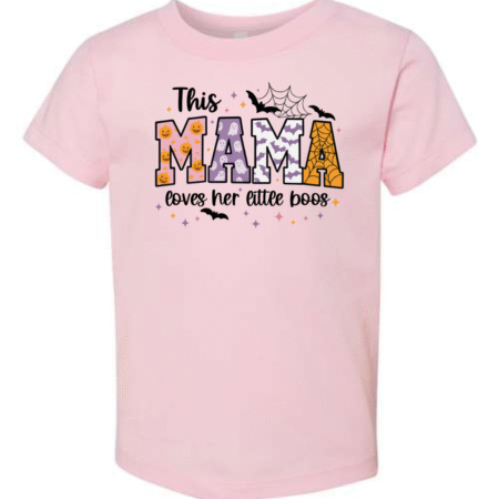 Cute, spooky, and full of love! Our “This Mama Loves Her Little Boos” Toddler T-Shirt features playful Halloween details—bats, web, and ghosty vibes—wrapped around bold, bubbly lettering. Soft and comfy for pumpkin patch trips, trick-or-treat practice, or everyday fall fun. Available in sizes 2T to 5T.