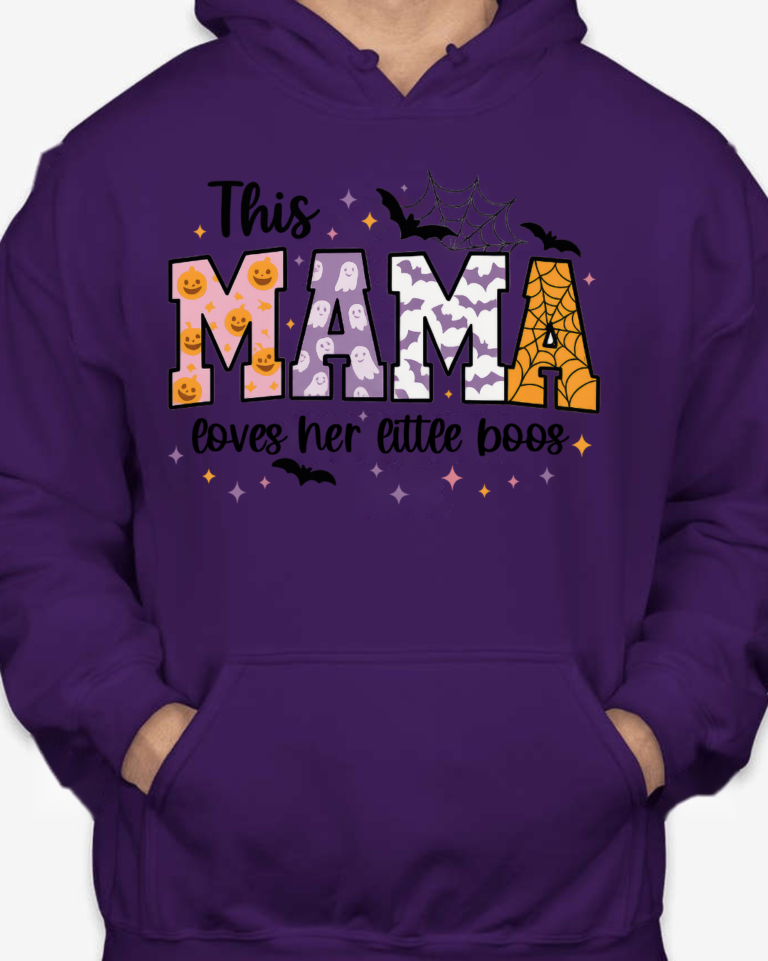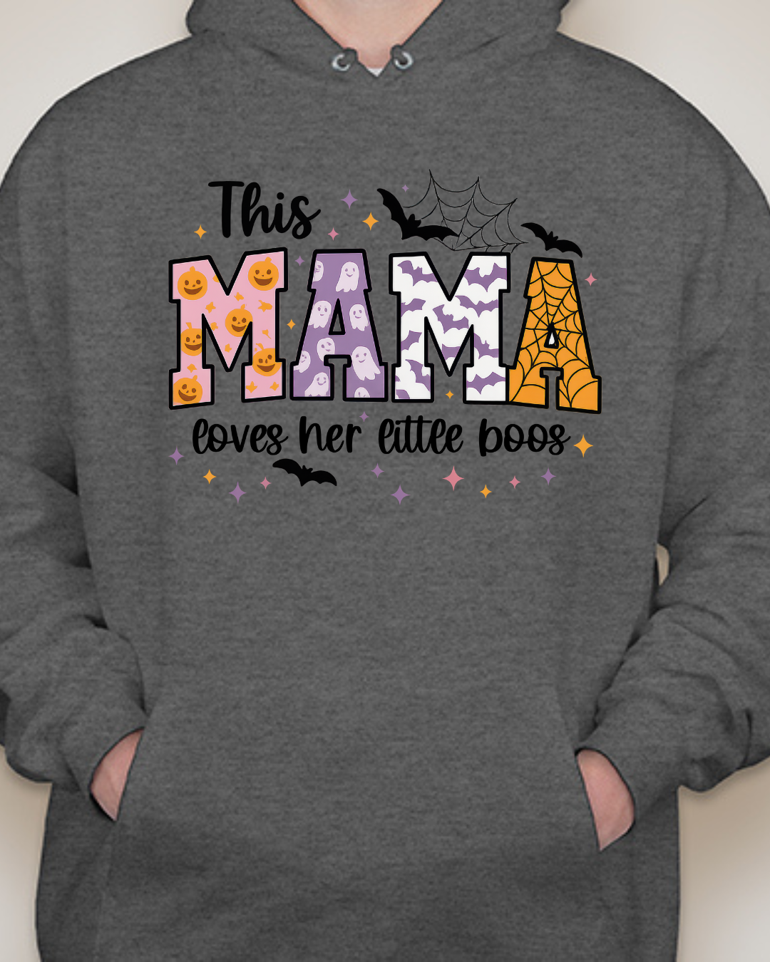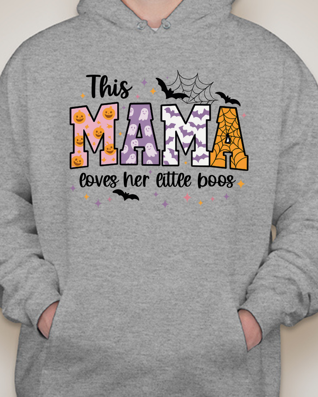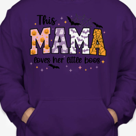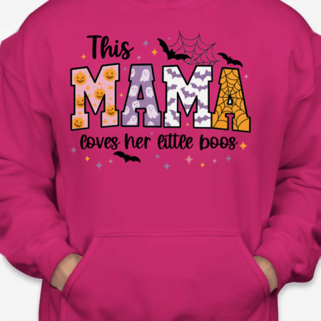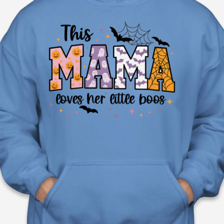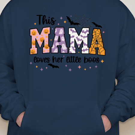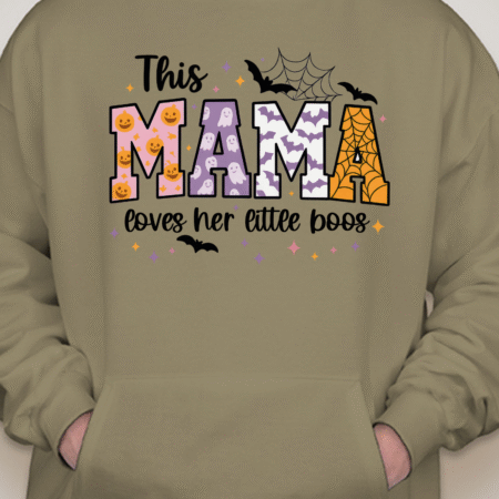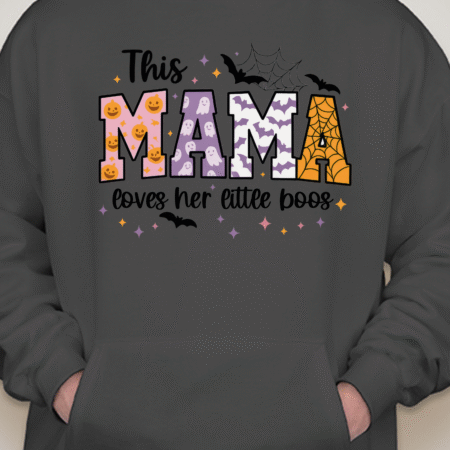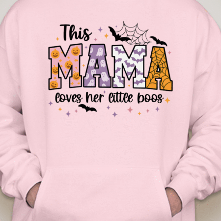 Sweet, spooky, and cozy—our This Mama Loves Her Little Boos Unisex Pullover Hoodie is the perfect Halloween-season staple. Featuring playful MAMA block letters with pumpkins, webs, bats, and stars, it’s a cute way to show love for your little boos at the pumpkin patch, school parades, or laid-back nights in. Made from Gildan’s premium cotton for a soft, durable feel. Available in sizes S to 2XL.