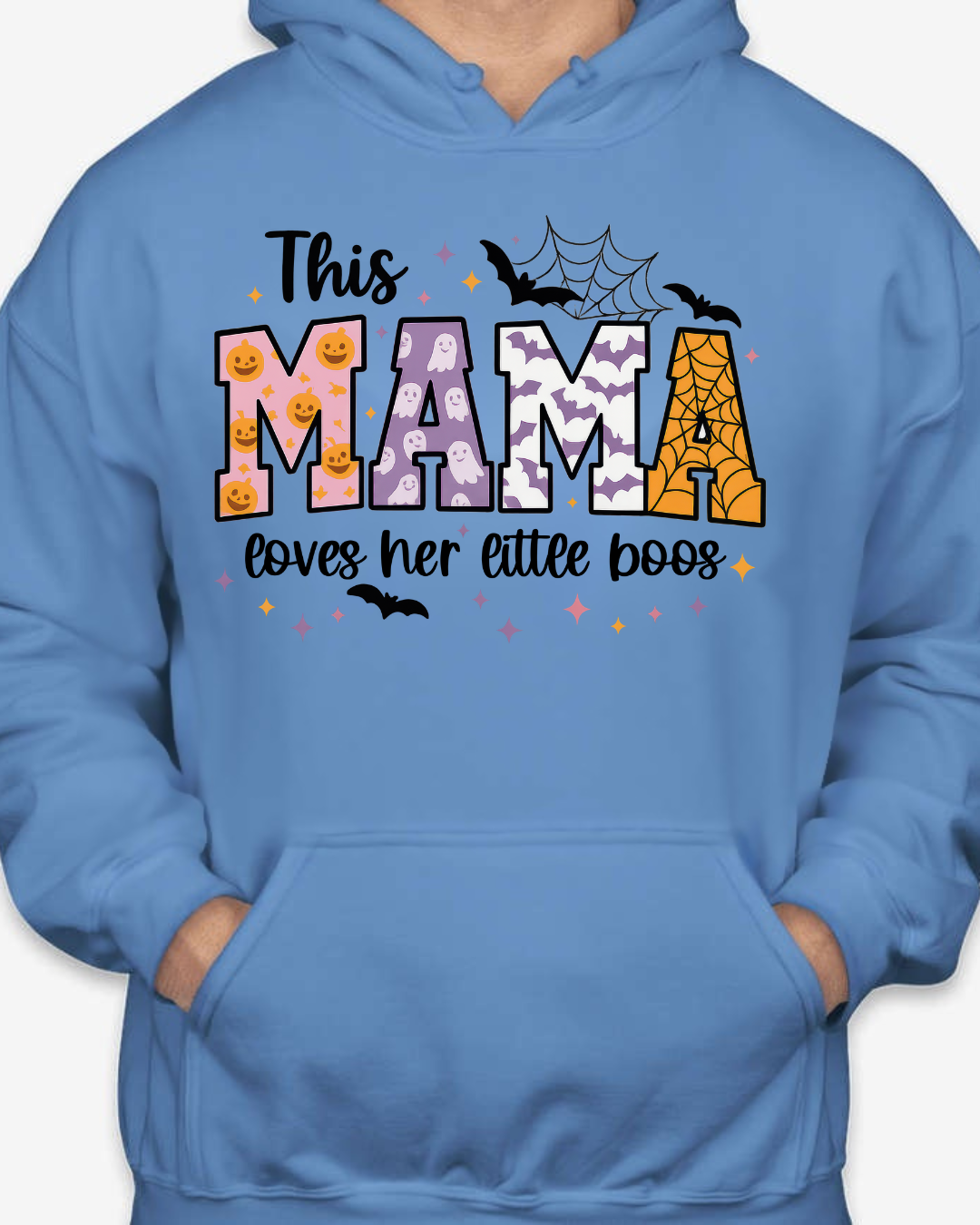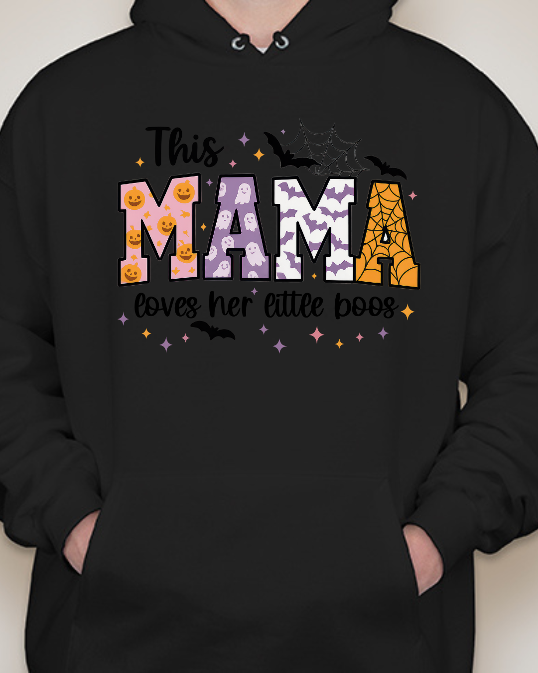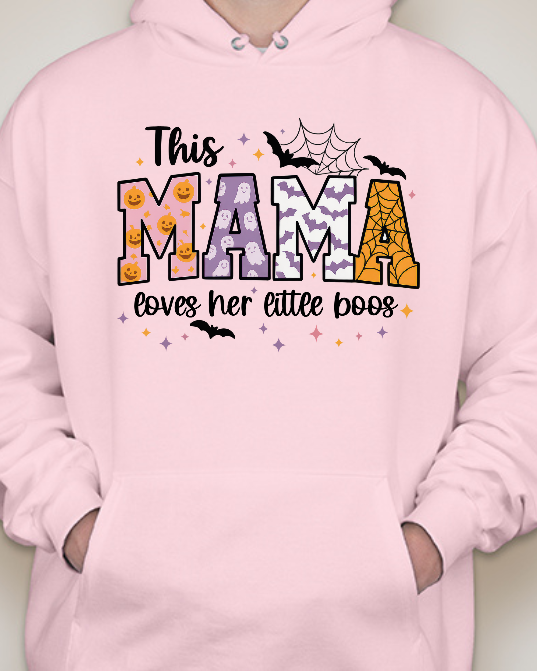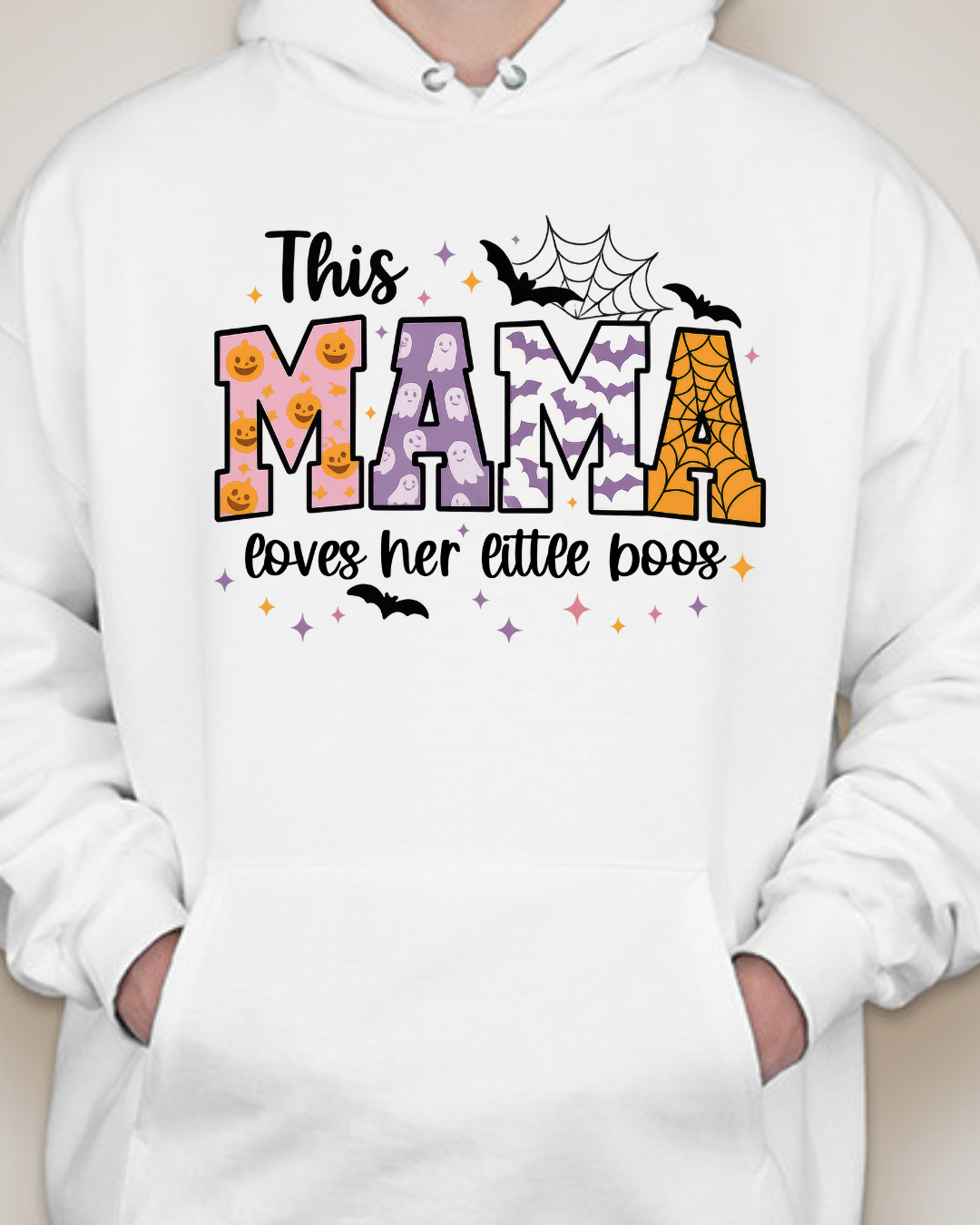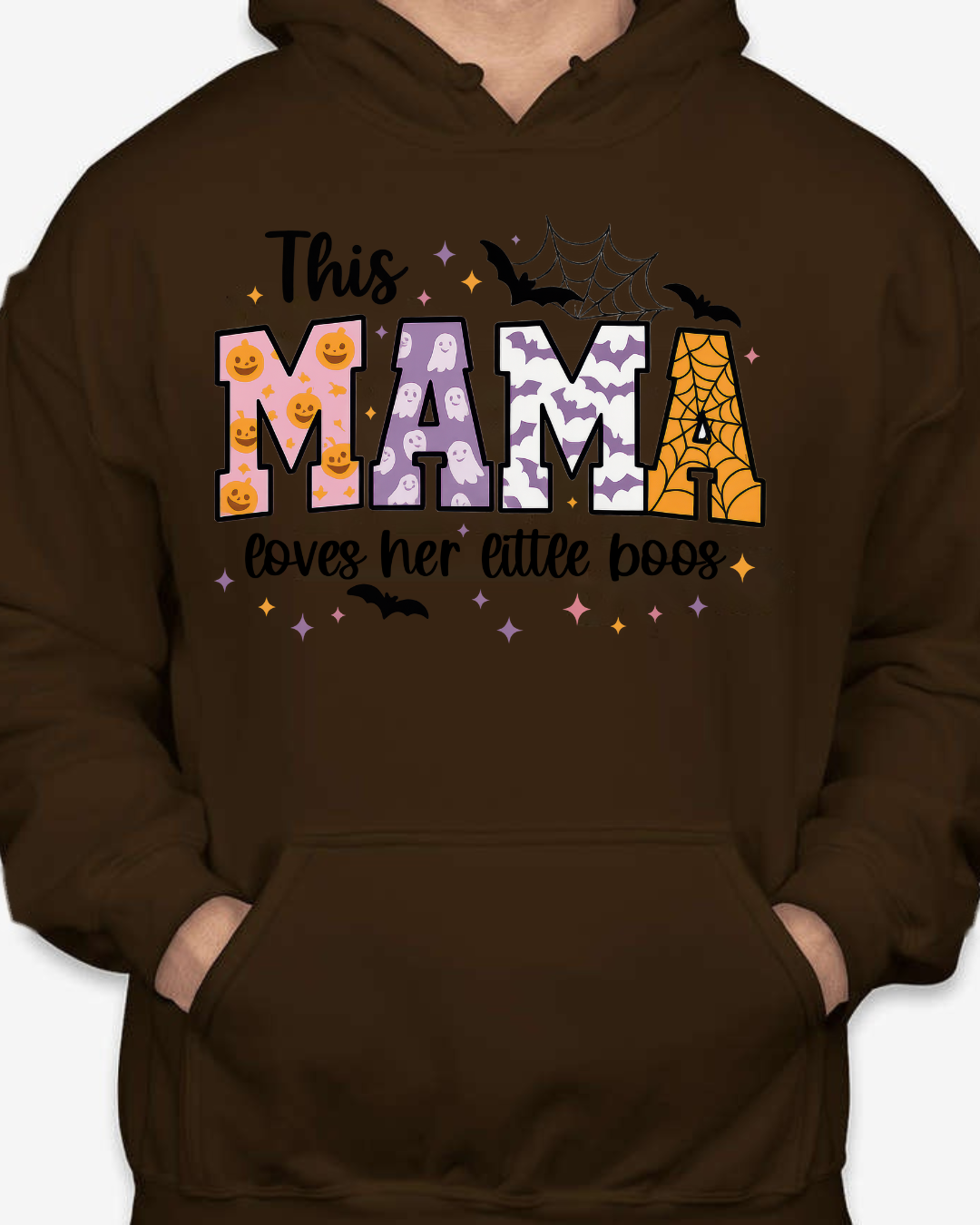 Sweet, spooky, and cozy—our This Mama Loves Her Little Boos Unisex Pullover Hoodie is the perfect Halloween-season staple. Featuring playful MAMA block letters with pumpkins, webs, bats, and stars, it’s a cute way to show love for your little boos at the pumpkin patch, school parades, or laid-back nights in. Made from Gildan’s premium cotton for a soft, durable feel. Available in sizes S to 2XL.