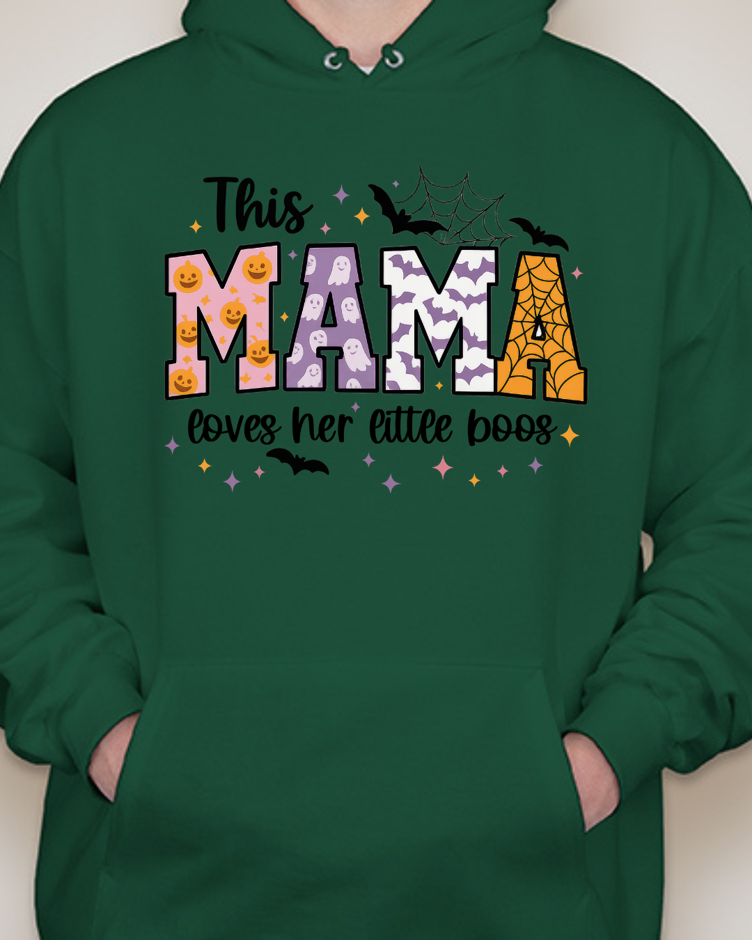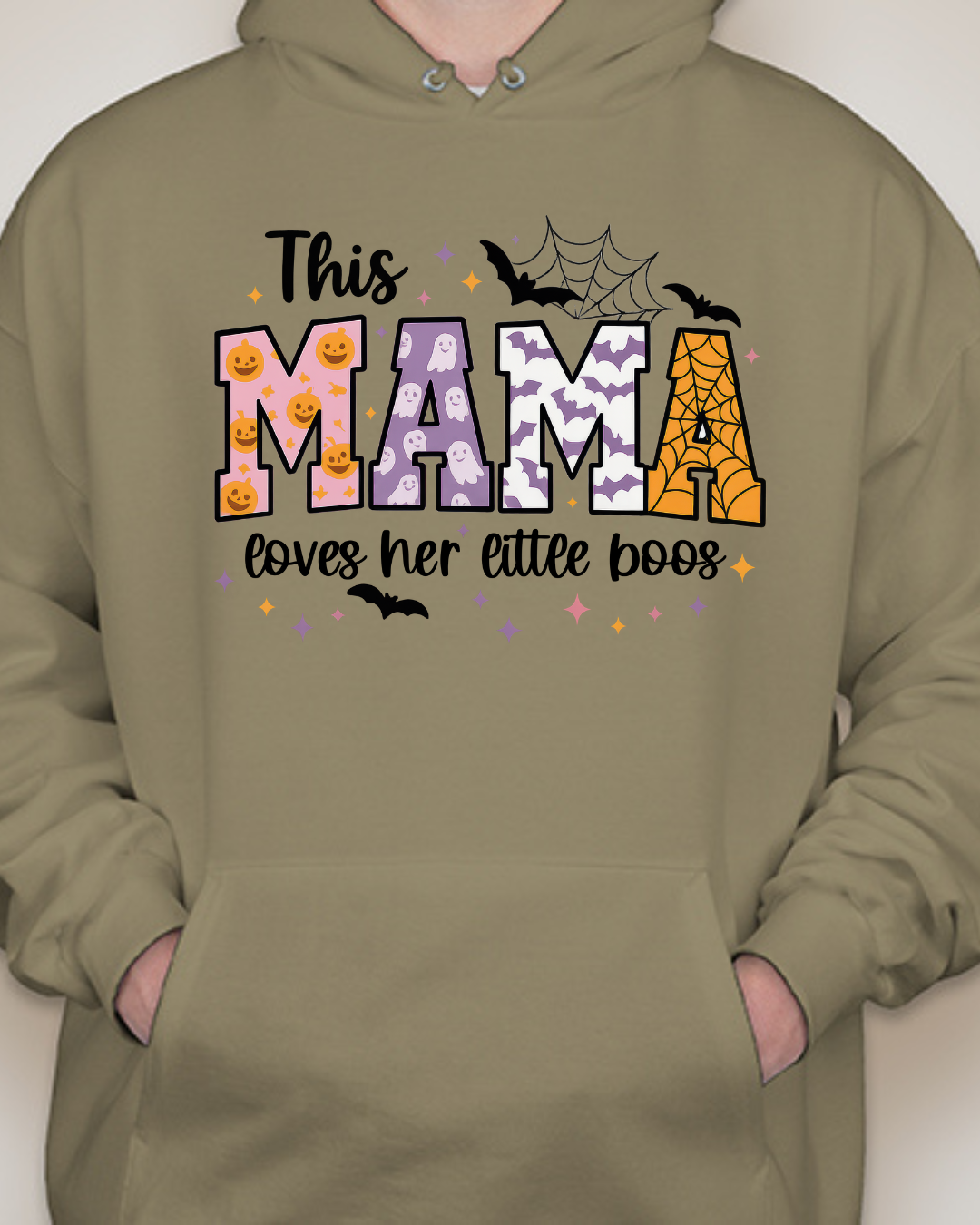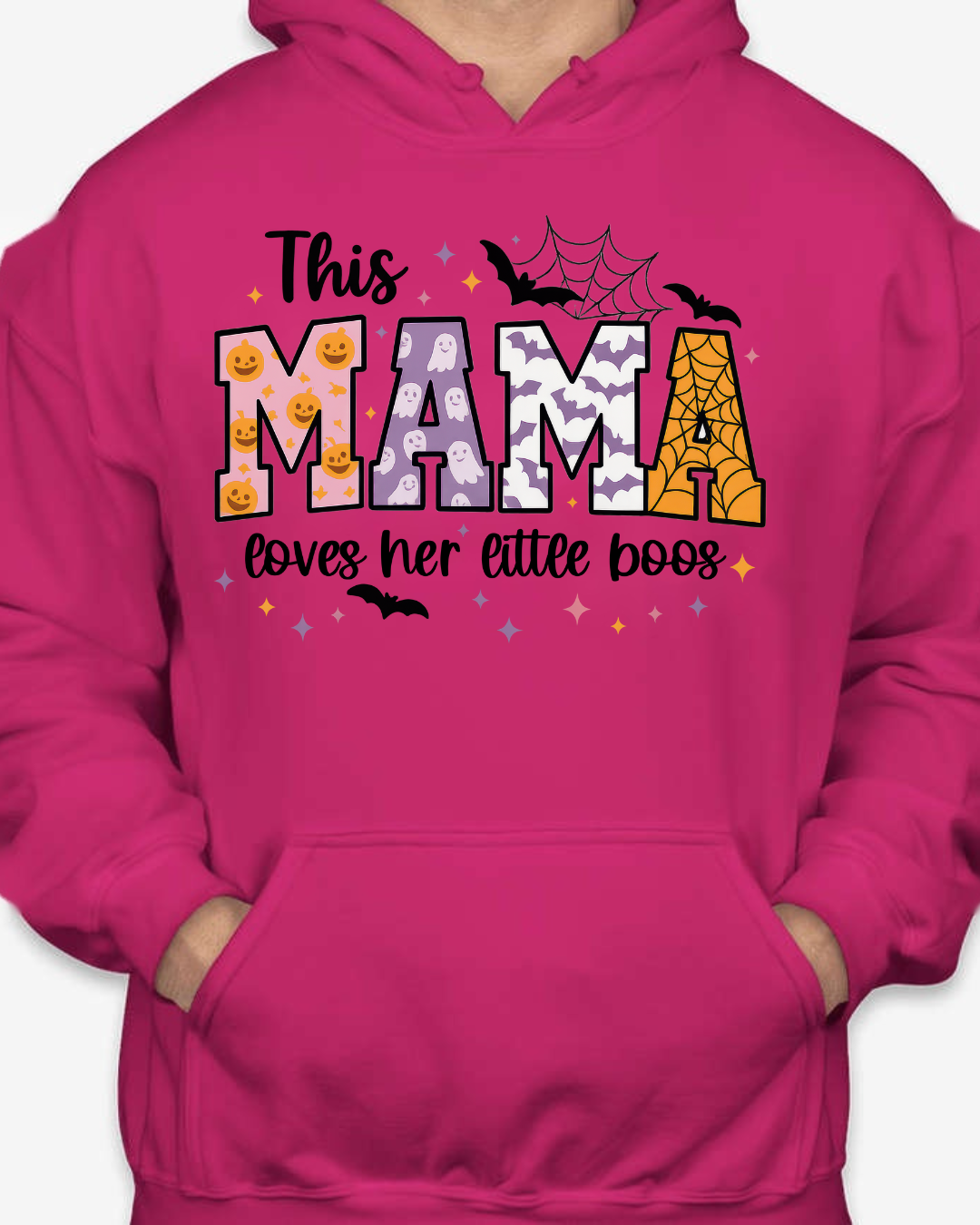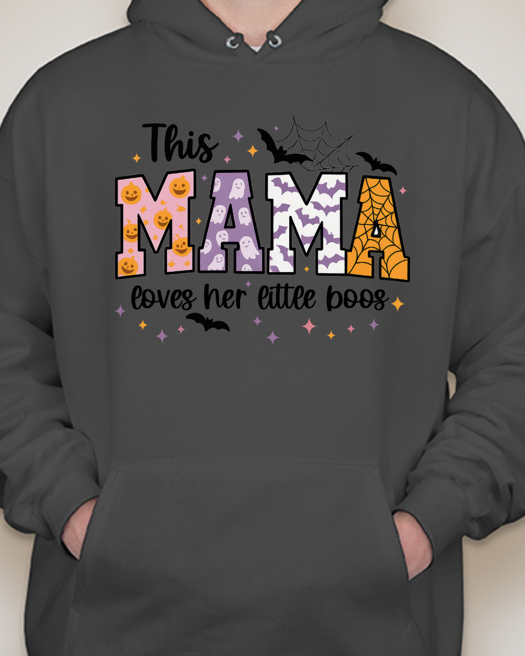 Sweet, spooky, and cozy—our This Mama Loves Her Little Boos Unisex Pullover Hoodie is the perfect Halloween-season staple. Featuring playful MAMA block letters with pumpkins, webs, bats, and stars, it’s a cute way to show love for your little boos at the pumpkin patch, school parades, or laid-back nights in. Made from Gildan’s premium cotton for a soft, durable feel. Available in sizes S to 2XL.
