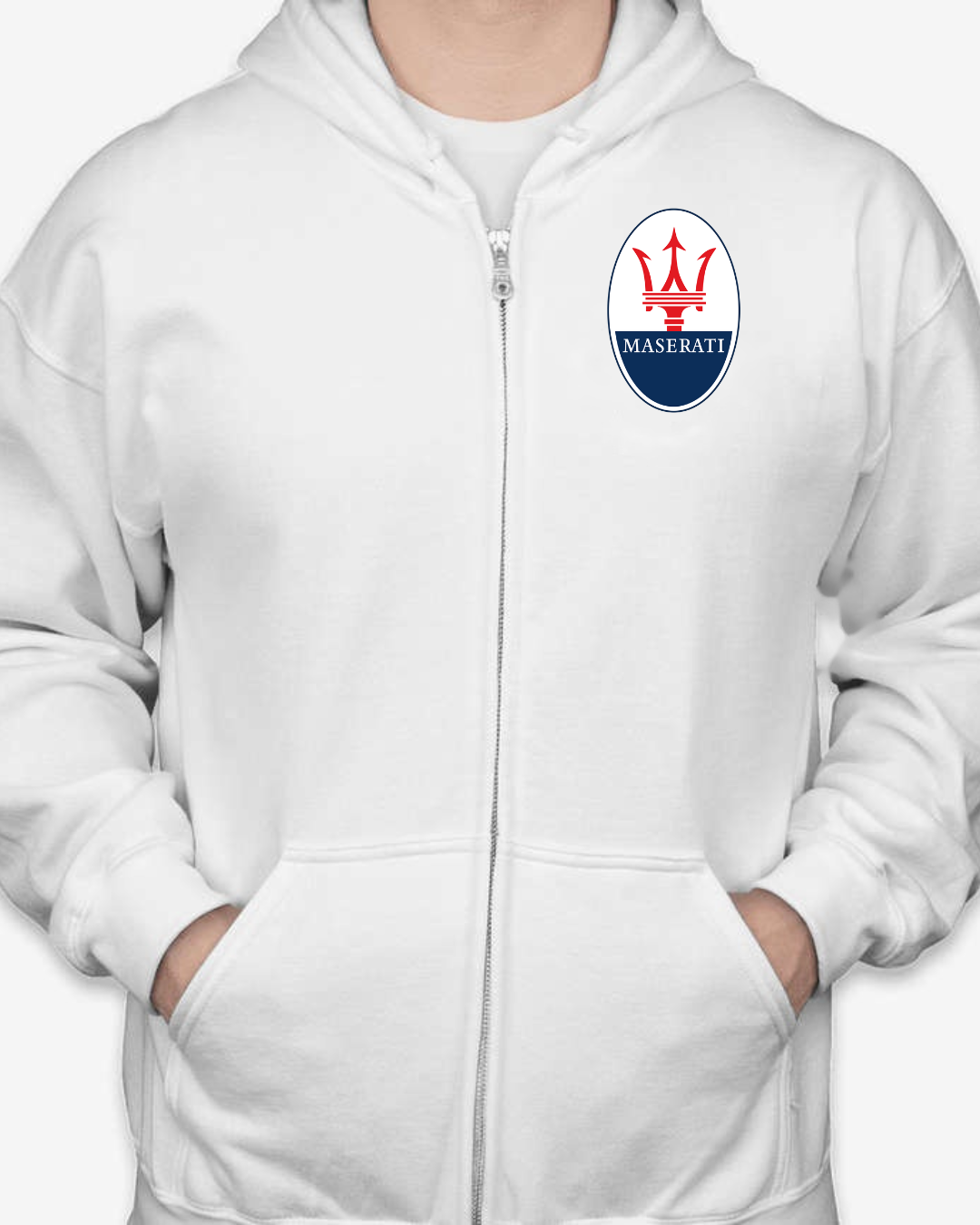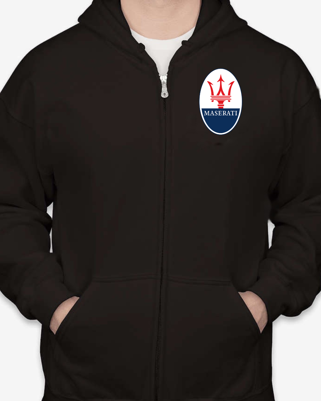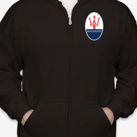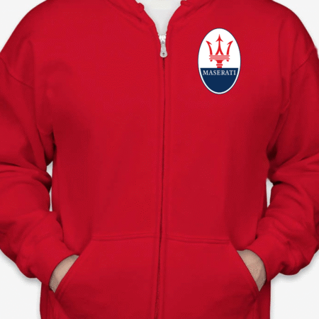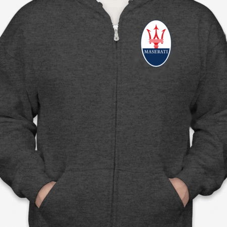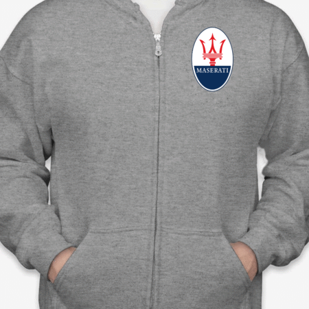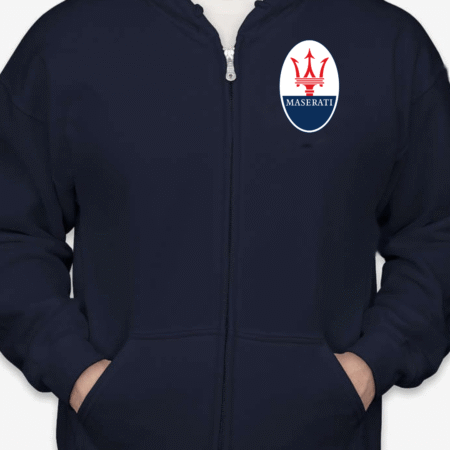 Show off your love for Italian luxury performance with this Maserati Logo Full-Zip Hoodie. Featuring the unmistakable Maserati trident emblem on the chest, this hoodie is perfect for car lovers who appreciate sophistication and speed. Designed for comfort, it’s a stylish layer for any casual outfit.