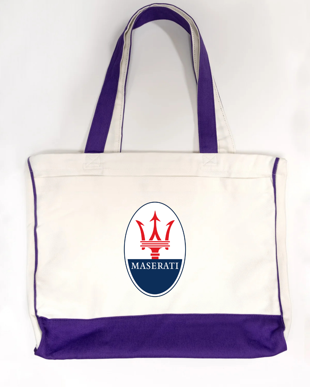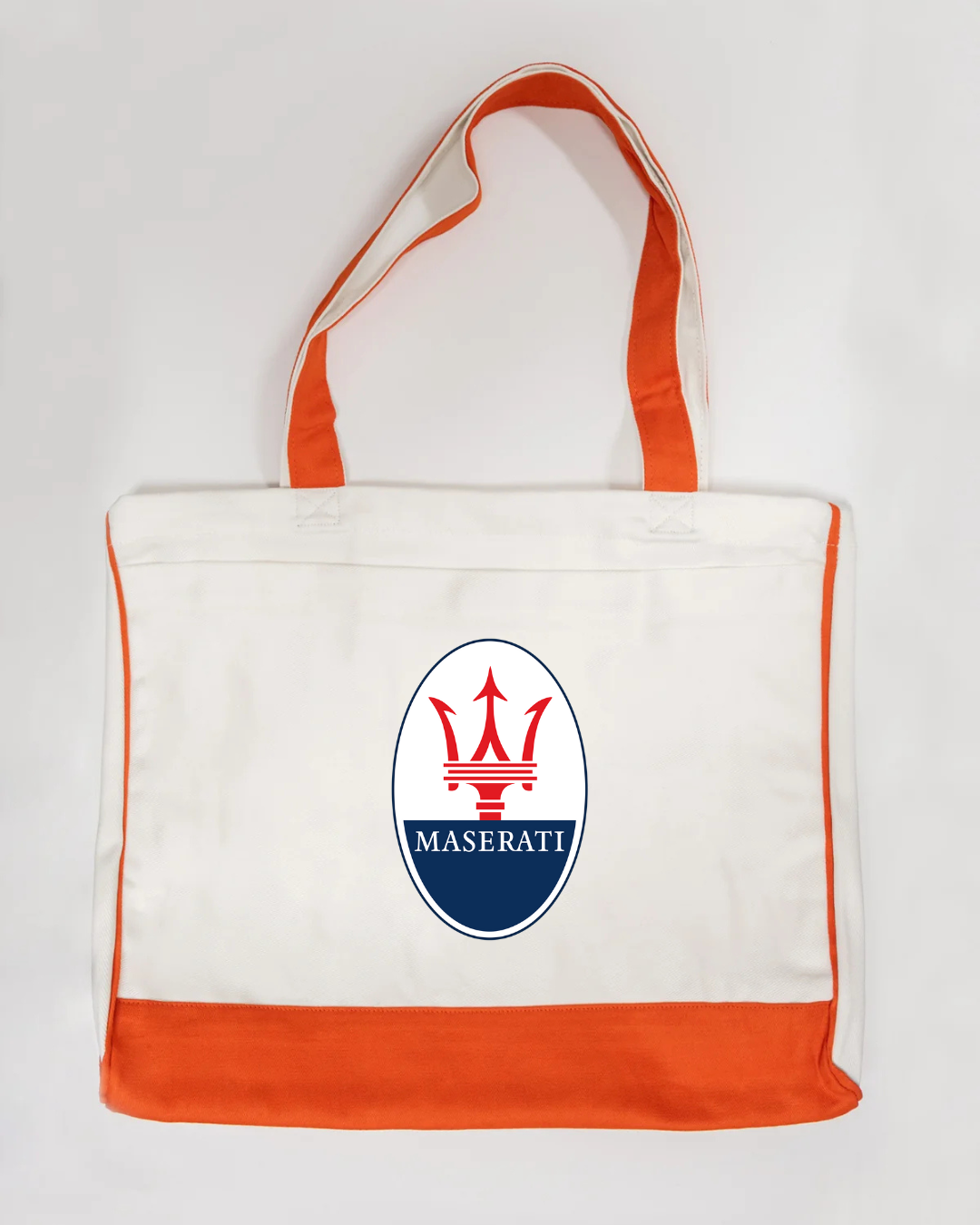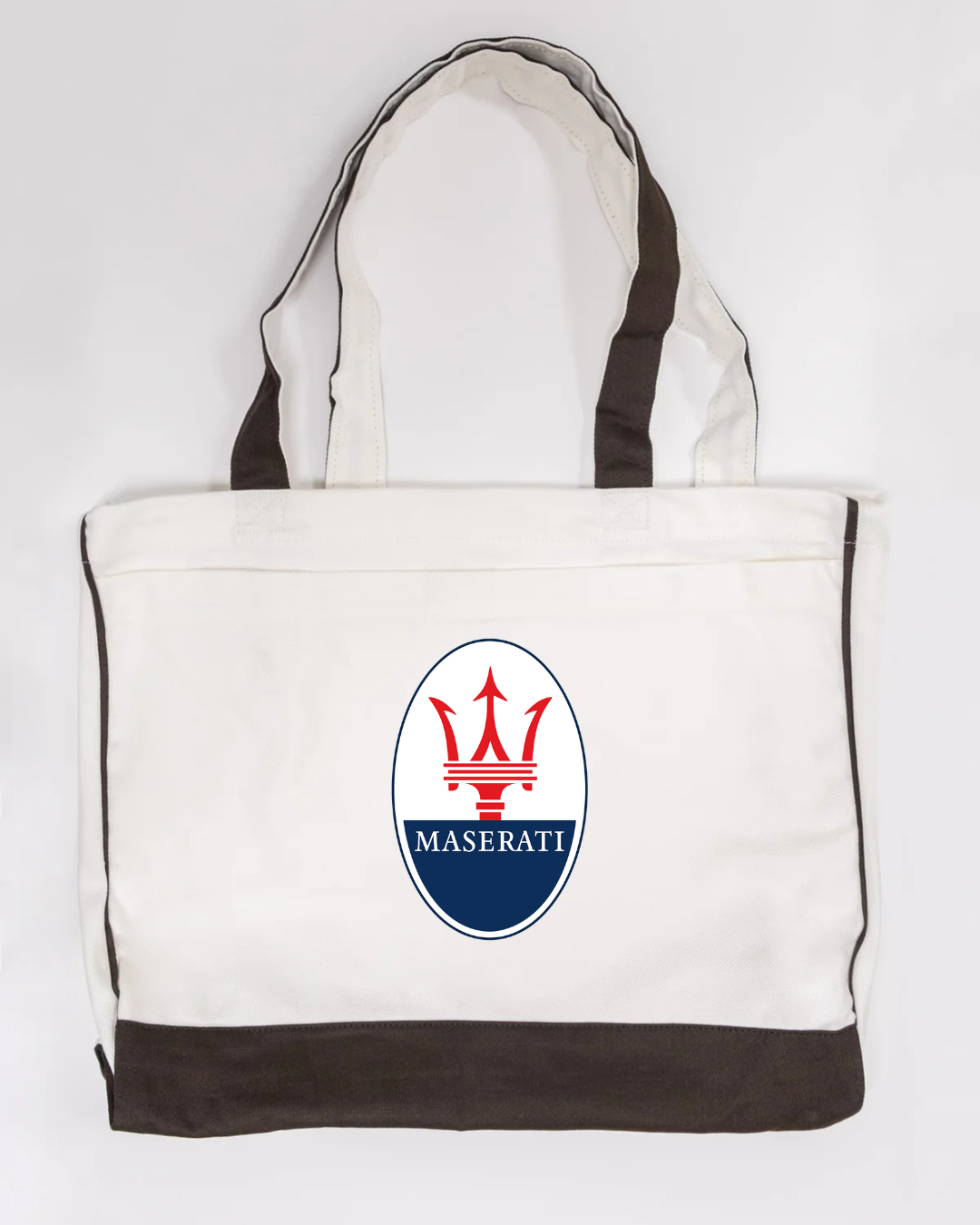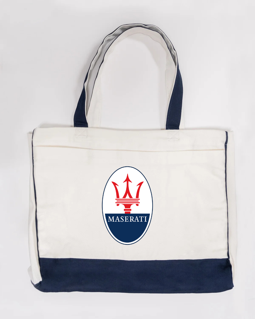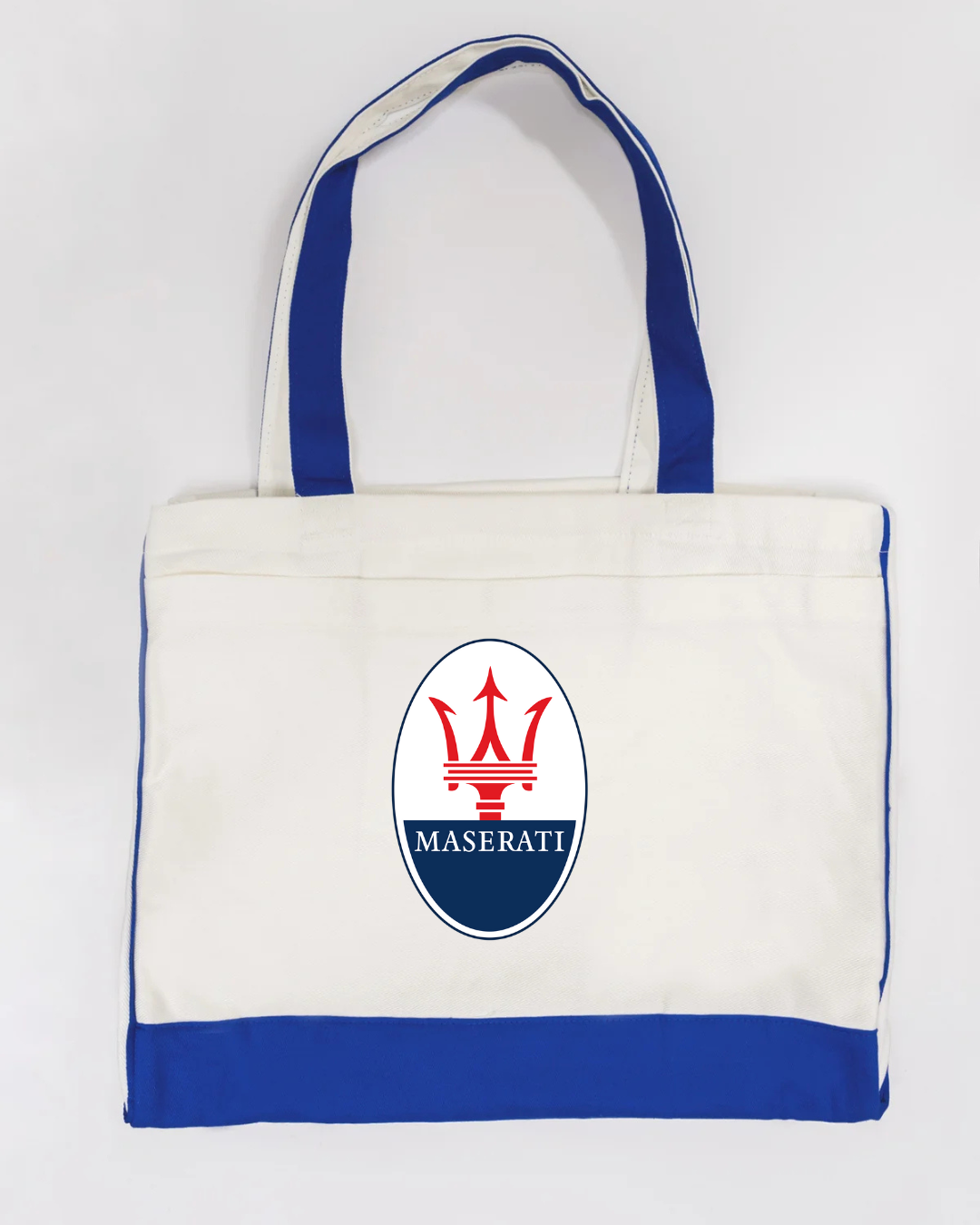 Bring elite Italian automotive style to your everyday carry with our Maserati Logo Trimmed Tote Bag. Featuring the iconic Maserati trident logo, this tote blends high-end sophistication with practical functionality. Crafted from durable canvas fabric and accented with deep navy trimming, it offers a spacious interior perfect for errands, work, travel, or daily essentials. Lightweight, sturdy, and elegant—ideal for anyone who appreciates premium luxury branding.
