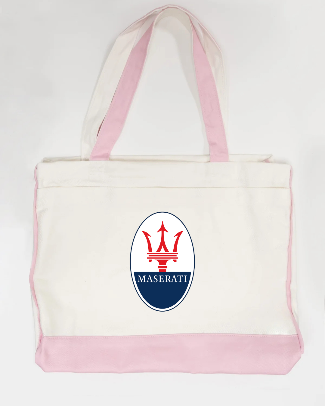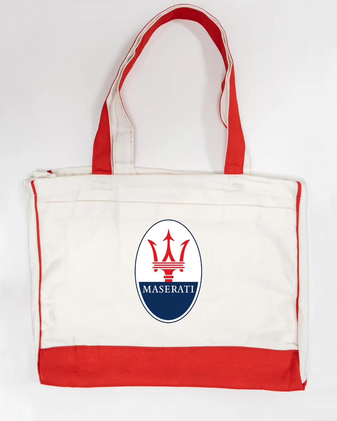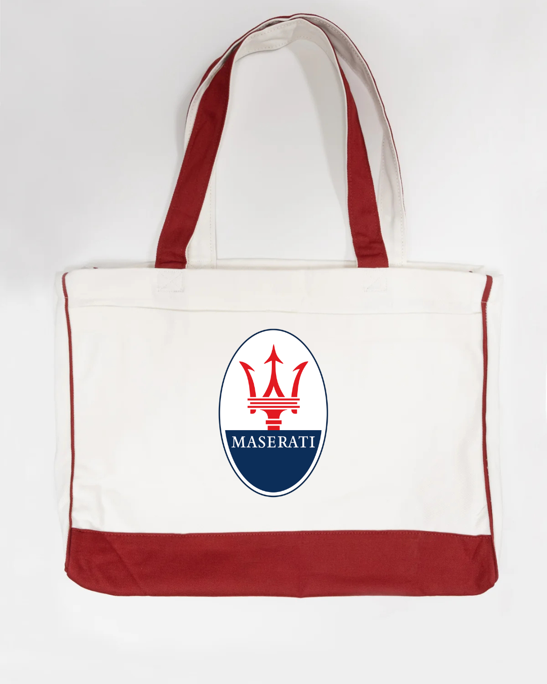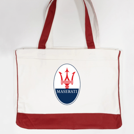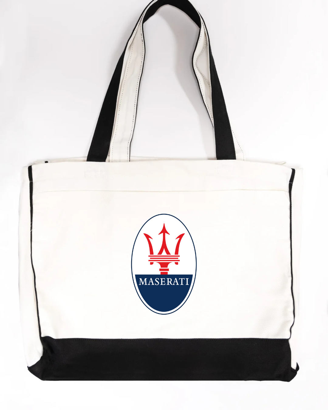 Bring elite Italian automotive style to your everyday carry with our Maserati Logo Trimmed Tote Bag. Featuring the iconic Maserati trident logo, this tote blends high-end sophistication with practical functionality. Crafted from durable canvas fabric and accented with deep navy trimming, it offers a spacious interior perfect for errands, work, travel, or daily essentials. Lightweight, sturdy, and elegant—ideal for anyone who appreciates premium luxury branding.