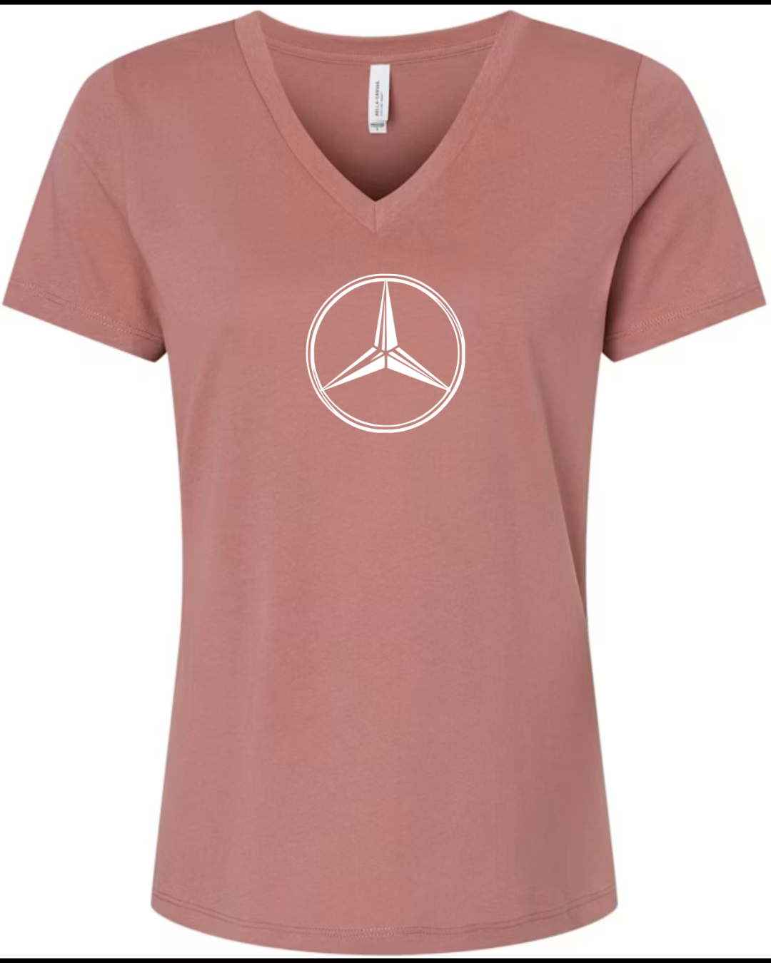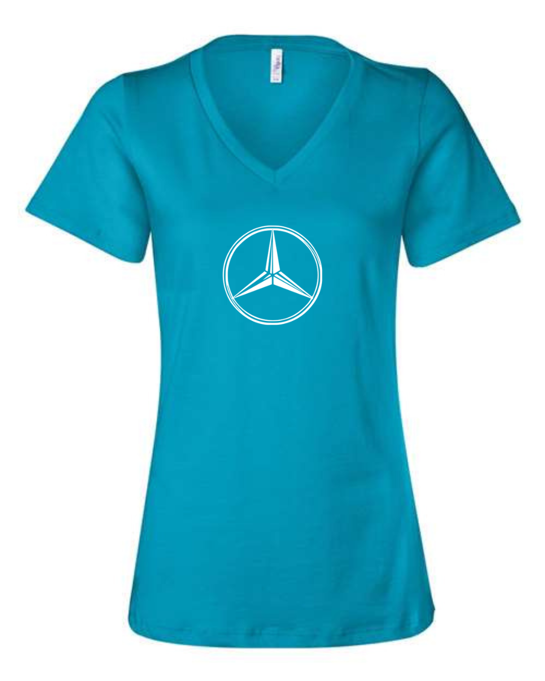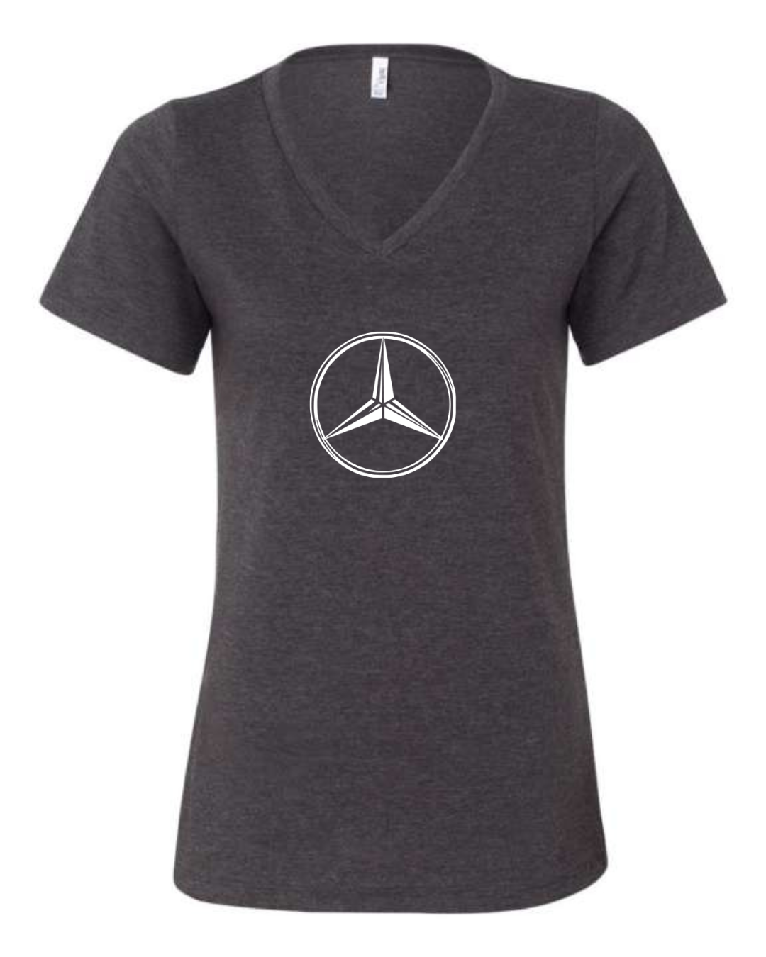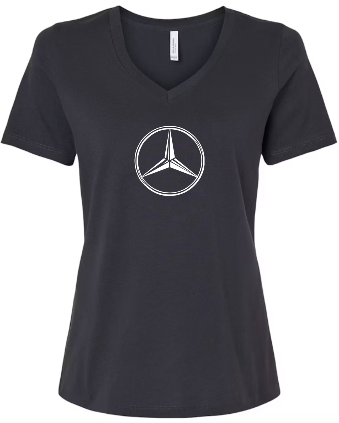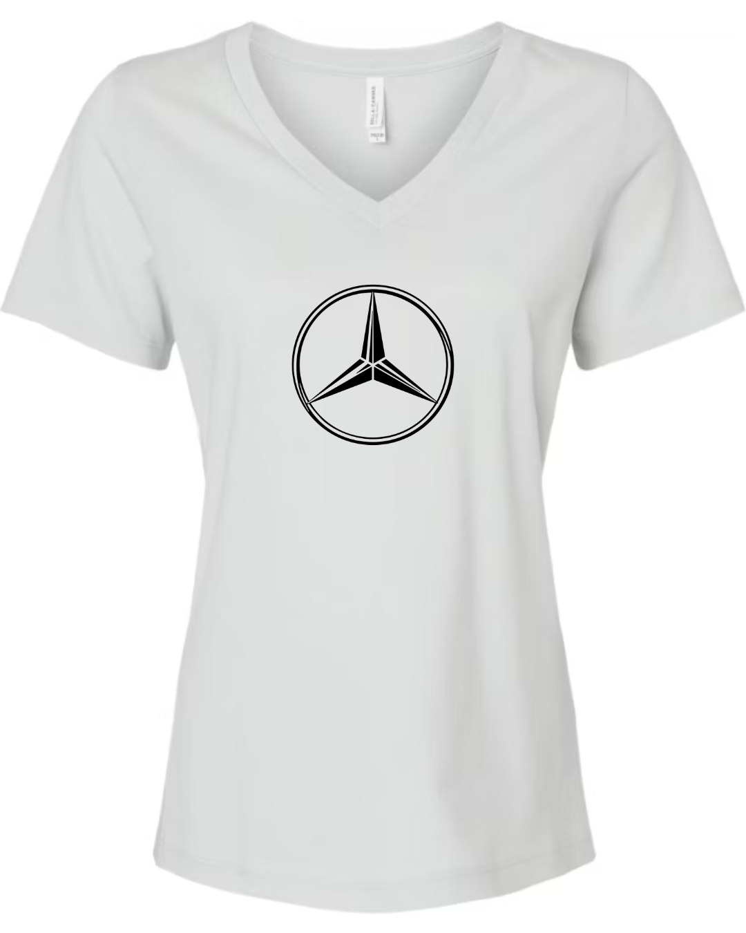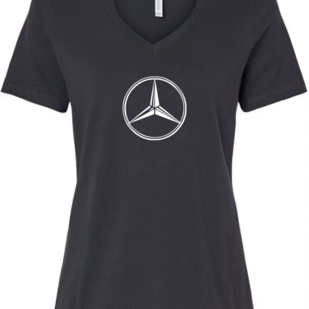 Inspired by the timeless elegance and engineering excellence of Mercedes-Benz, this Bella Canvas Women’s V-Neck Tee features the iconic three-pointed star logo in sleek black. Set against a clean white canvas, the minimalist design radiates luxury and sophistication. Crafted from Bella Canvas’s ultra-soft cotton blend, this tee offers a comfortable fit and flattering silhouette perfect for automotive aficionados and style lovers alike. Available in sizes S to 2XL.