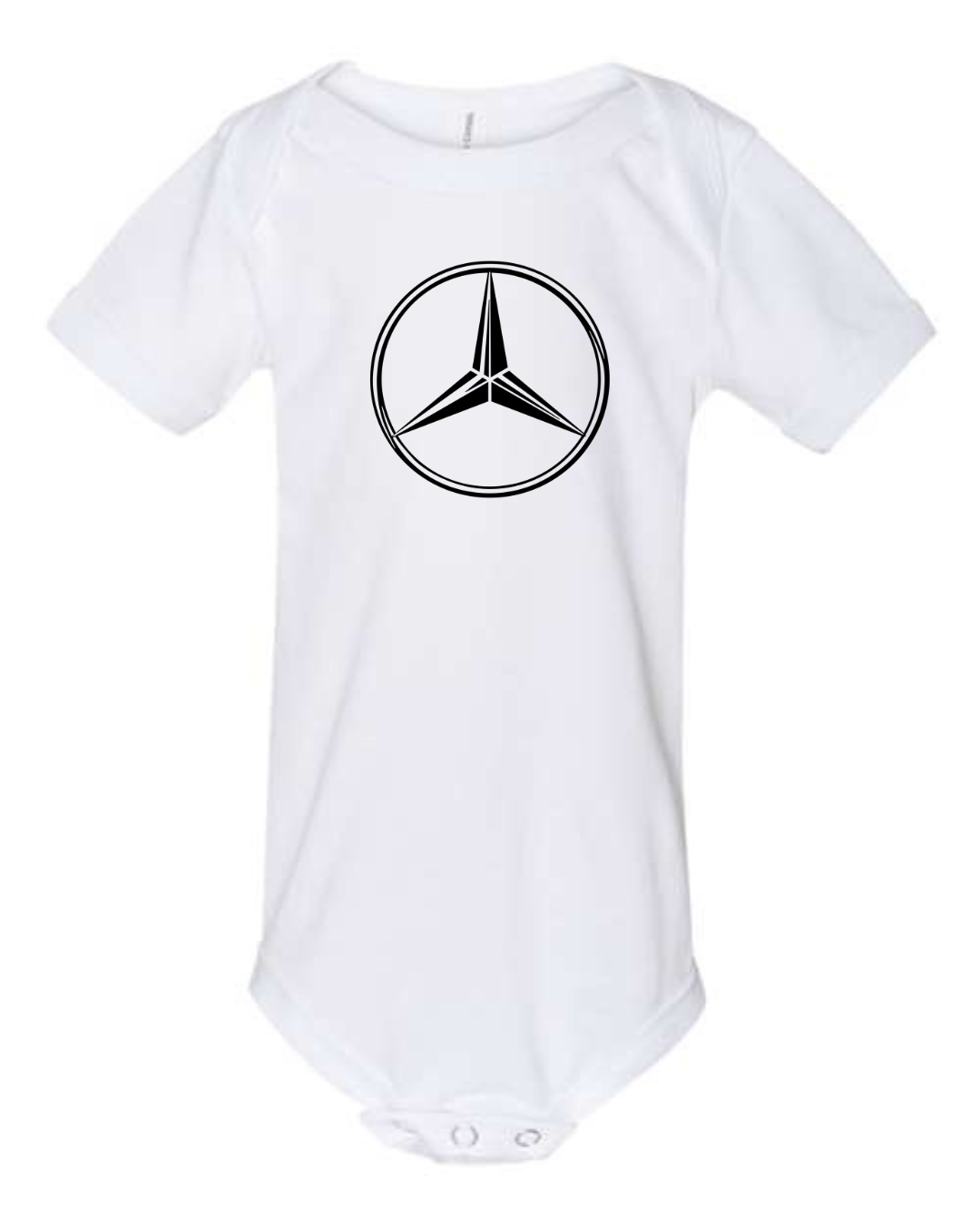 Start them off in luxury with our Mercedes-Benz Logo Infant Bodysuit. Featuring the sleek and sophisticated three-pointed star emblem, this one-piece brings elegance and performance to even the tiniest wardrobes. Made with soft, breathable fabric and easy snap closures, it’s perfect for nap time, playtime, or cruising in style. Available in sizes 3M to 24M.