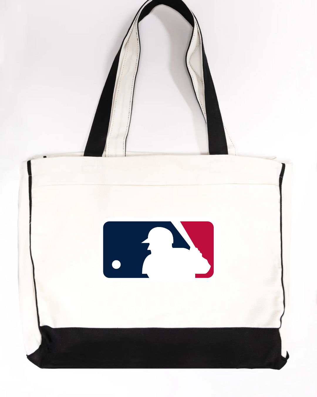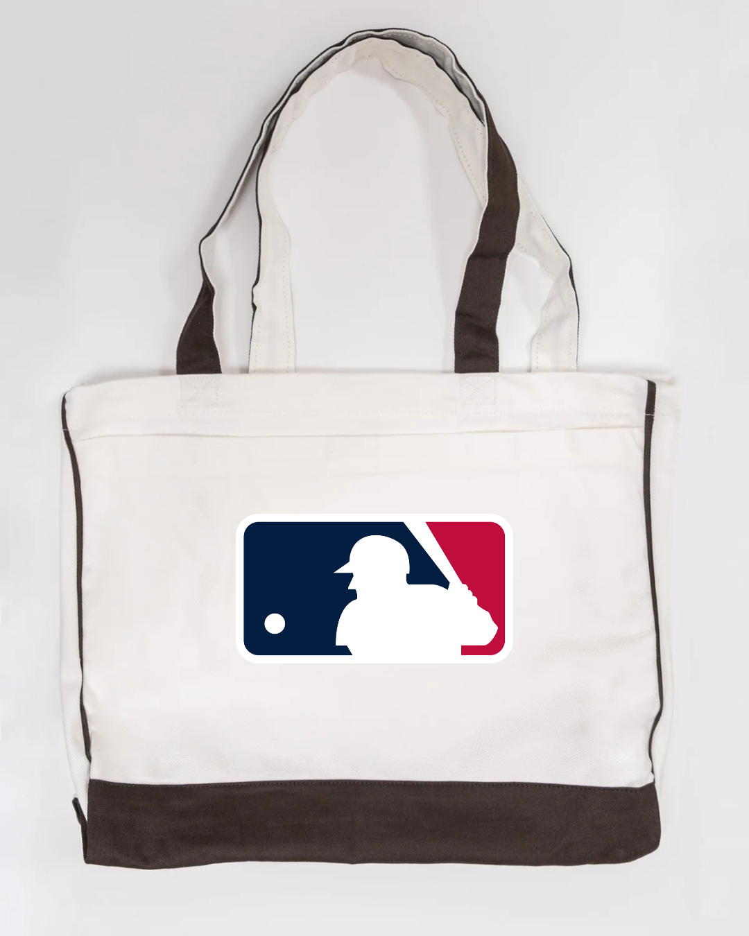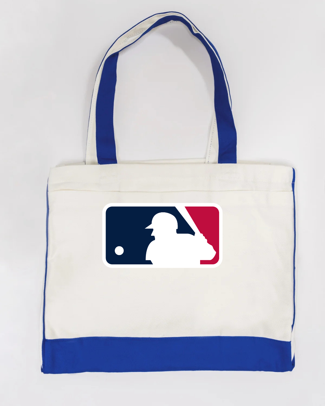 Show your love for the game with our MLB Logo Trimmed Tote Bag. Featuring the classic baseball-inspired emblem, this tote blends sporty style with everyday functionality. Crafted from durable fabric and accented with sleek black trimming, it offers a roomy interior perfect for gym gear, groceries, or daily essentials. Lightweight, strong, and built for fans who live and breathe baseball—this tote is a home run for any outing.