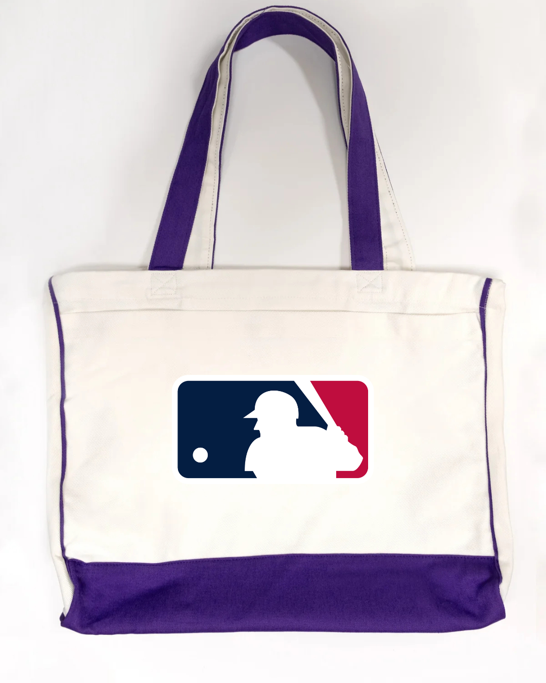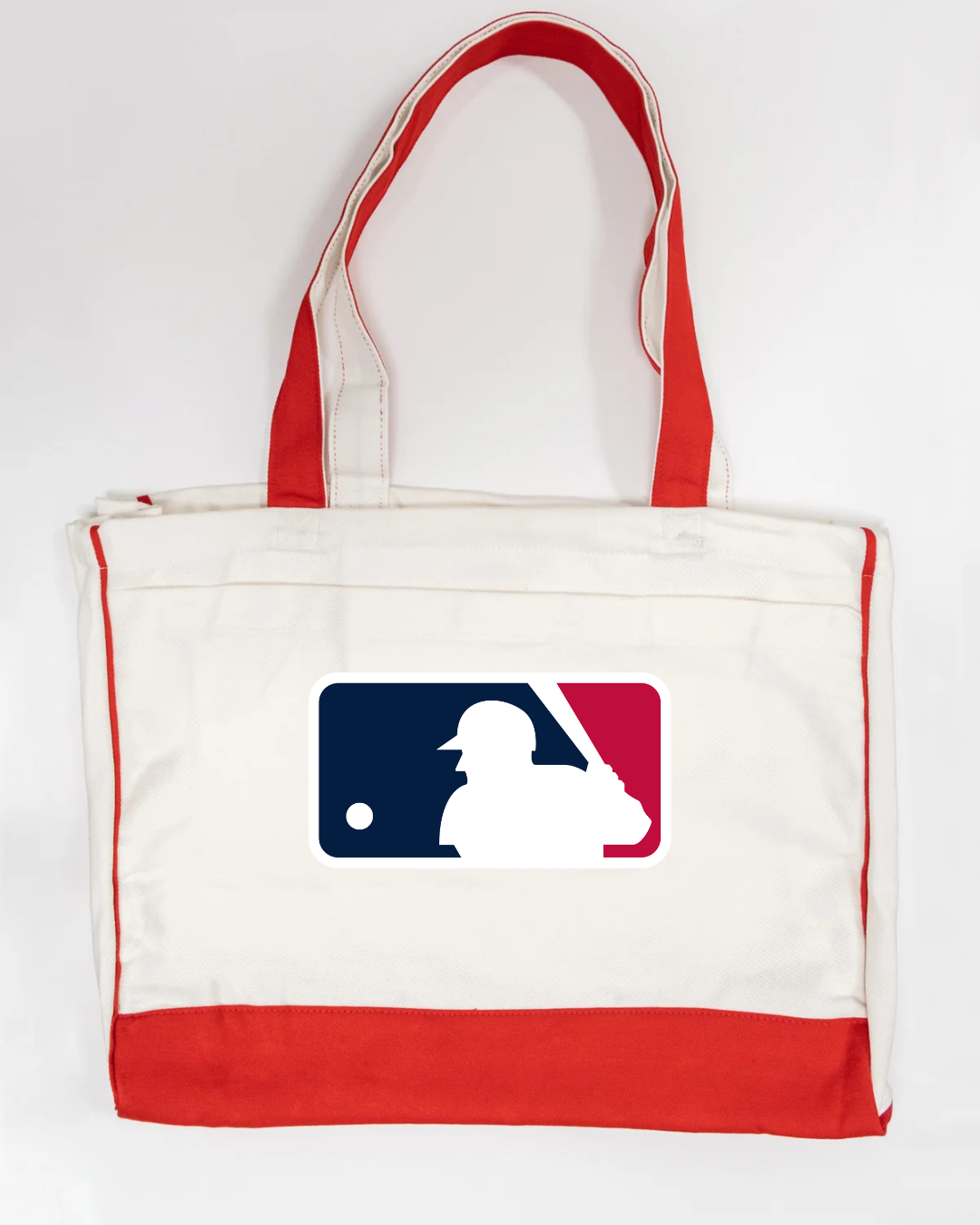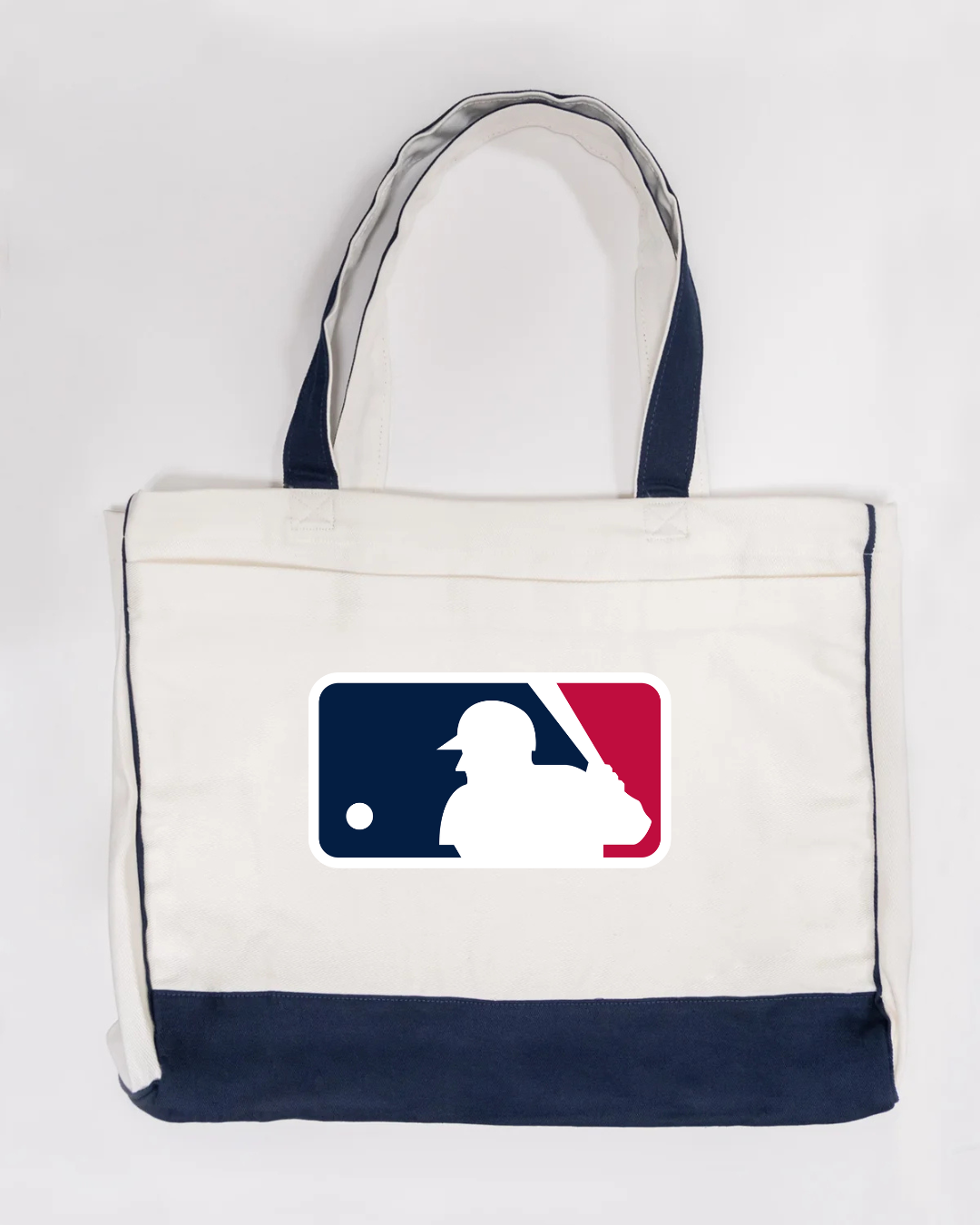 Show your love for the game with our MLB Logo Trimmed Tote Bag. Featuring the classic baseball-inspired emblem, this tote blends sporty style with everyday functionality. Crafted from durable fabric and accented with sleek black trimming, it offers a roomy interior perfect for gym gear, groceries, or daily essentials. Lightweight, strong, and built for fans who live and breathe baseball—this tote is a home run for any outing.
