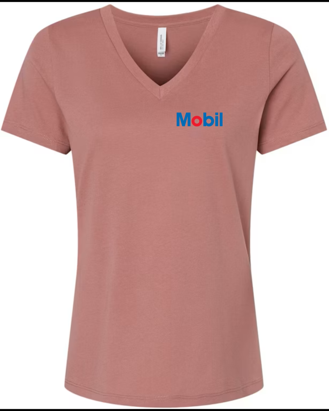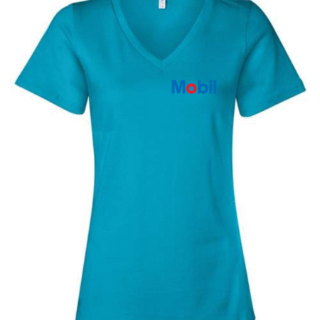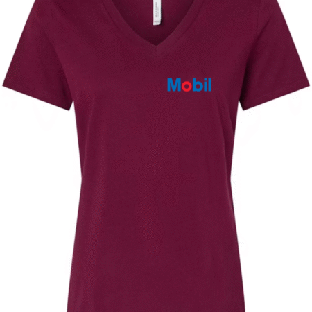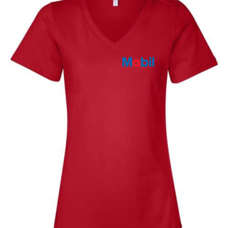 Mobil Women’s V-Neck T-Shirt Oil & Gas Logo Graphic Tee