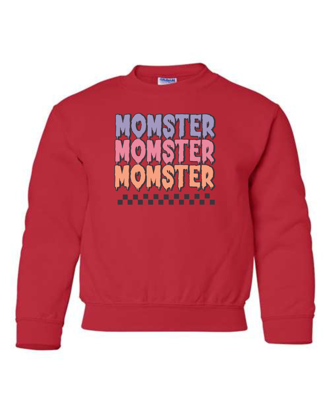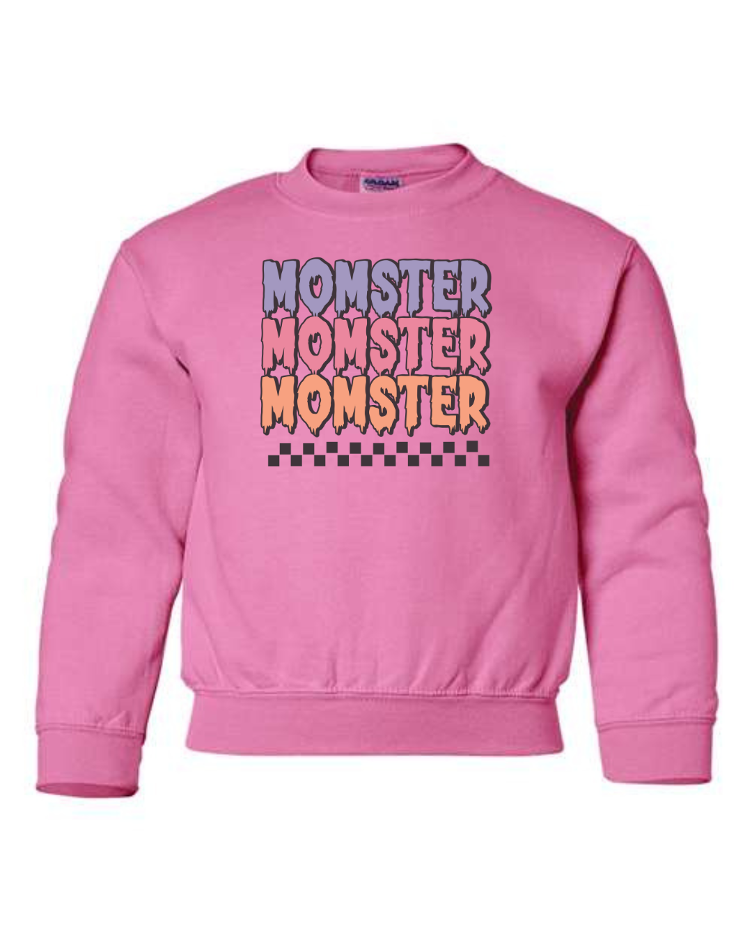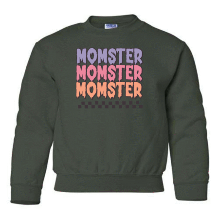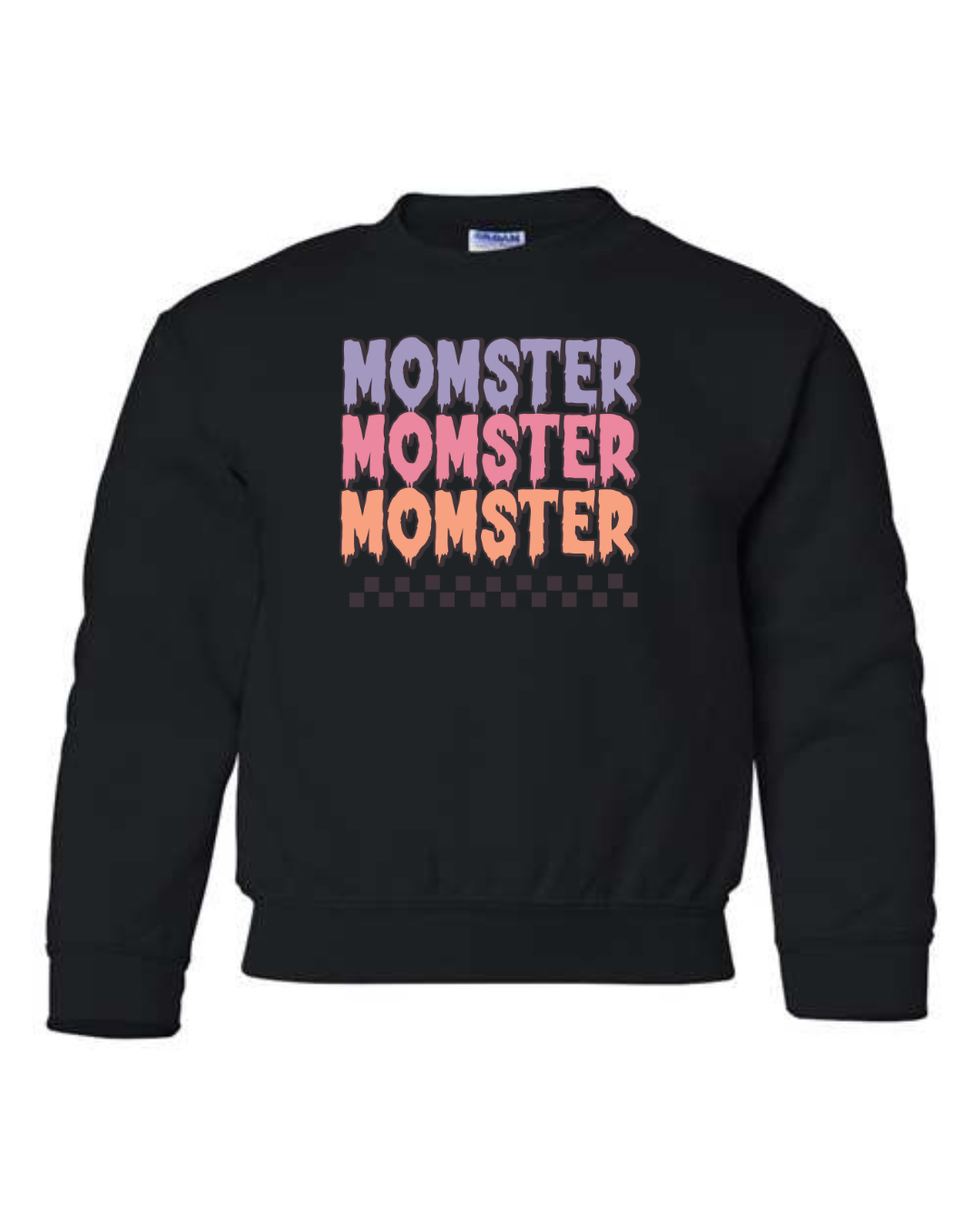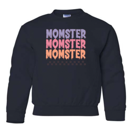Add a pop of fun to their wardrobe with the Monster Text Graphic Youth Sweatshirt. Featuring bold, colorful “MONSTER” lettering stacked in playful shades with a checkered accent, this pullover is perfect for kids who love unique, standout designs. Cozy and durable, it’s great for school, casual wear, or weekend fun. Available in youth sizes XS to XL.