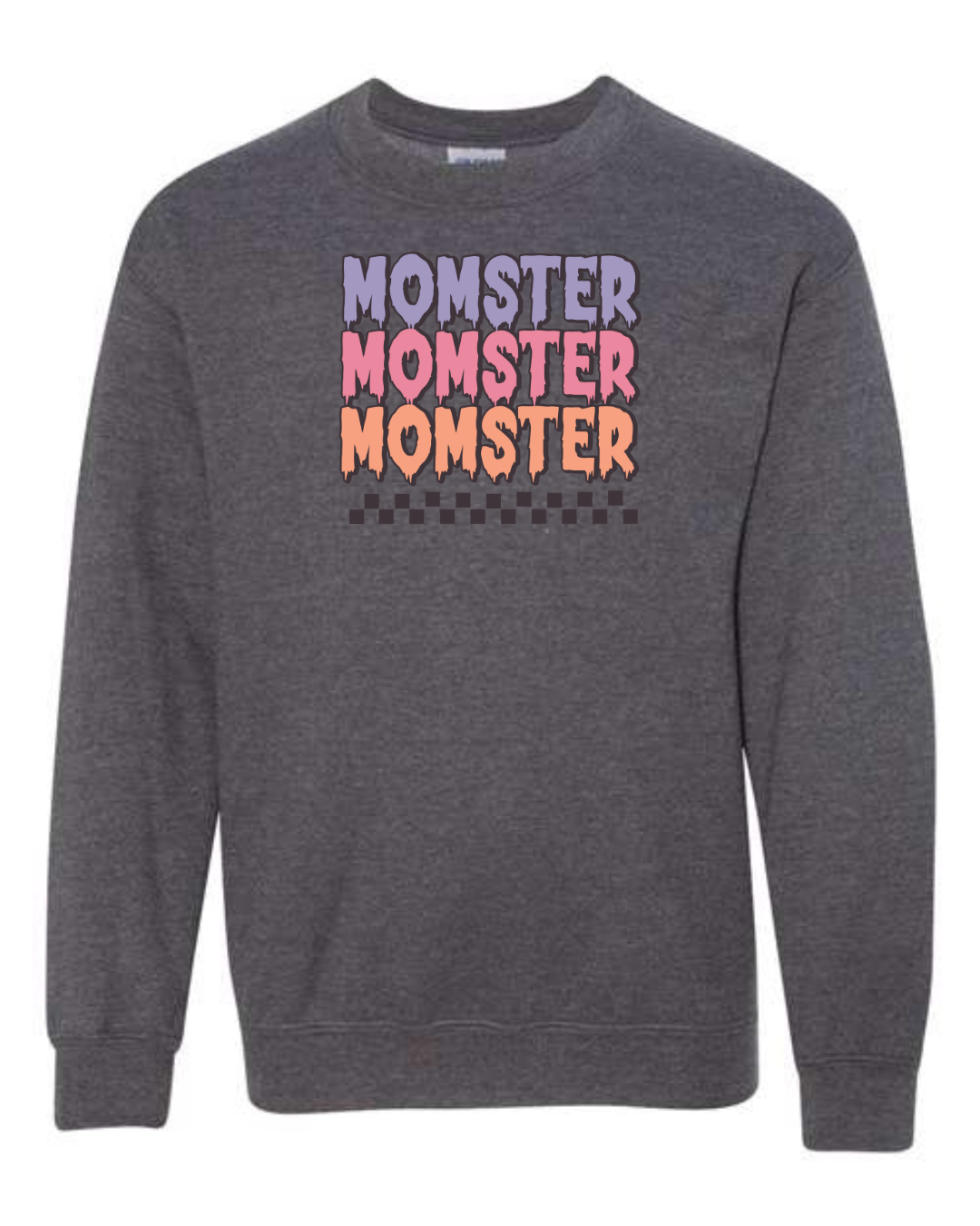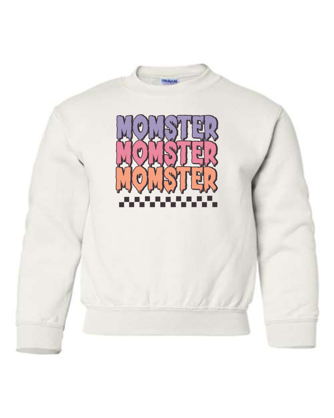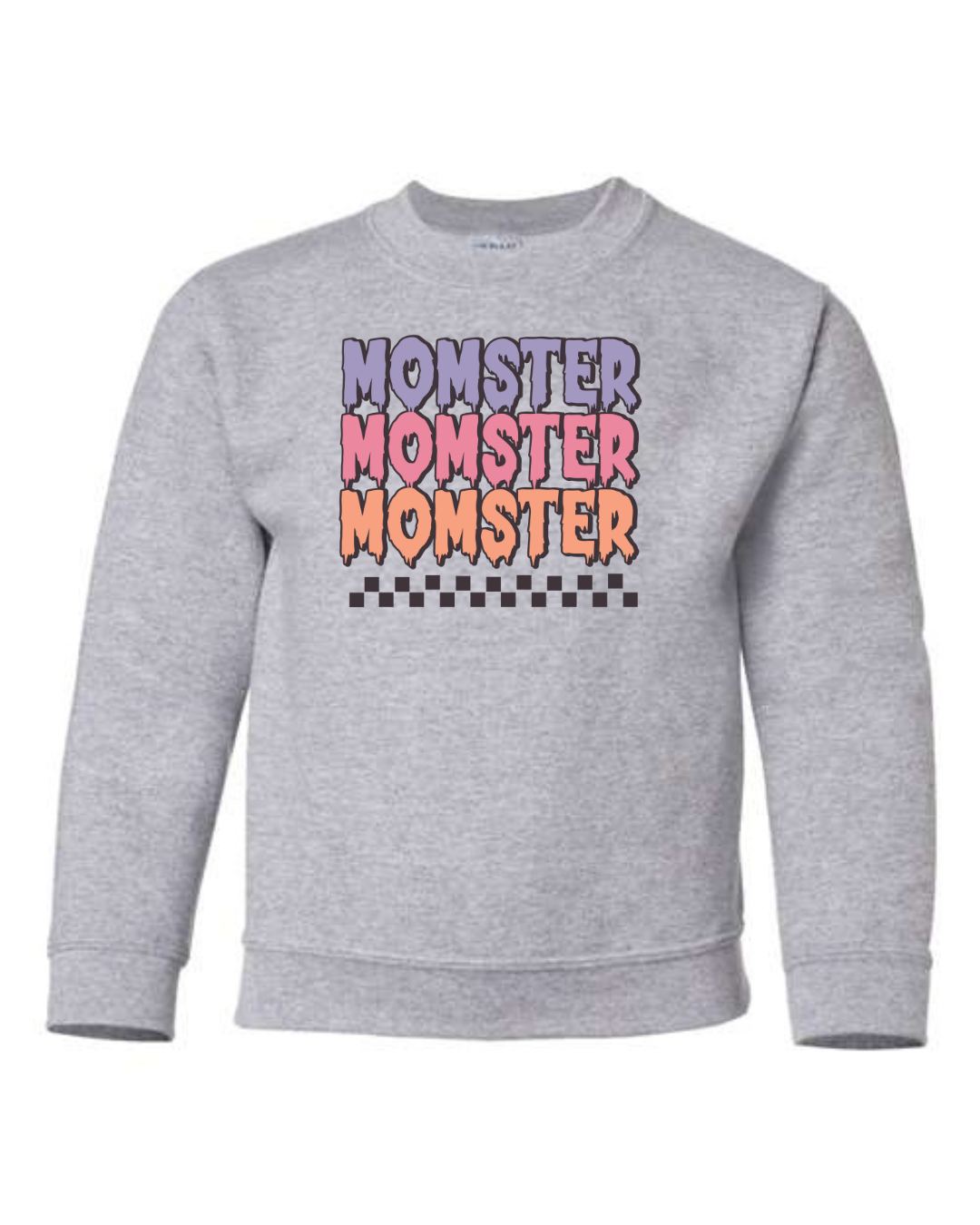 Add a pop of fun to their wardrobe with the Monster Text Graphic Youth Sweatshirt. Featuring bold, colorful “MONSTER” lettering stacked in playful shades with a checkered accent, this pullover is perfect for kids who love unique, standout designs. Cozy and durable, it’s great for school, casual wear, or weekend fun. Available in youth sizes XS to XL.