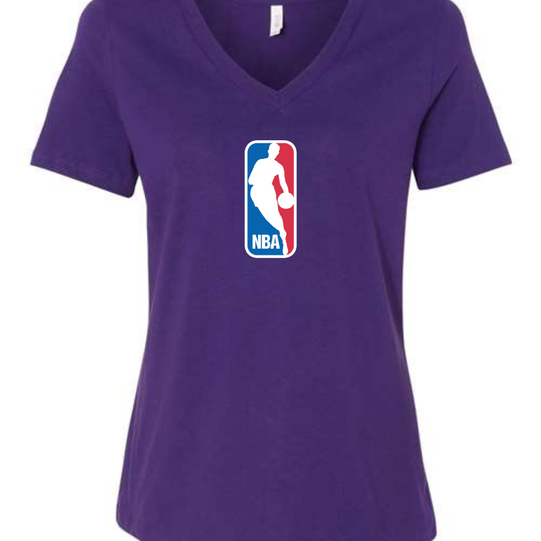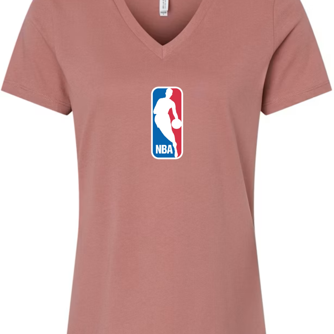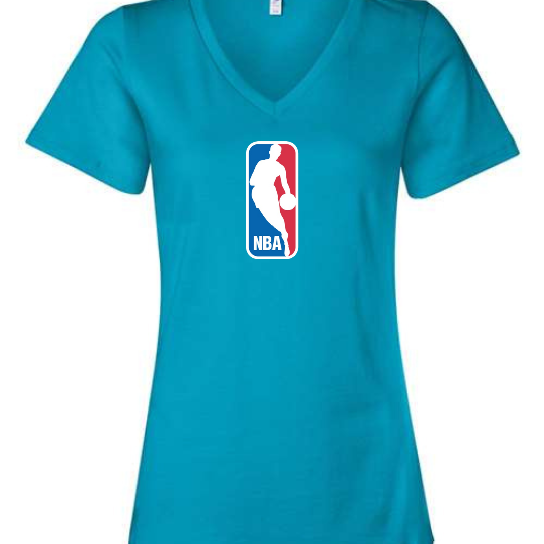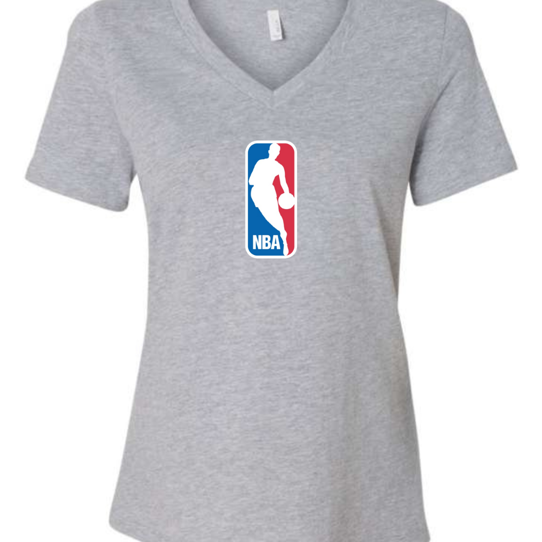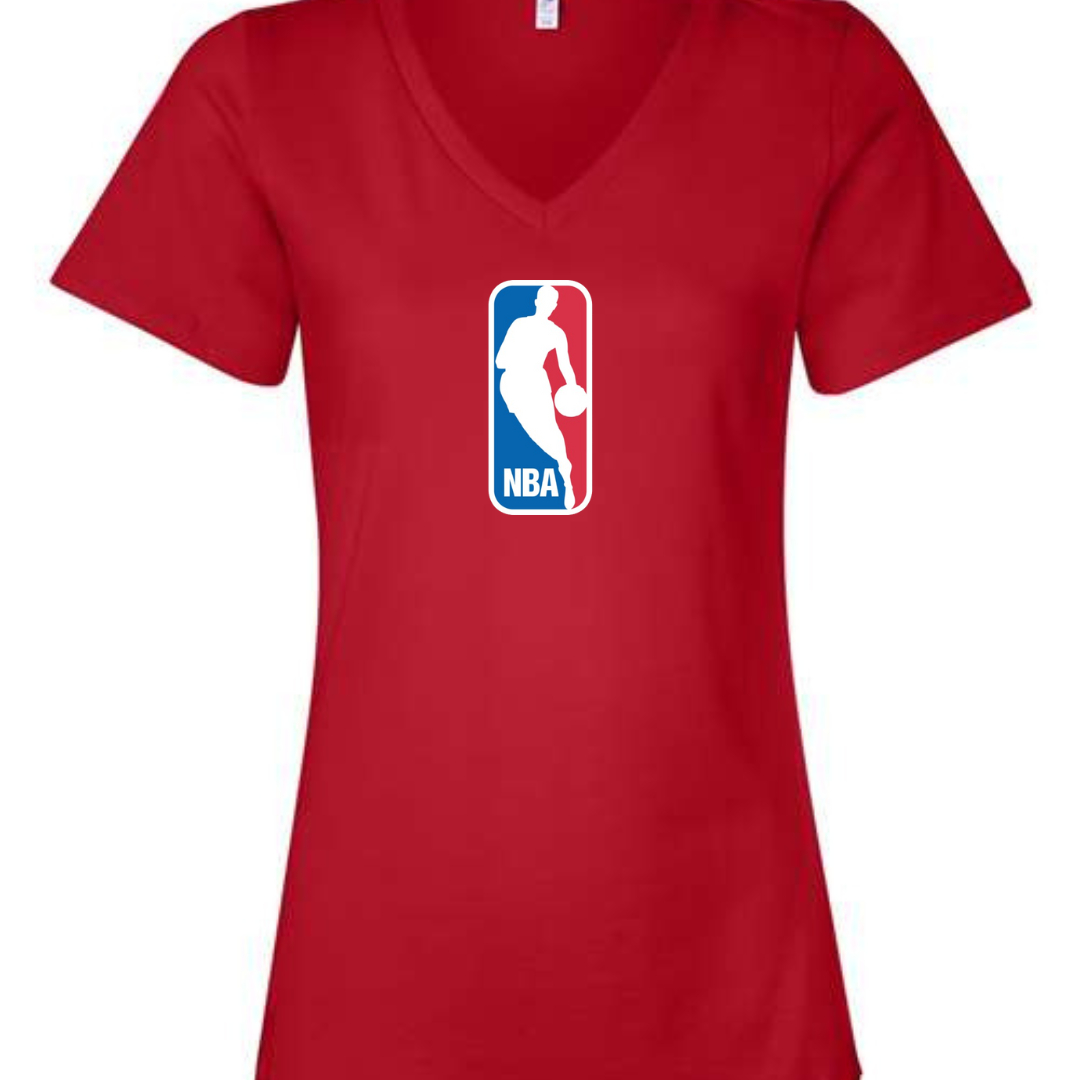 Show your love for the game with this Bella Canvas Women’s V-Neck T-Shirt featuring a design inspired by the iconic NBA logo. Whether you’re courtside or couch-side, this tee lets you rep your passion for pro basketball in sleek, sporty style. Made from ultra-soft Bella Canvas cotton blend, it’s designed for all-day comfort and a flattering fit. Available in sizes S to 2XL.