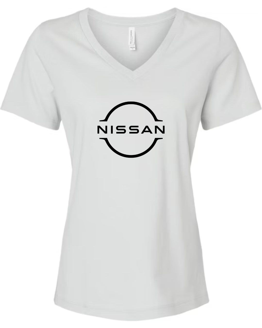 Inspired by Nissan’s sleek new logo and legacy of innovation, this Bella Canvas Women’s V-Neck Tee features the modern black Nissan emblem on a fresh white backdrop. With its clean lines and futuristic feel, this tee is perfect for automotive enthusiasts, minimalists, and fans of cutting-edge design. Crafted from Bella Canvas’s soft cotton blend, it delivers comfort and a flattering fit for everyday wear. Available in sizes S to 2XL.