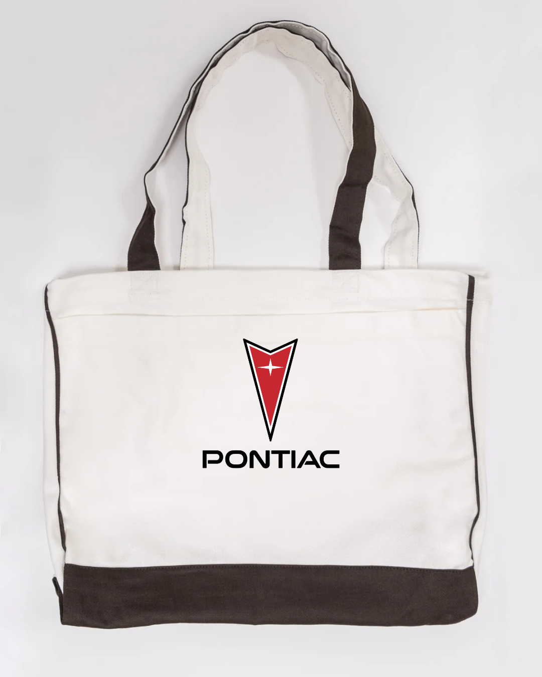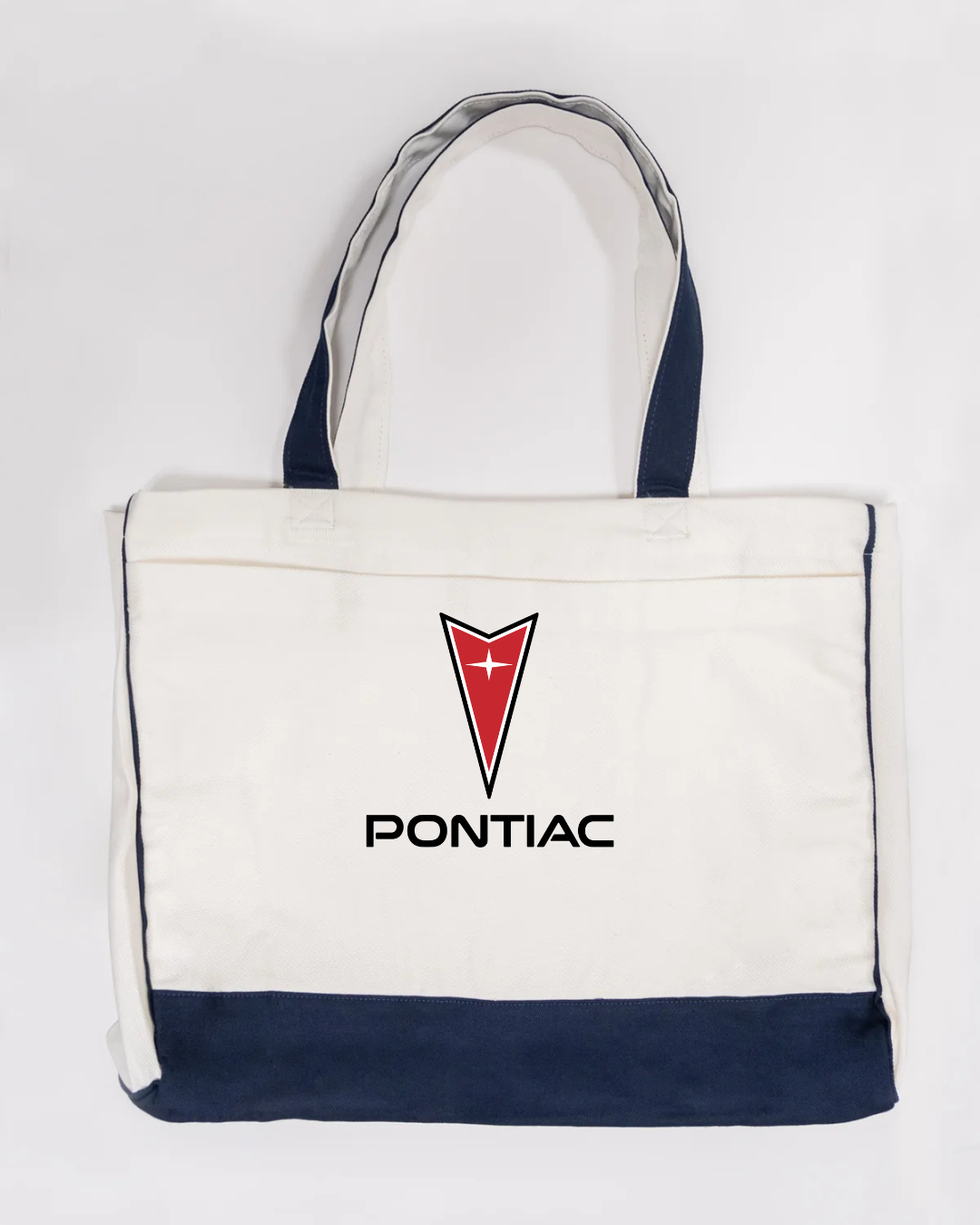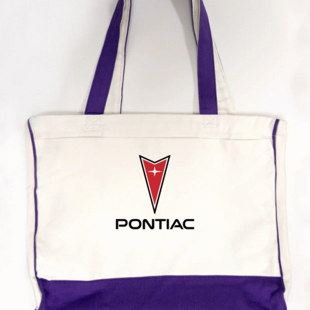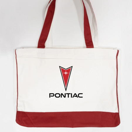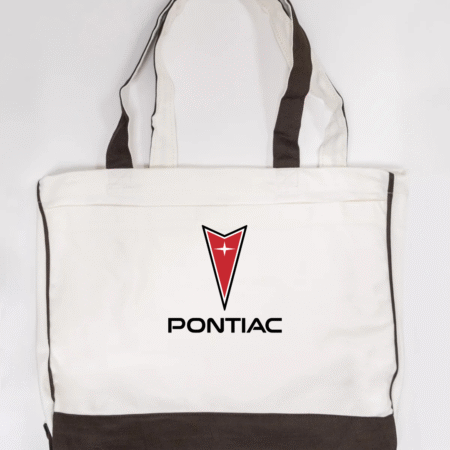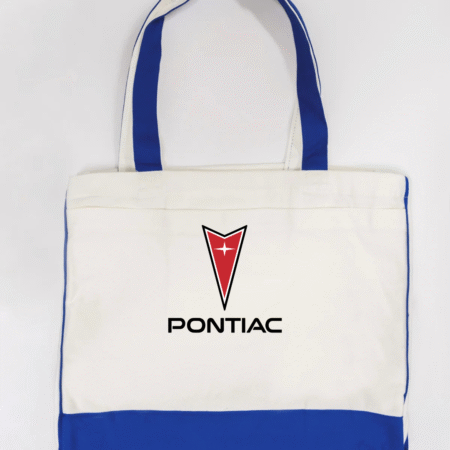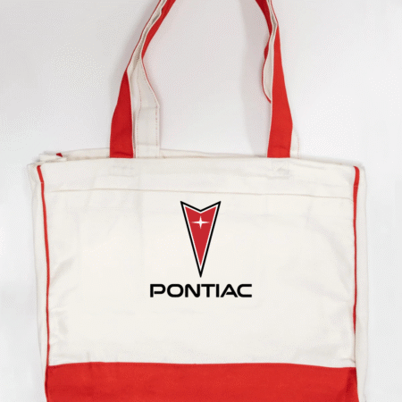 Show off classic automotive heritage with our Pontiac Logo Trimmed Tote Bag. Featuring the iconic Pontiac arrowhead logo, this tote blends vintage muscle-car style with everyday practicality. Crafted from durable canvas fabric and accented with sleek black trimming, it offers a spacious interior perfect for errands, work, travel, or daily essentials. Lightweight, sturdy, and stylish—ideal for fans of classic American car culture.