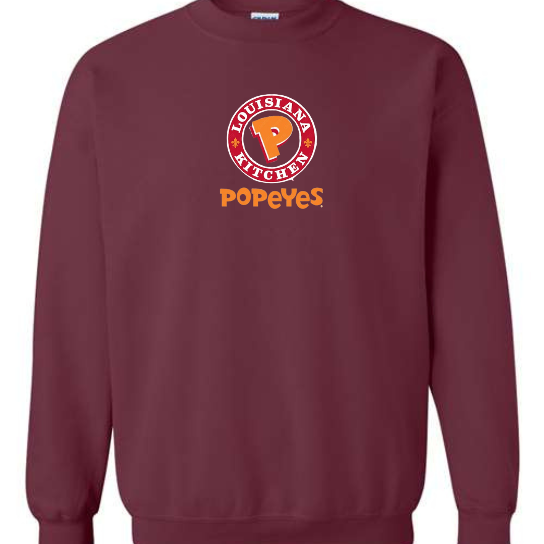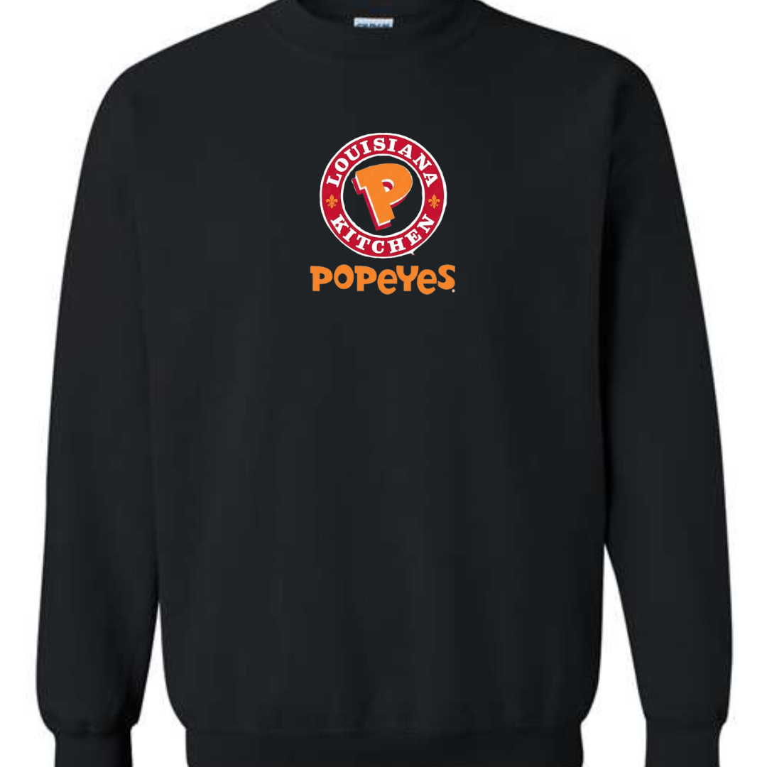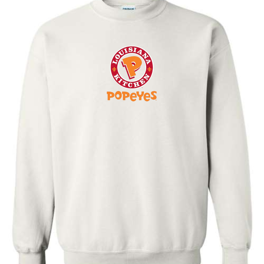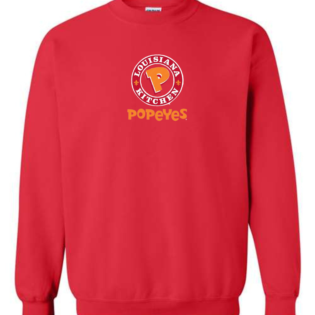 Inspired by the bold flavor and southern spirit of Popeyes, this Popeyes Louisiana Kitchen Logo Men’s Sweatshirt is perfect for fans of the iconic fast-food brand. Featuring the classic Popeyes emblem and signature lettering, this sweatshirt blends fun, recognizable style with everyday comfort. Made from premium Gildan cotton, it offers warmth, durability, and a relaxed fit—great for casual wear, work shifts, or simply showing love for your favorite chicken spot.
