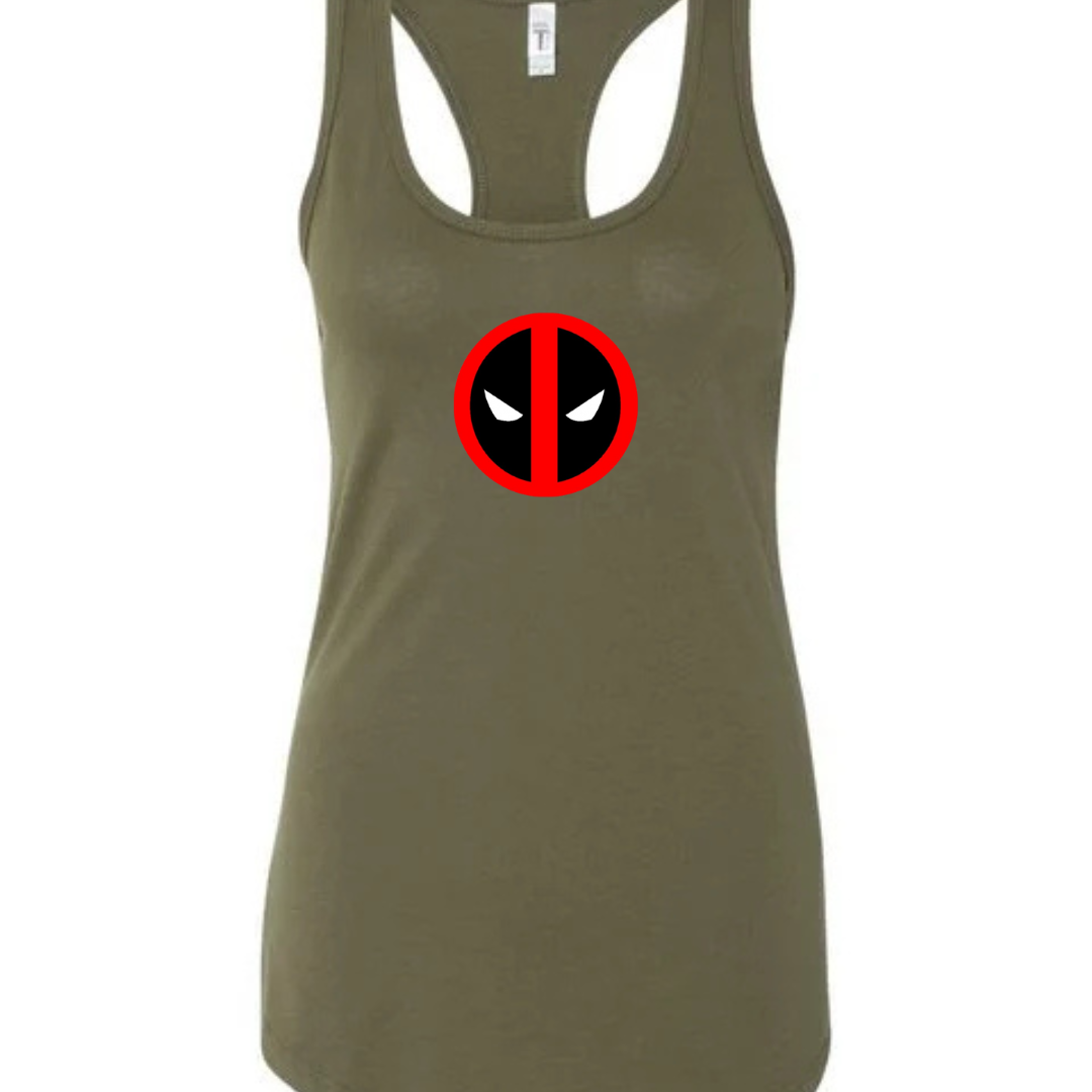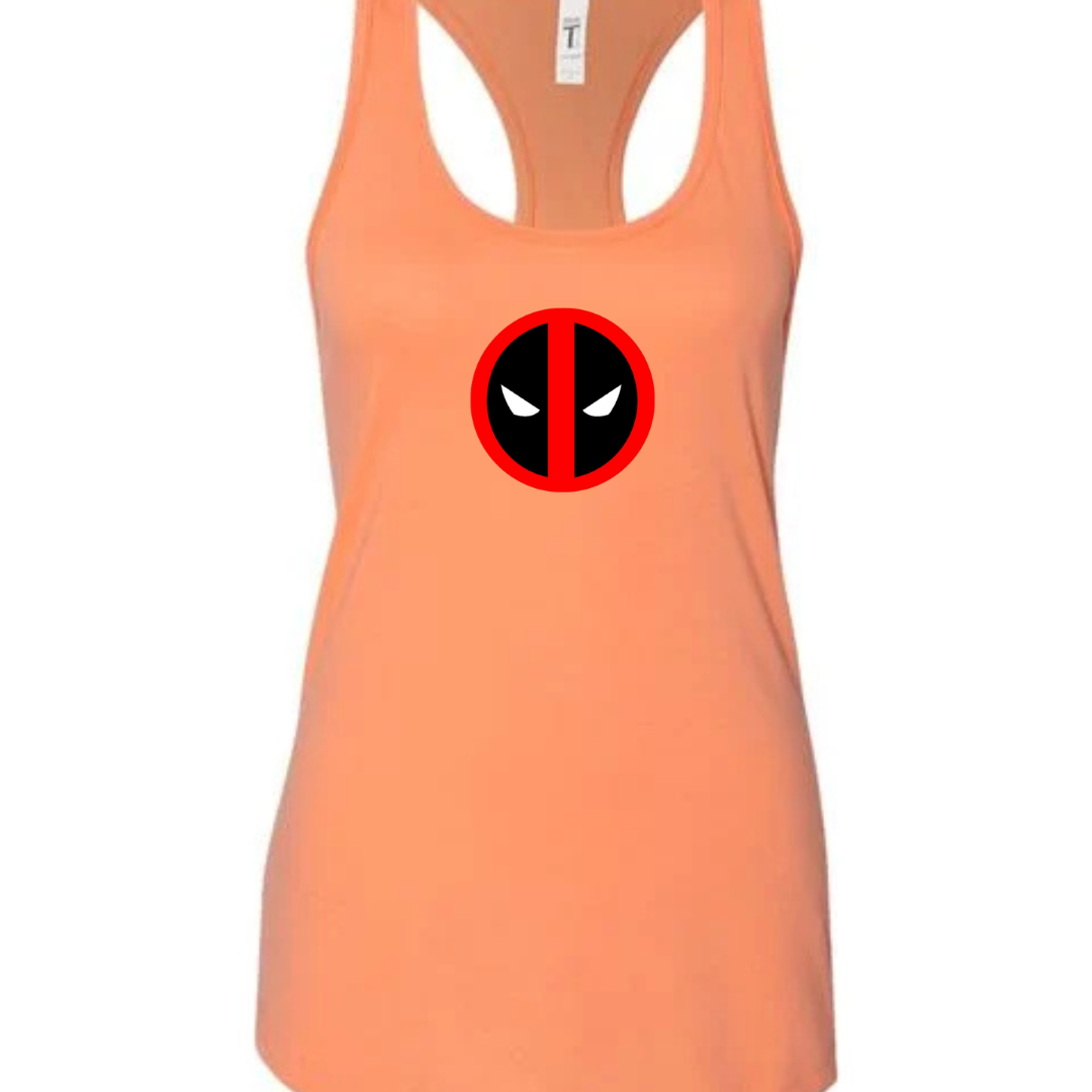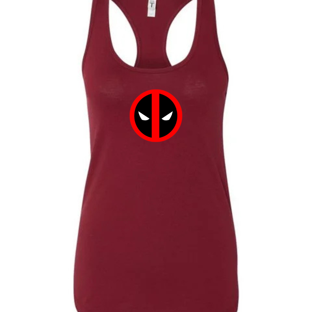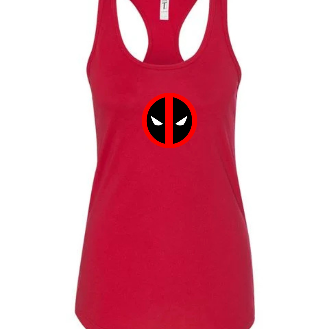 Bring your attitude to life with this Red Mask Logo Women’s Racerback Tank Top. Featuring a bold red circle mask design printed on the chest, this tank adds a striking, comic-inspired edge to your casual or workout wardrobe. The racerback cut delivers a flattering fit with plenty of stretch and comfort — perfect for gym sessions, lounging, or everyday wear.