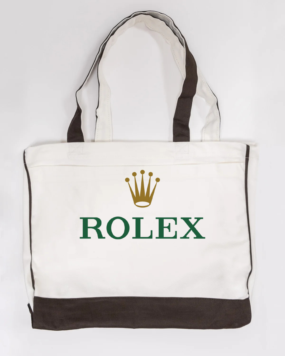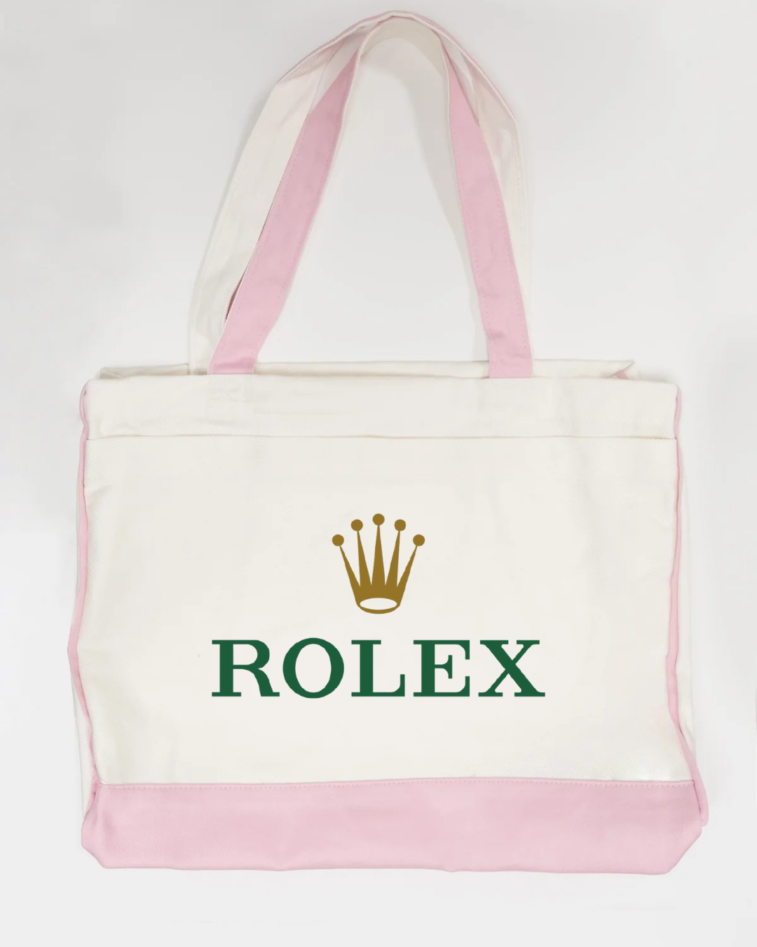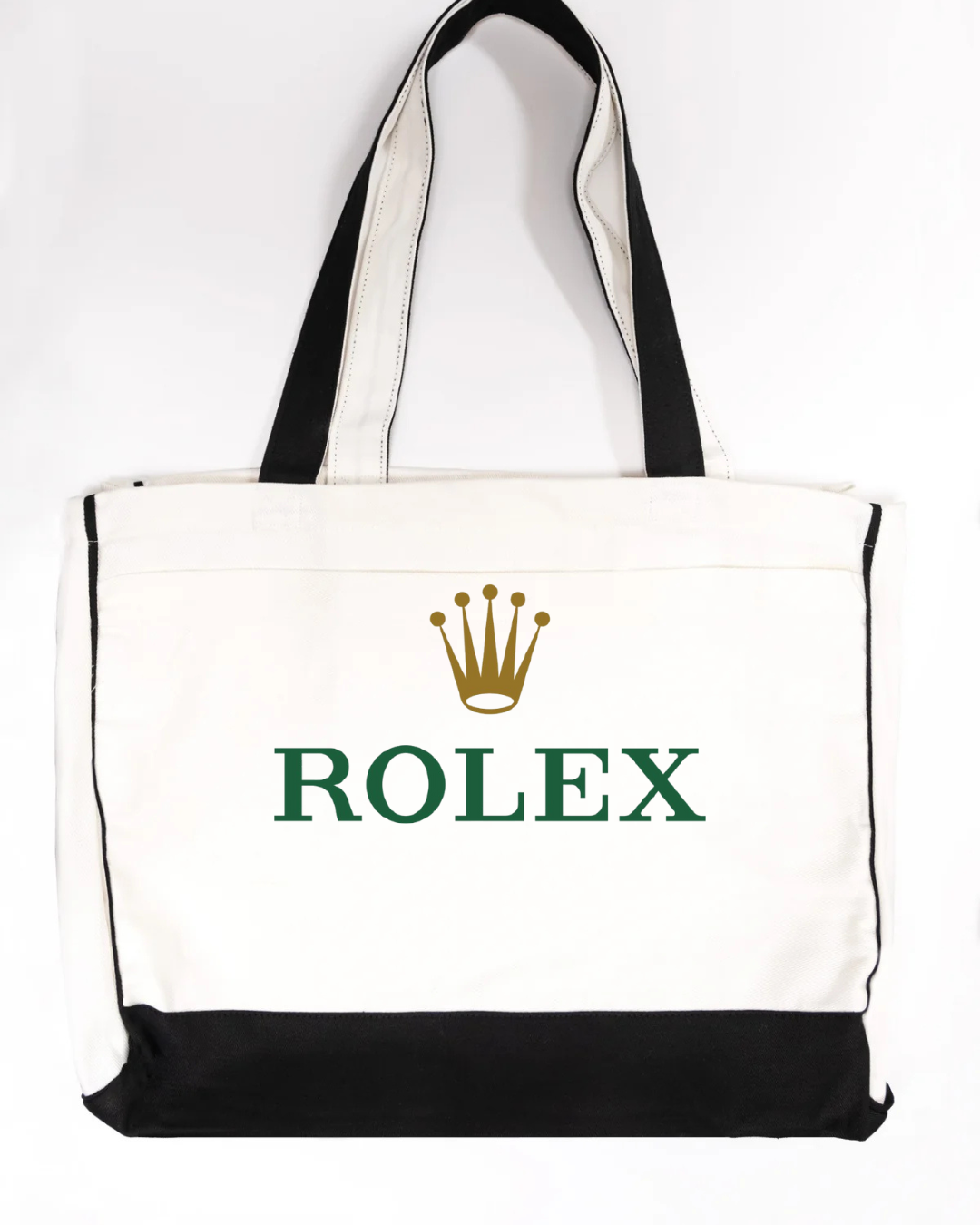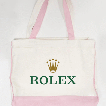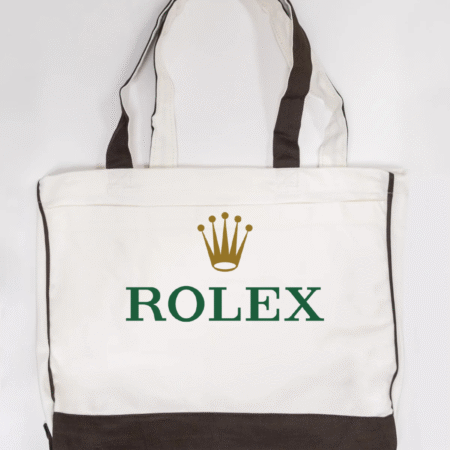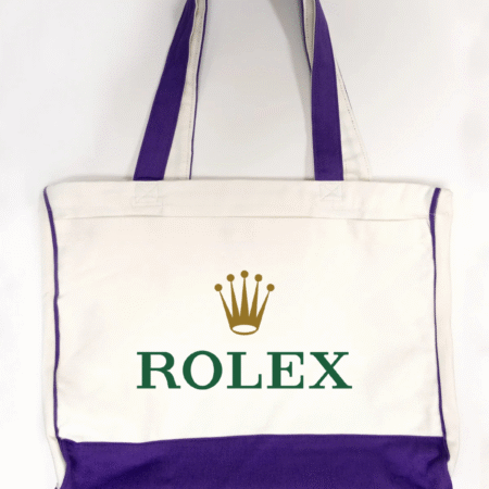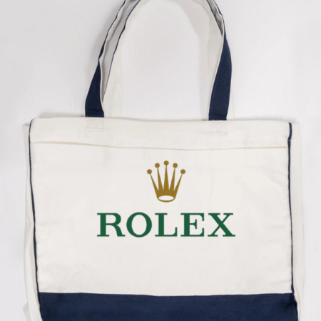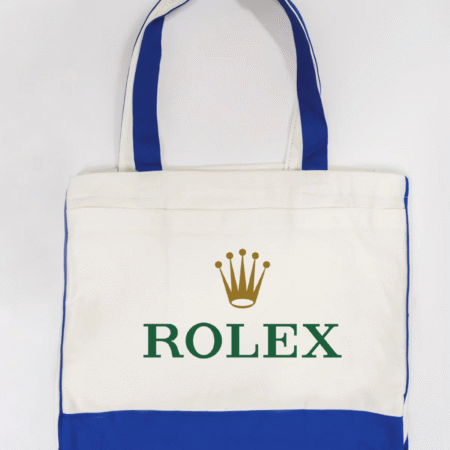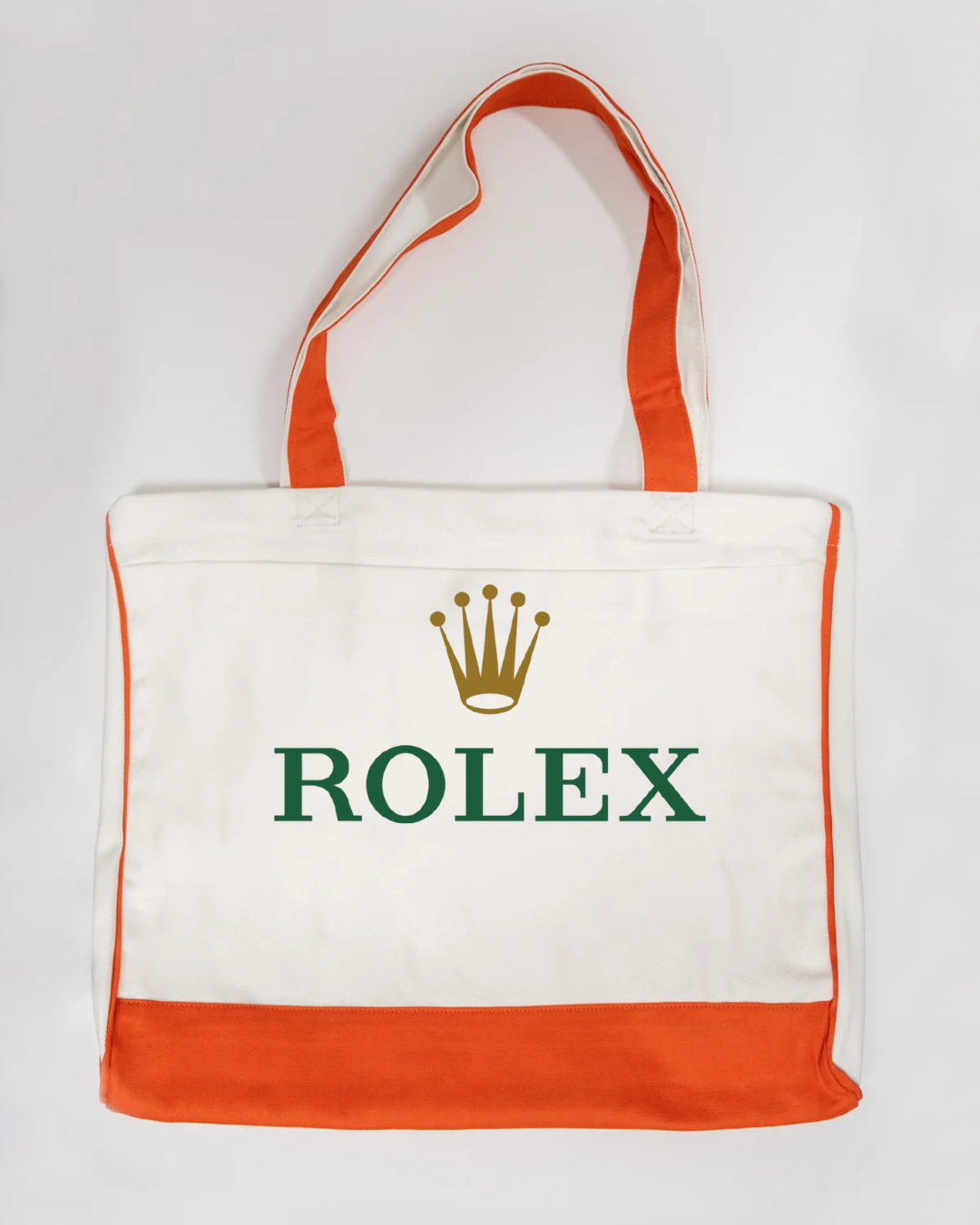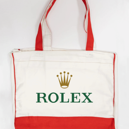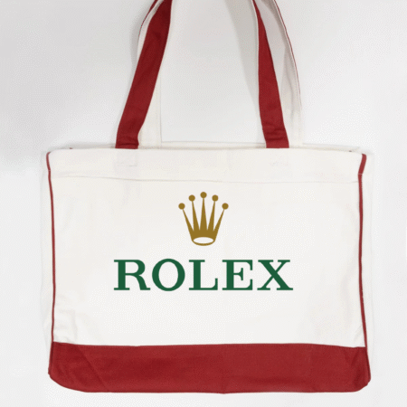 Add a touch of luxury to your everyday carry with our Rolex Logo Trimmed Tote Bag. Featuring the iconic crown-inspired Rolex emblem, this tote blends classic elegance with practical design. Crafted from durable canvas fabric and accented with rich orange trimming, it offers a spacious interior perfect for work, errands, travel, or daily essentials. Lightweight, sturdy, and stylish—this tote delivers a refined look with everyday functionality.