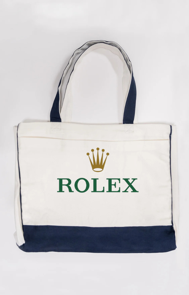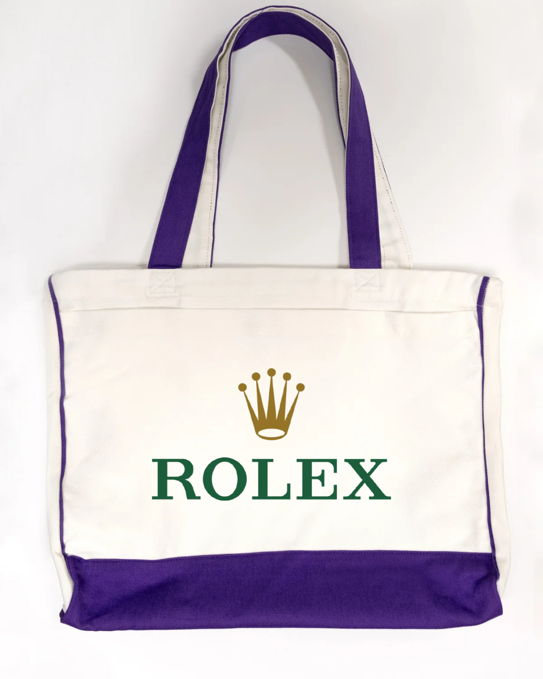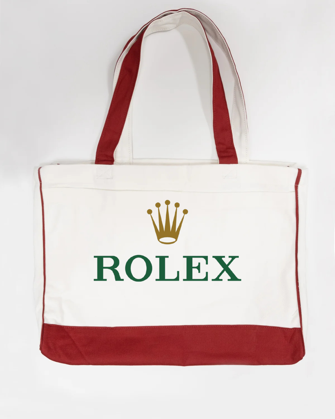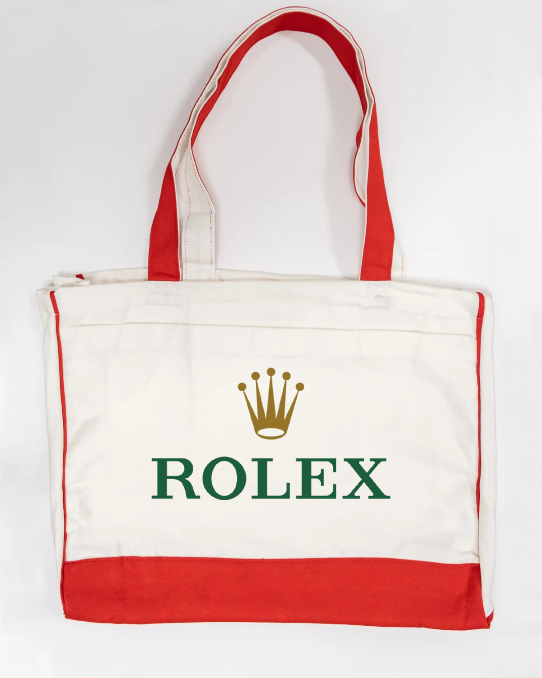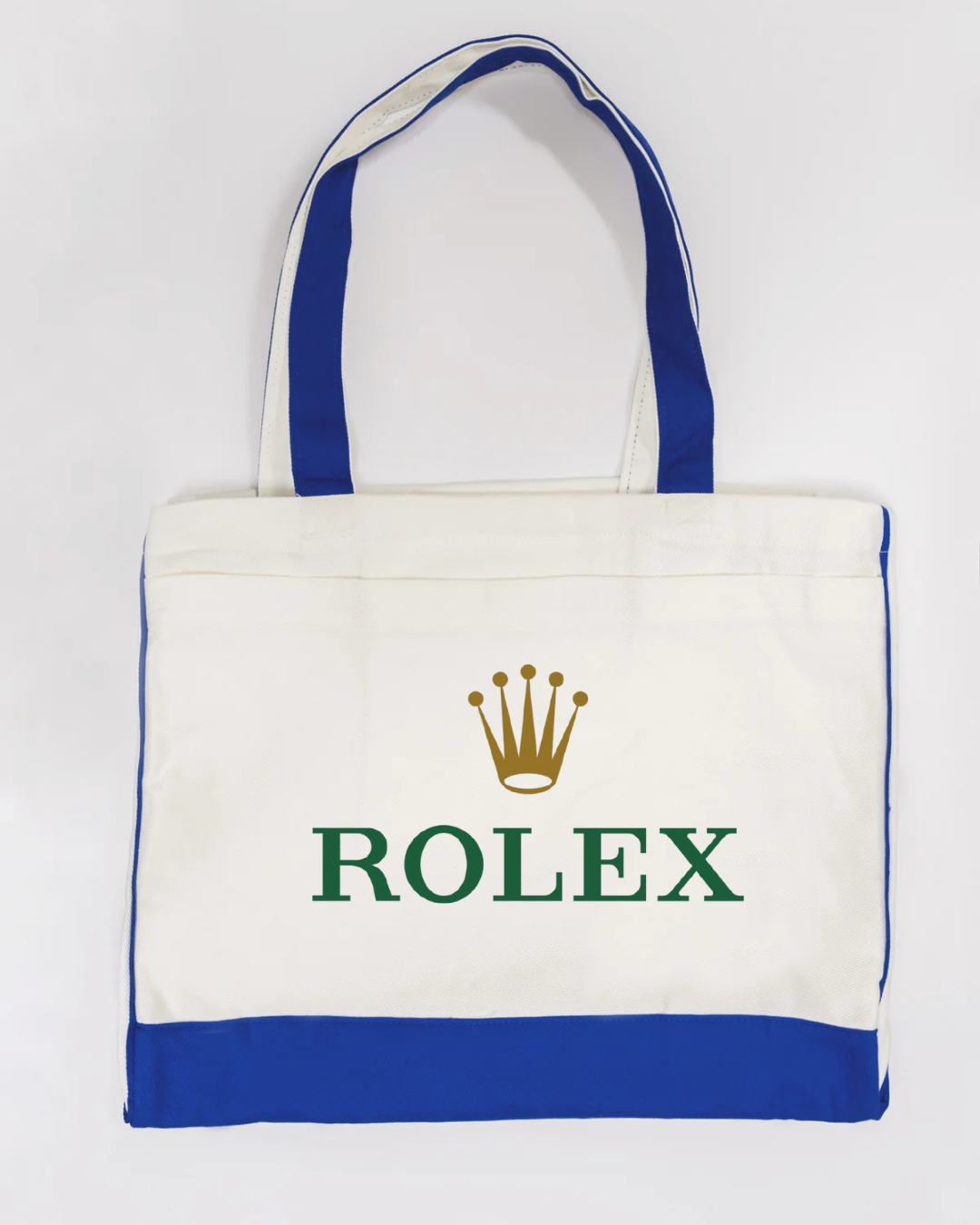 Add a touch of luxury to your everyday carry with our Rolex Logo Trimmed Tote Bag. Featuring the iconic crown-inspired Rolex emblem, this tote blends classic elegance with practical design. Crafted from durable canvas fabric and accented with rich orange trimming, it offers a spacious interior perfect for work, errands, travel, or daily essentials. Lightweight, sturdy, and stylish—this tote delivers a refined look with everyday functionality.
