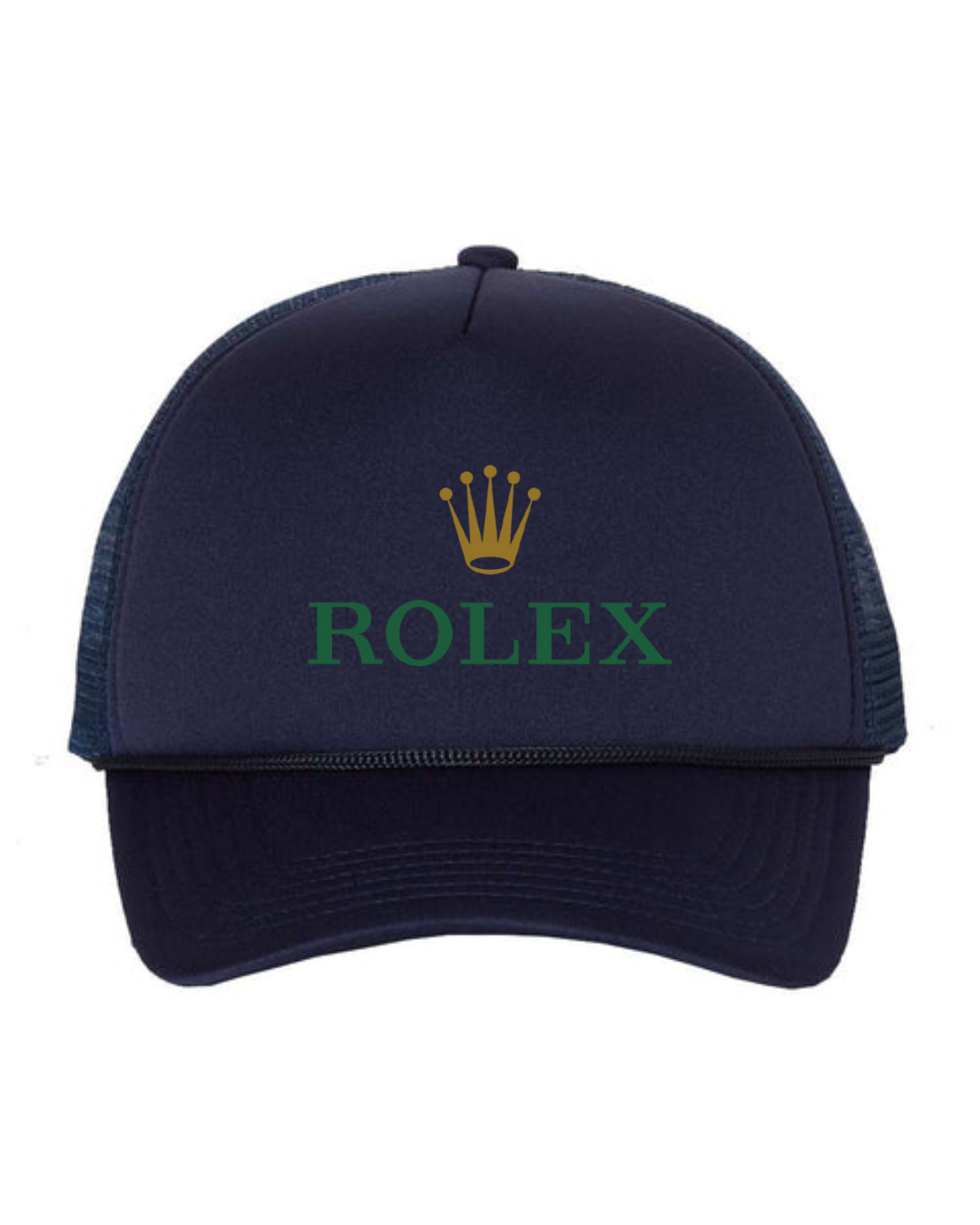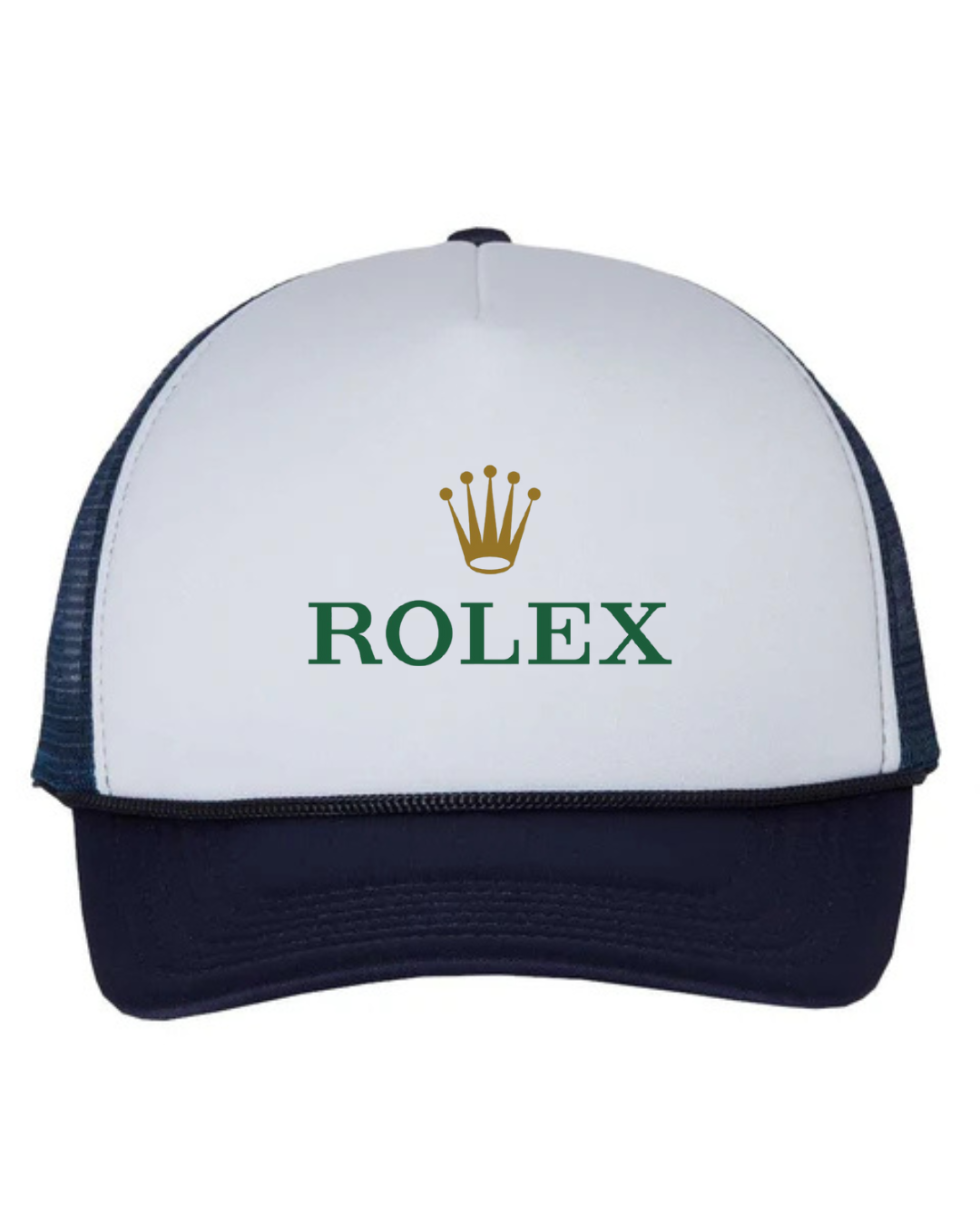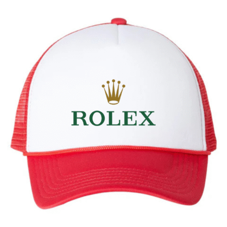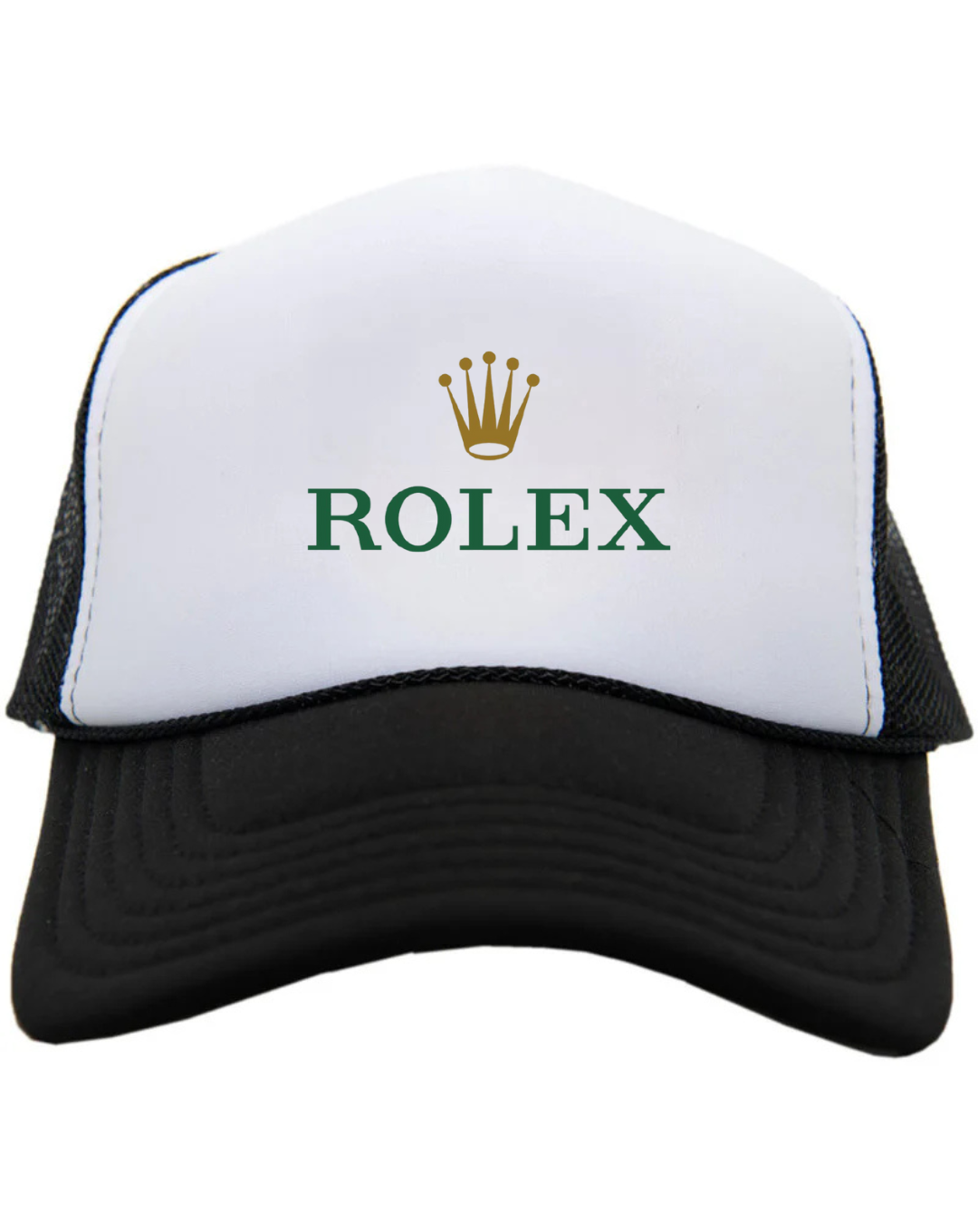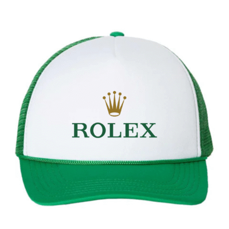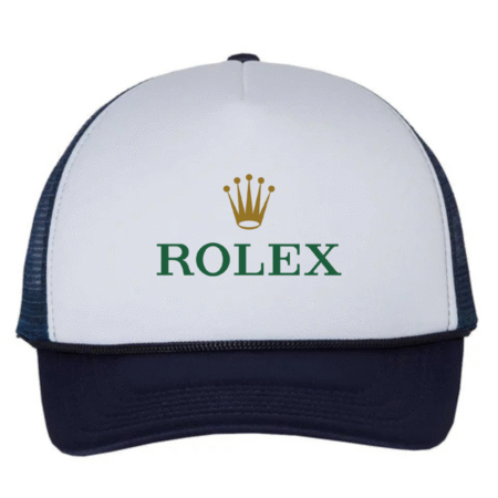 Add a touch of luxury style to your everyday look with our Rolex Logo Trucker Cap. Featuring the iconic crown emblem and text on the structured front panel, this cap blends sophistication with casual comfort. The breathable mesh back keeps you cool, while the adjustable snap closure ensures a secure and comfortable fit — perfect for collectors, watch enthusiasts, or anyone who appreciates refined branding.