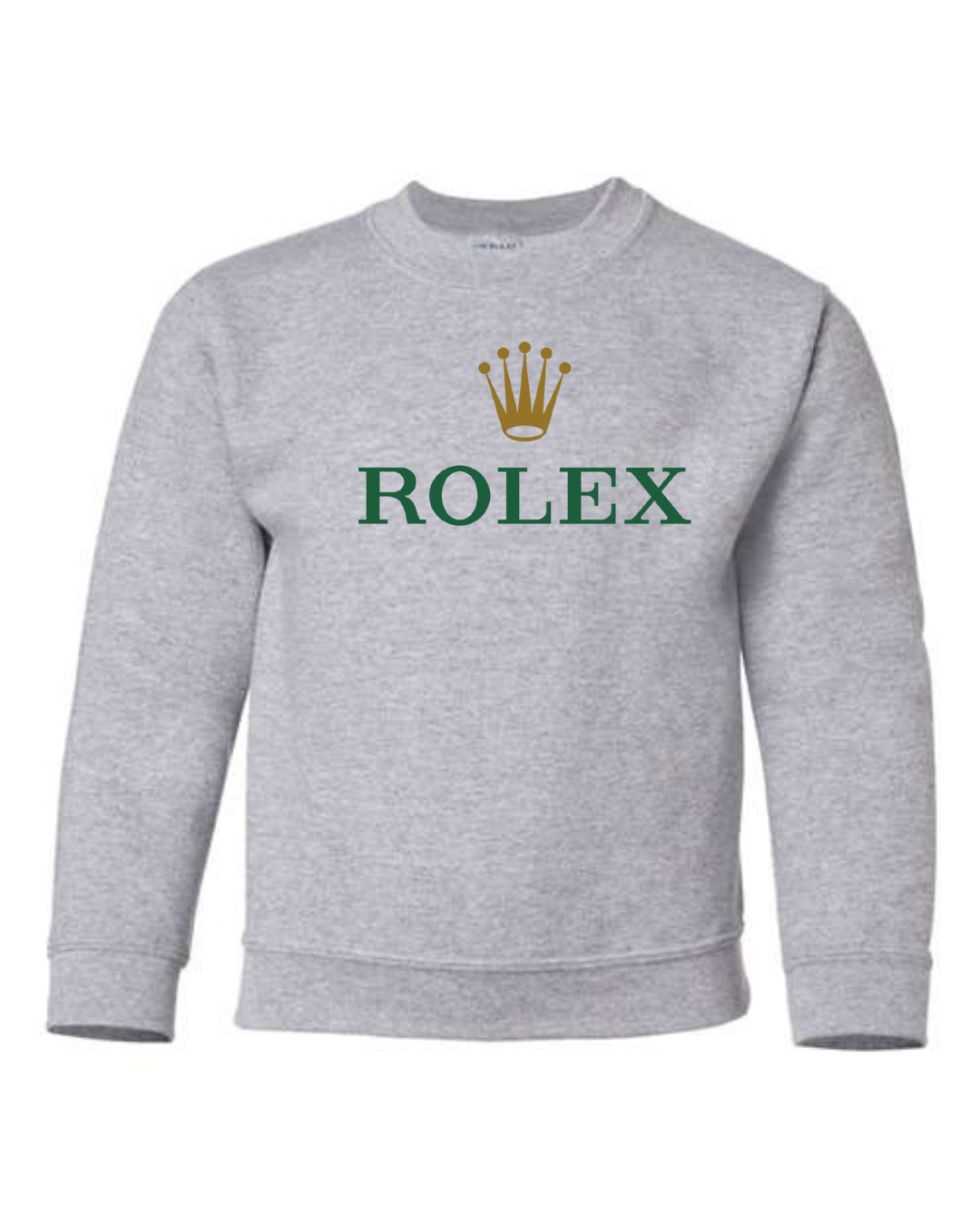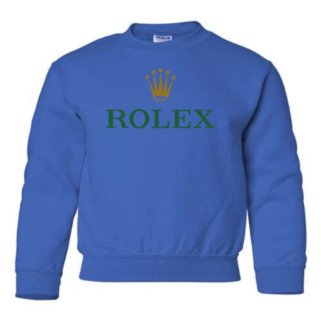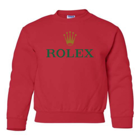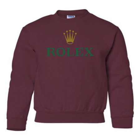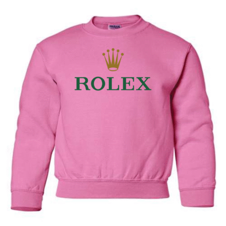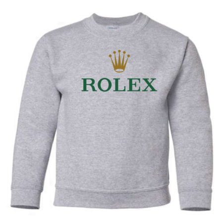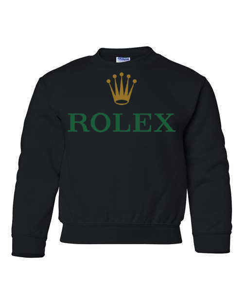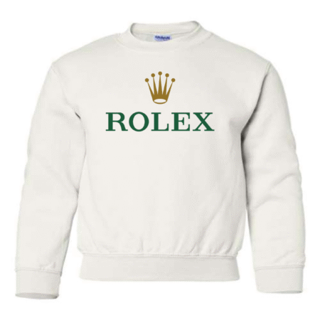 Add a touch of luxury to their casual style with the Rolex Logo Youth Sweatshirt. Featuring the elegant green “ROLEX” text and signature gold crown emblem, this pullover blends timeless sophistication with cozy comfort. Perfect for young trendsetters who love standout, classy designs. Available in youth sizes XS to XL.
