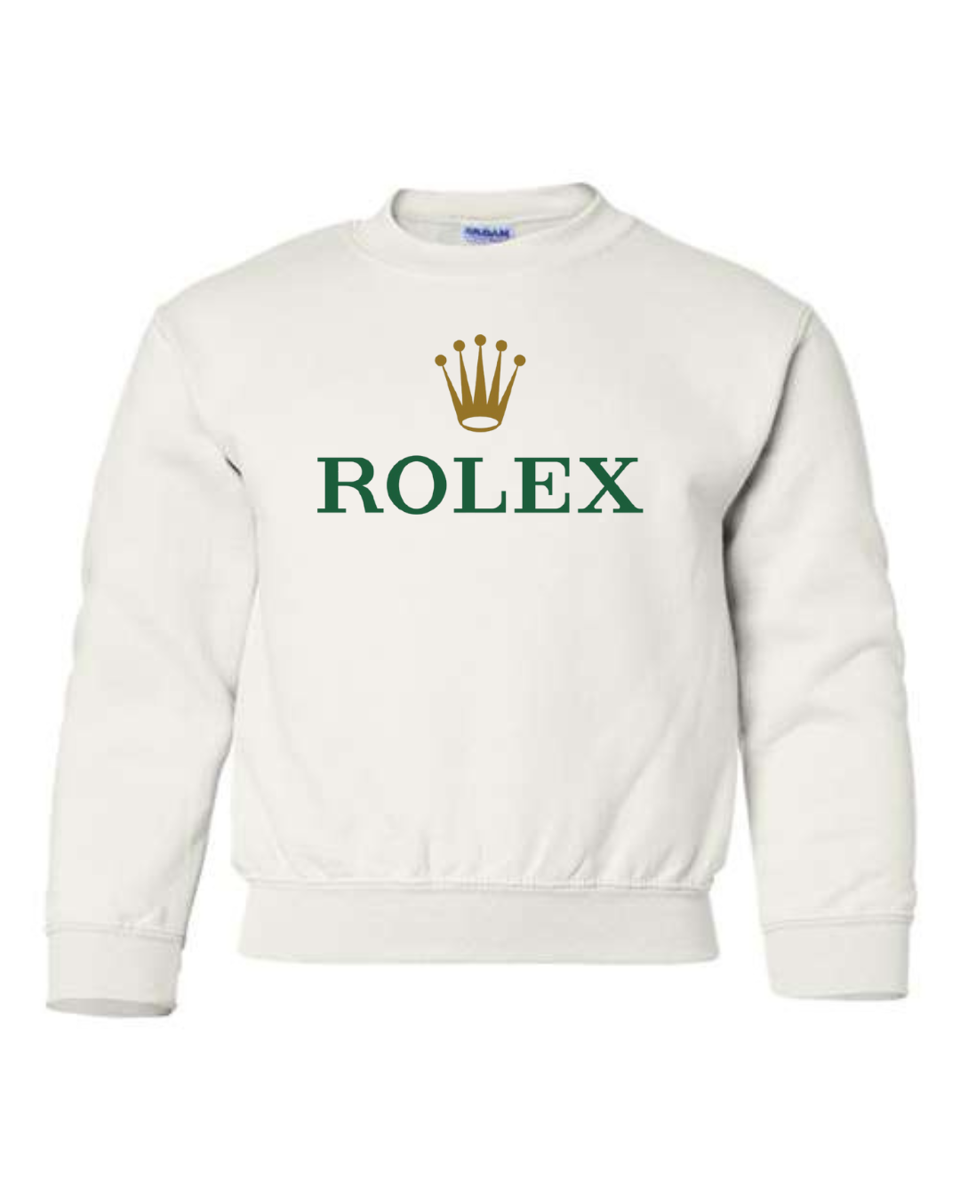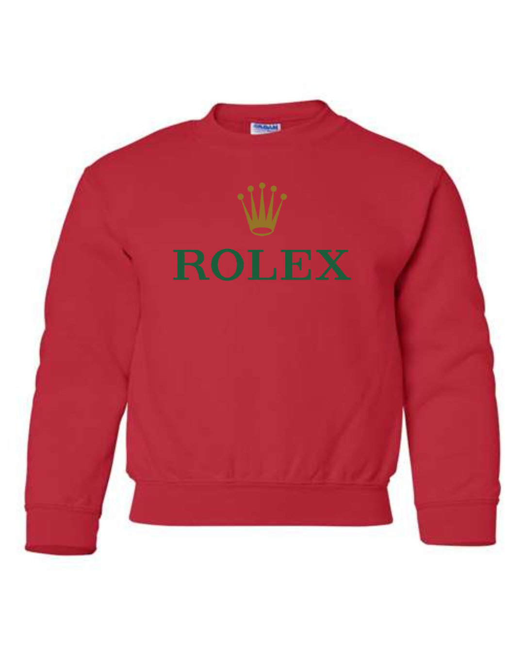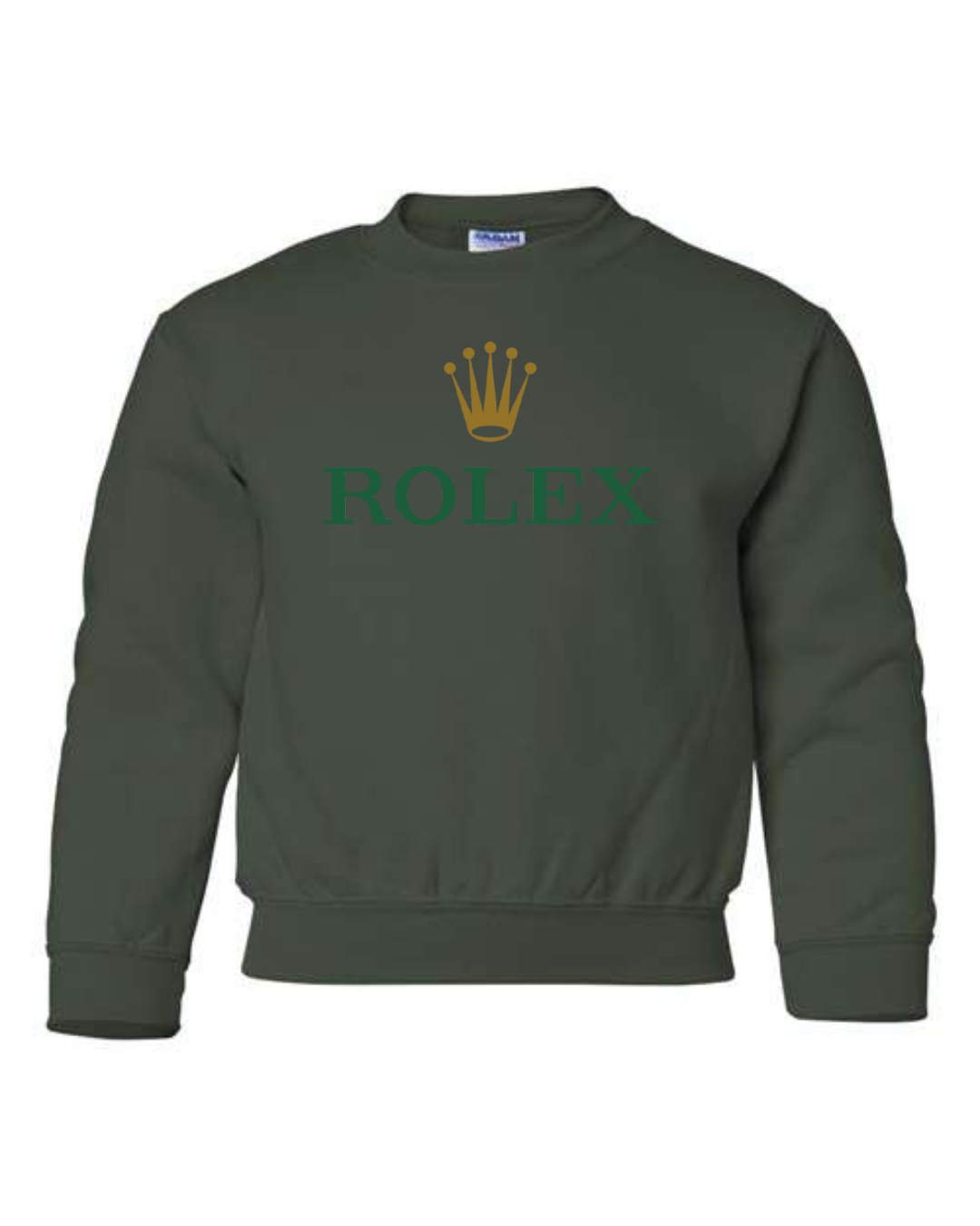 Add a touch of luxury to their casual style with the Rolex Logo Youth Sweatshirt. Featuring the elegant green “ROLEX” text and signature gold crown emblem, this pullover blends timeless sophistication with cozy comfort. Perfect for young trendsetters who love standout, classy designs. Available in youth sizes XS to XL.