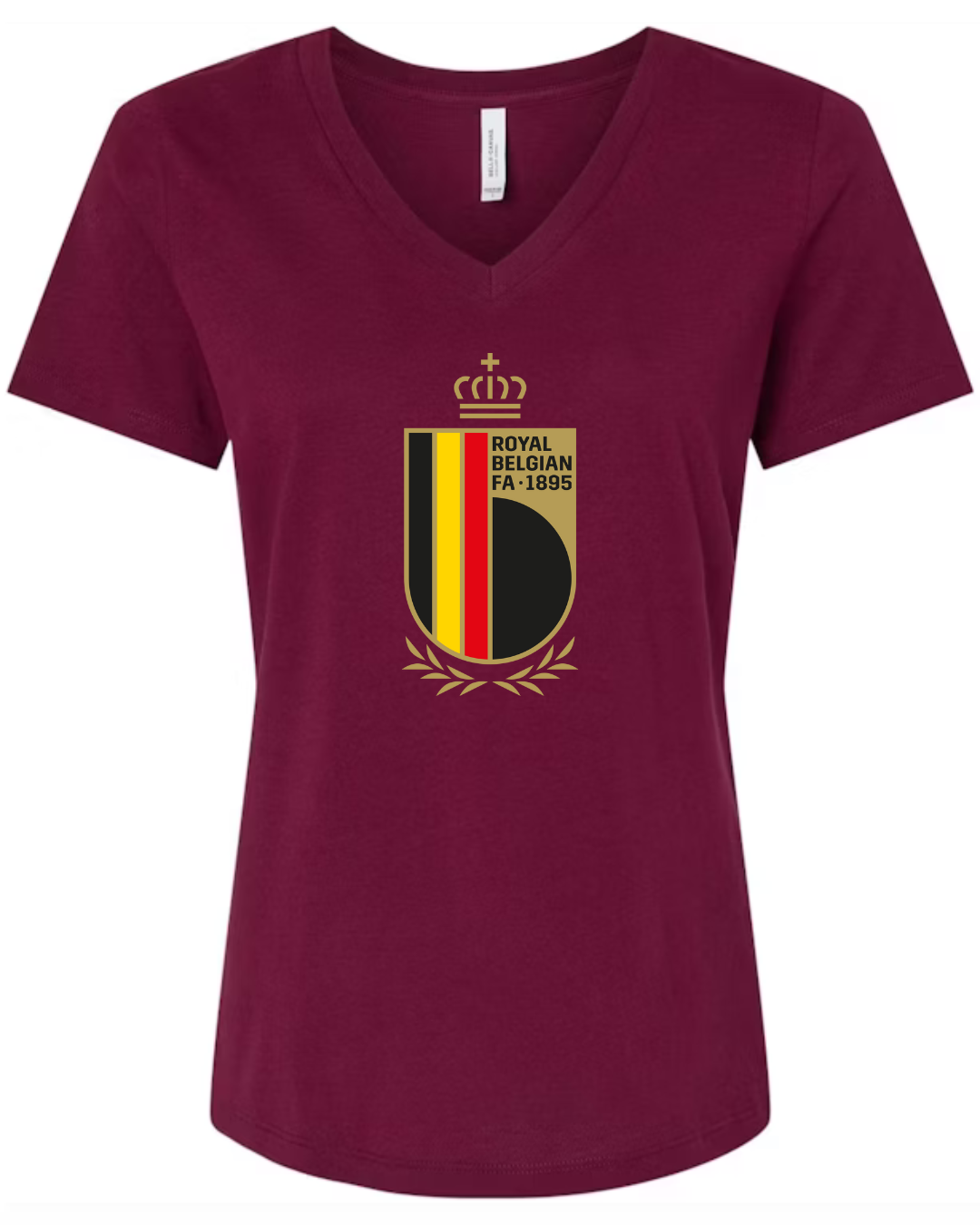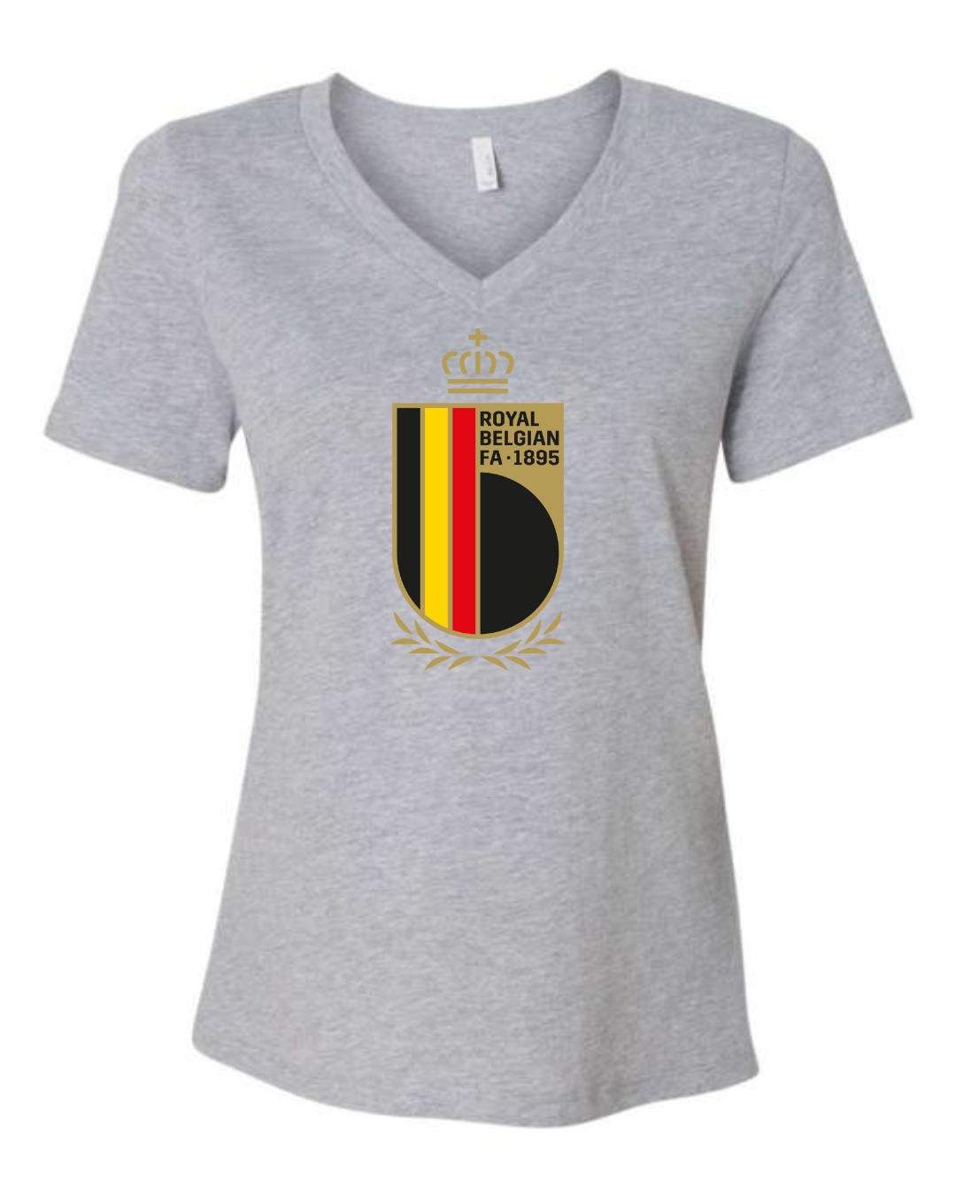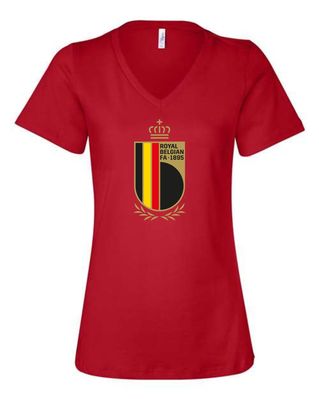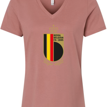 Inspired by the proud football legacy of Belgium, this Bella Canvas Women’s V-Neck Tee features the elegant black, red, and yellow crest of the Royal Belgian Football Association, complete with crown and laurel accents. Perfect for supporters of the Belgian national team and lovers of European football, this tee blends classic heritage with a flattering modern fit. Crafted from Bella Canvas’s ultra-soft cotton blend for all-day comfort. Available in sizes S to 2XL.