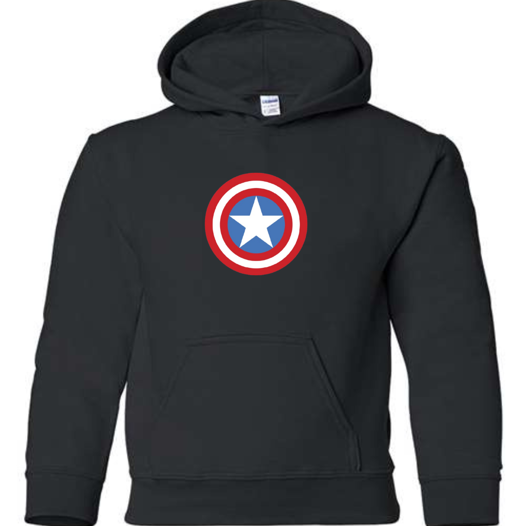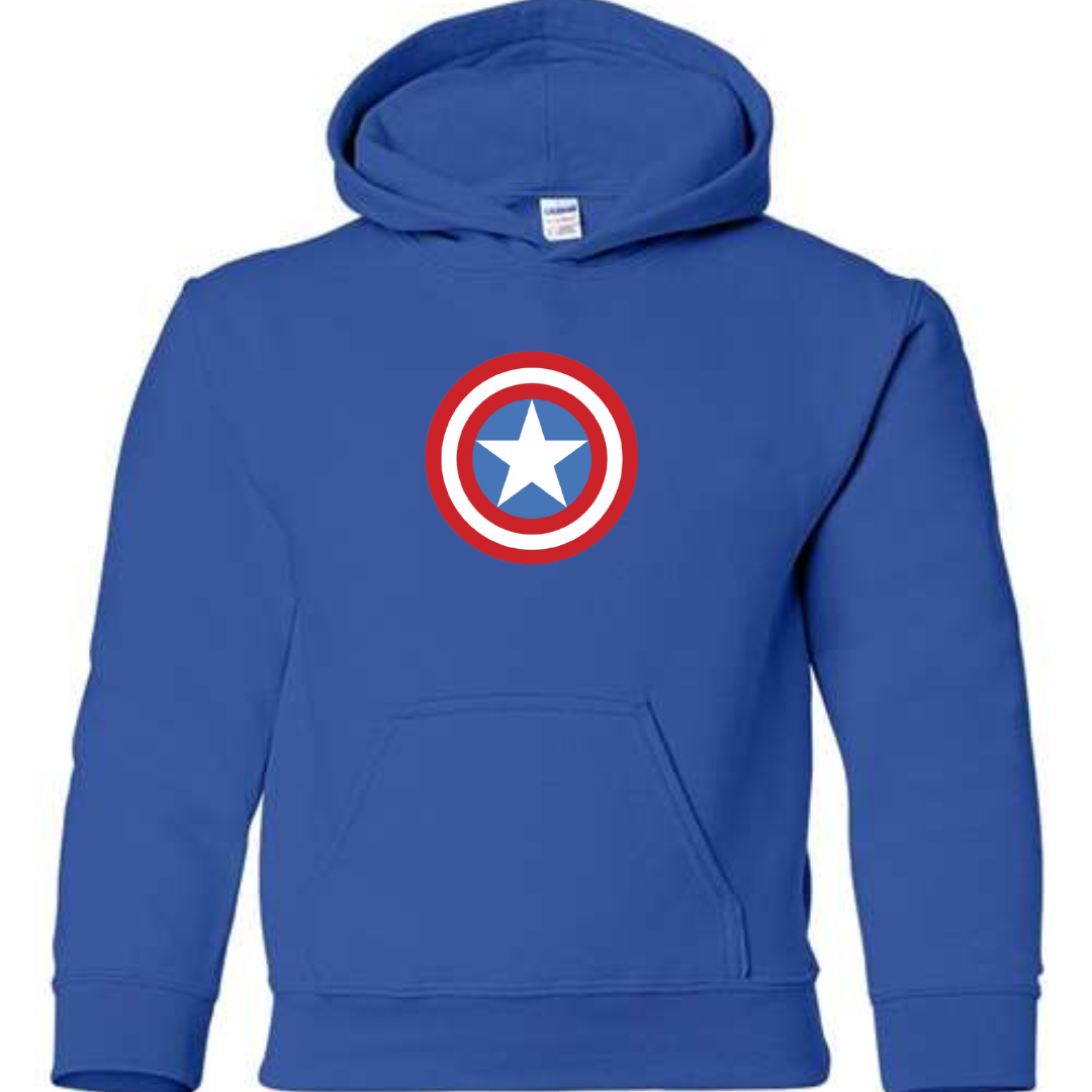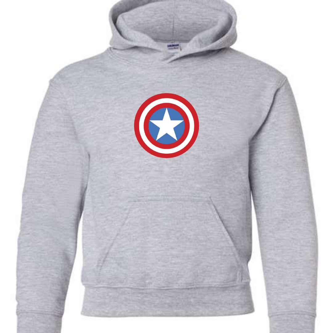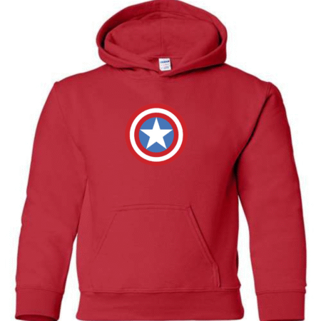 Let your kid show off their heroic side with the Shield Emblem Youth Hoodie. Featuring the bold red, white, and blue shield with a star at the center, this hoodie is perfect for young fans who love adventure and courage. Designed with soft, durable fabric, it keeps kids warm and comfortable whether at school, play, or lounging at home.
