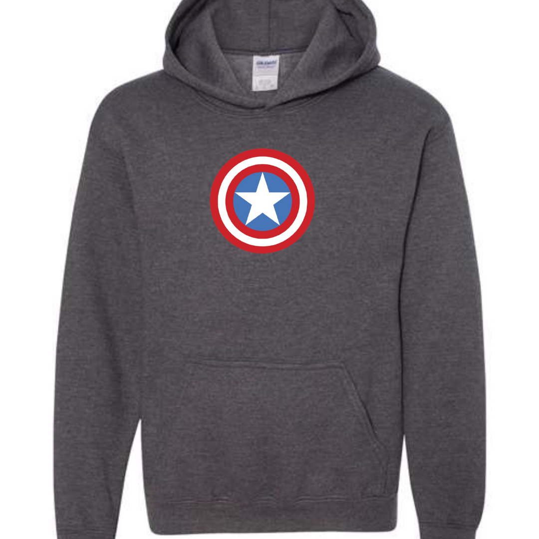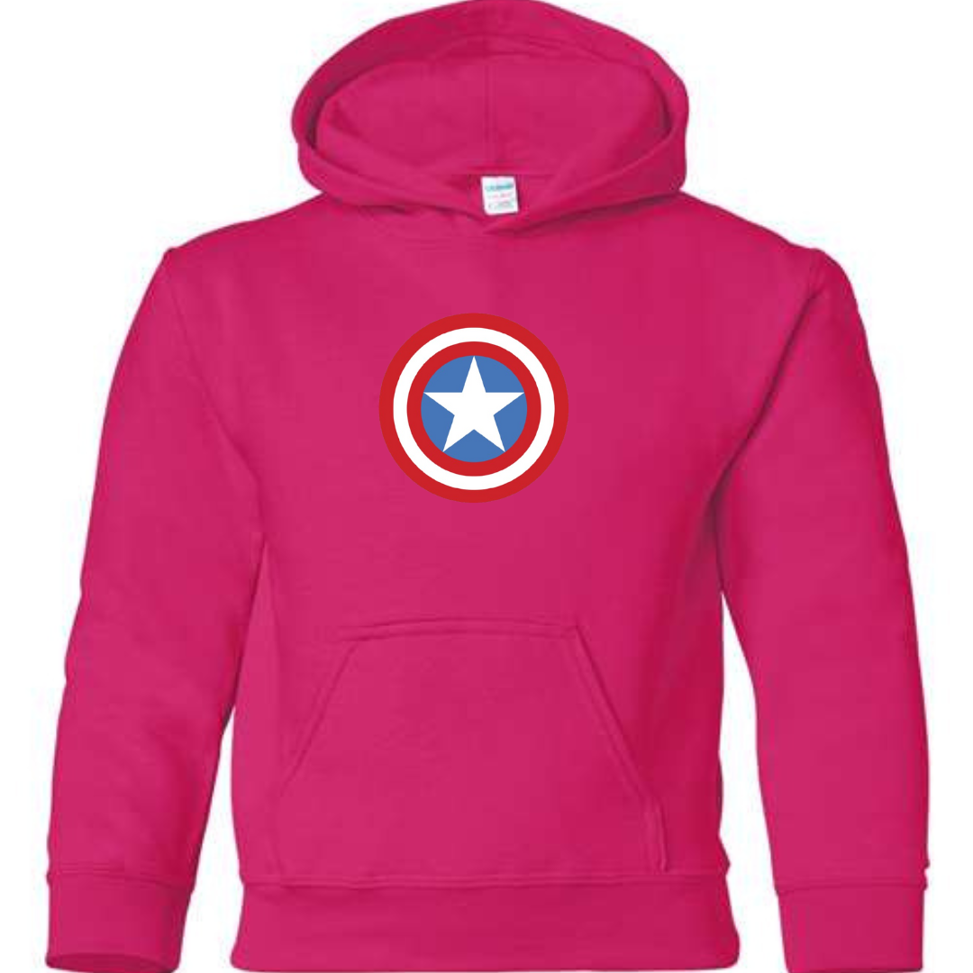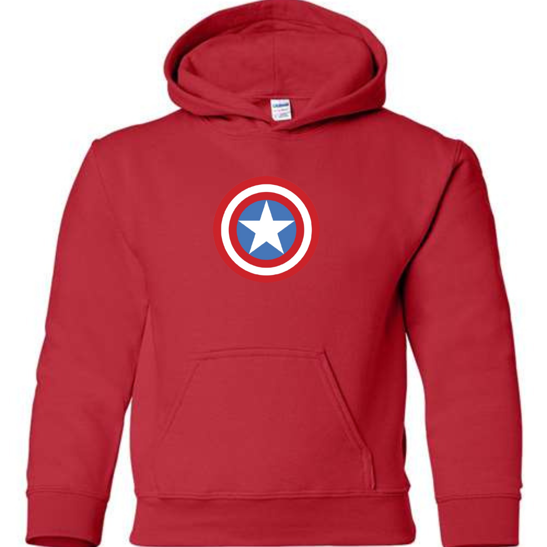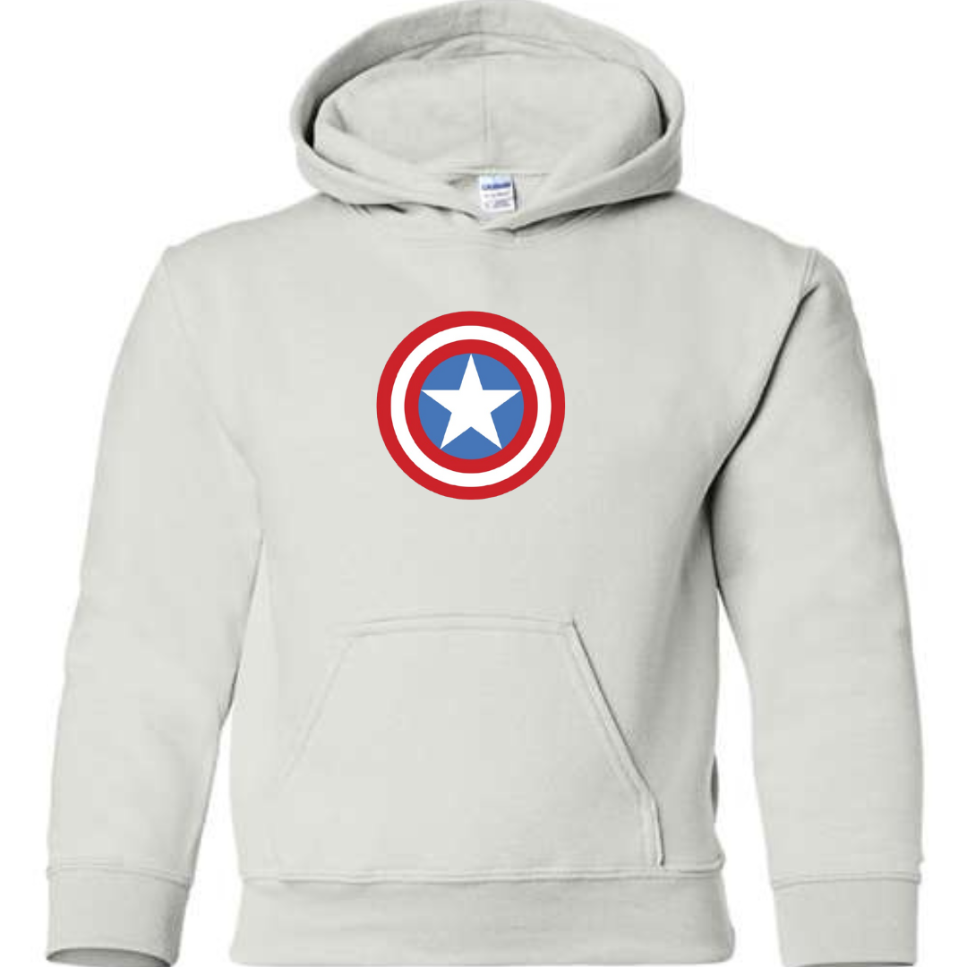 Let your kid show off their heroic side with the Shield Emblem Youth Hoodie. Featuring the bold red, white, and blue shield with a star at the center, this hoodie is perfect for young fans who love adventure and courage. Designed with soft, durable fabric, it keeps kids warm and comfortable whether at school, play, or lounging at home.