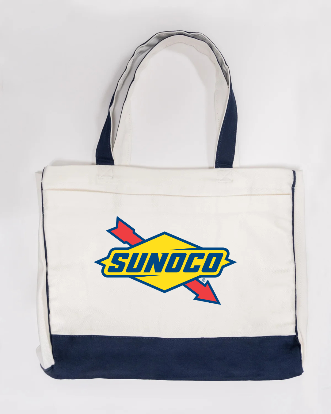 Bring bold racing-fuel energy to your everyday carry with our Sunoco Logo Trimmed Tote Bag. Featuring the iconic Sunoco diamond logo with arrow, this tote blends classic motorsport heritage with practical daily functionality. Crafted from durable canvas fabric and accented with sleek black trimming, it offers a spacious interior perfect for errands, work, school, travel, or everyday essentials. Lightweight, sturdy, and instantly recognizable—ideal for fans of racing culture and vintage fuel-brand style.