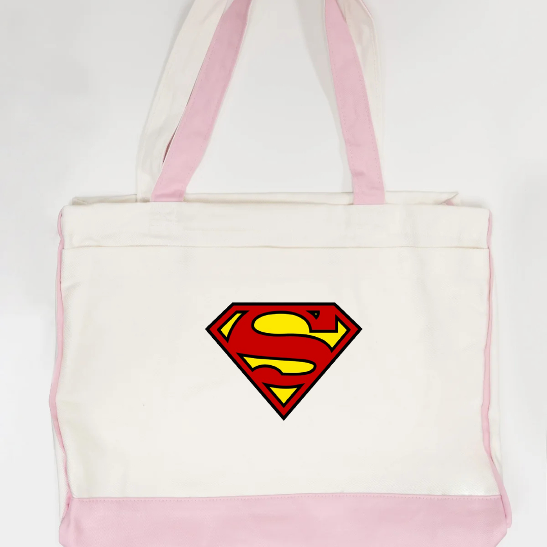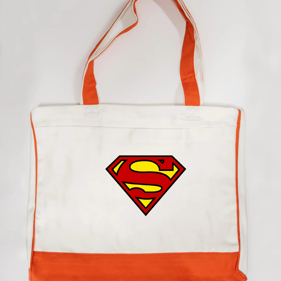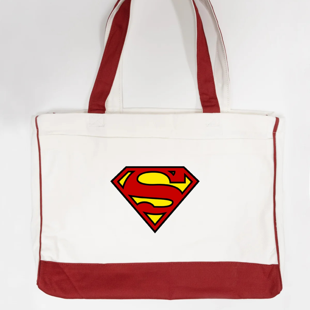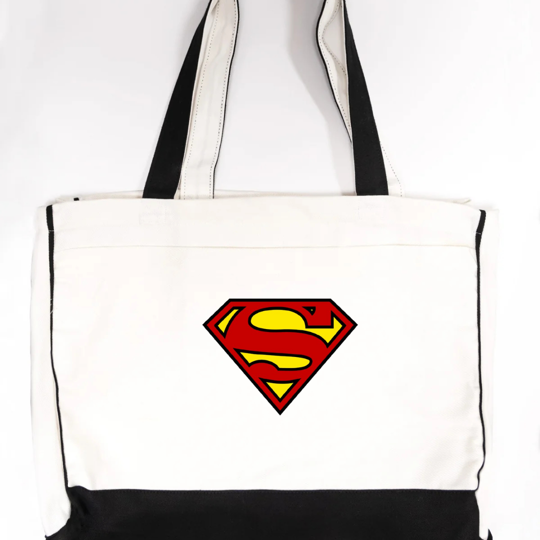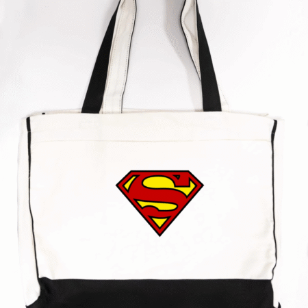 Show off your hero vibes with our Superman Logo Trimmed Tote Bag. Featuring the iconic “S” shield boldly printed on the front, this tote blends everyday functionality with superhero style. Designed with durable canvas and contrast trim for a modern look, it’s roomy enough for books, groceries, or daily essentials while staying lightweight and easy to carry. Perfect for fans who want a mix of practicality and comic-inspired flair.