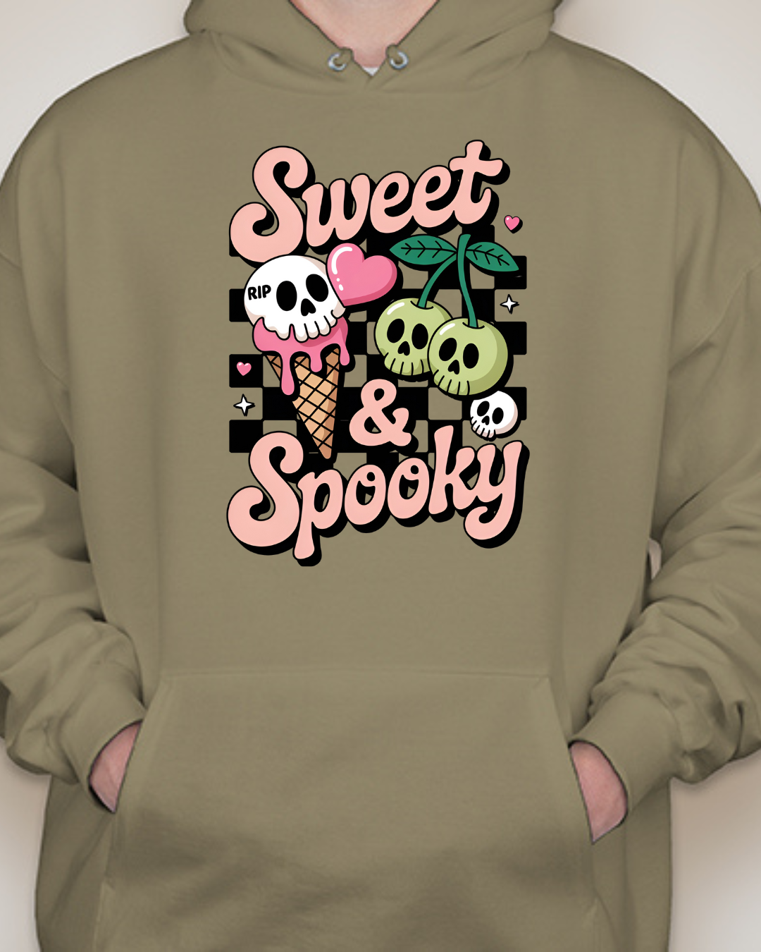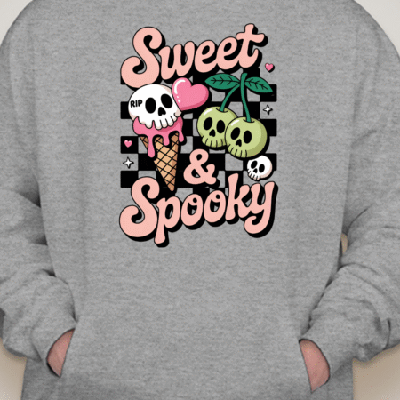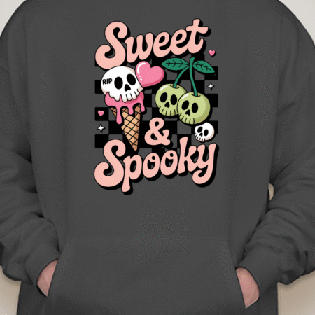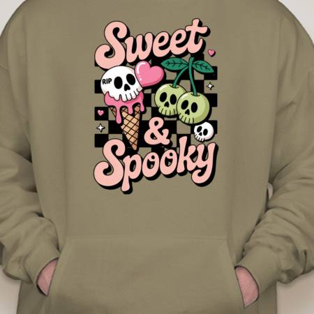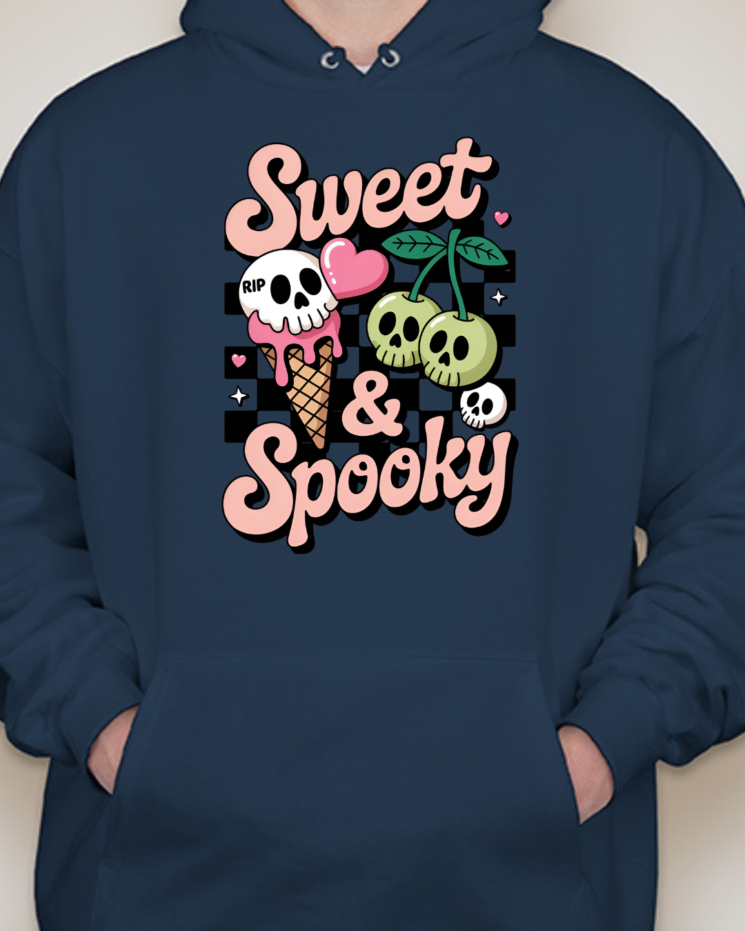 ✔️ “Sweet & Spooky” pastel graphic printed on the chest