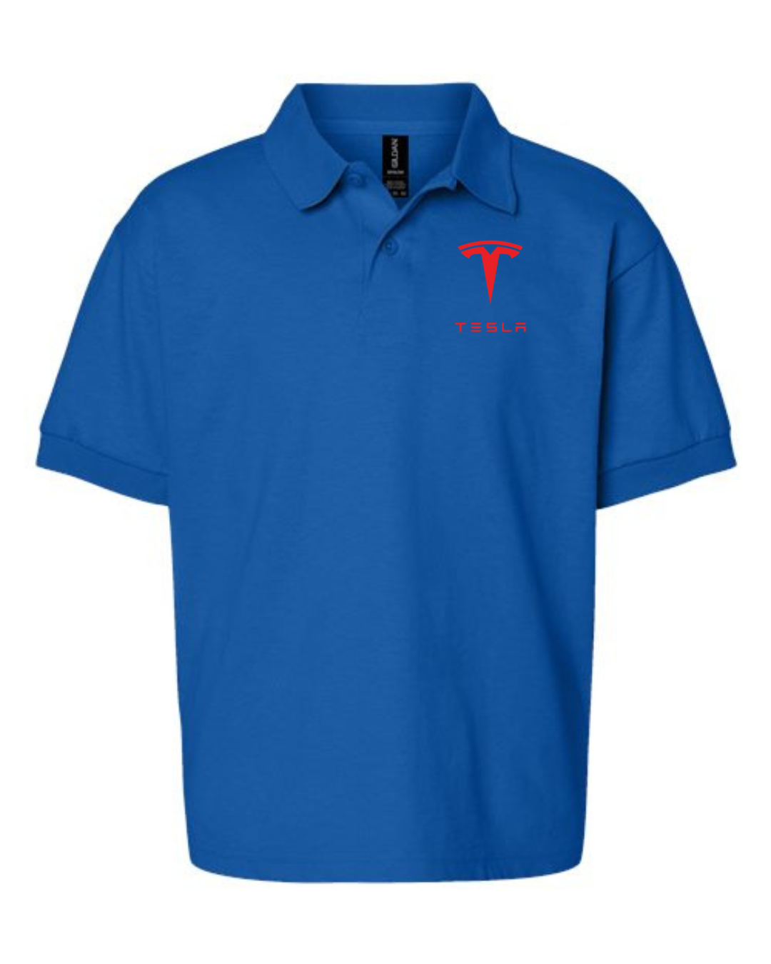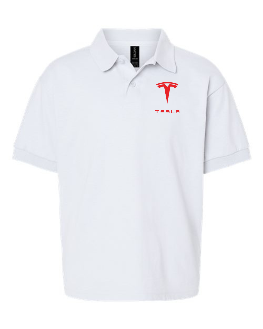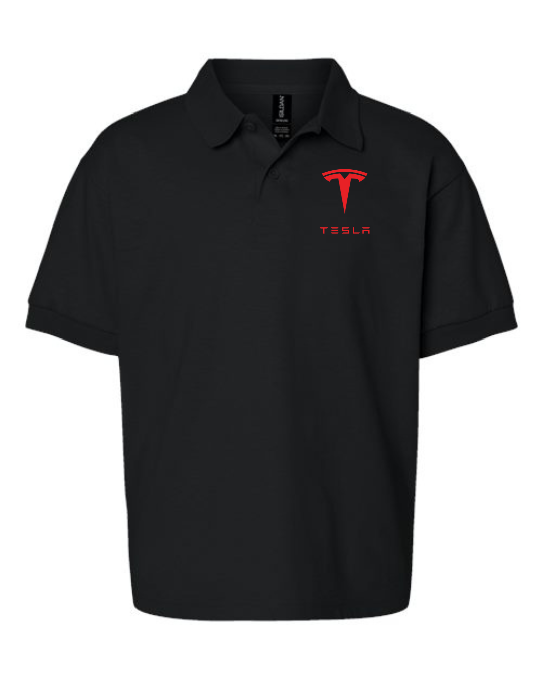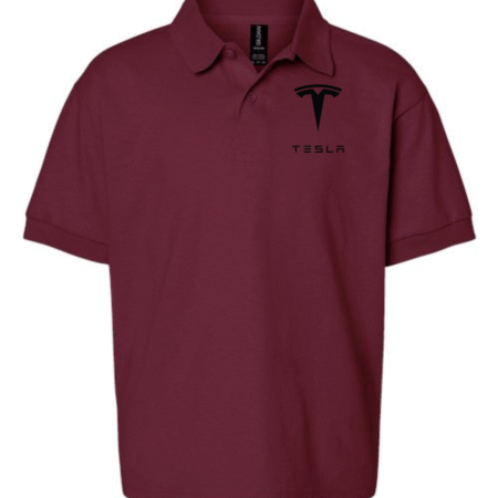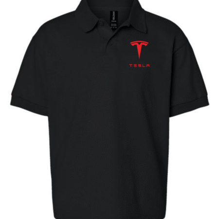 Charge up your look with our Tesla Logo Youth Polo Shirt. Featuring the sleek black Tesla emblem on a bold red polo, this design embodies innovation and style. Perfect for young car enthusiasts and future tech lovers, it offers a clean, modern fit that’s great for school, casual outings, or everyday wear. Available in sizes XS to XL.