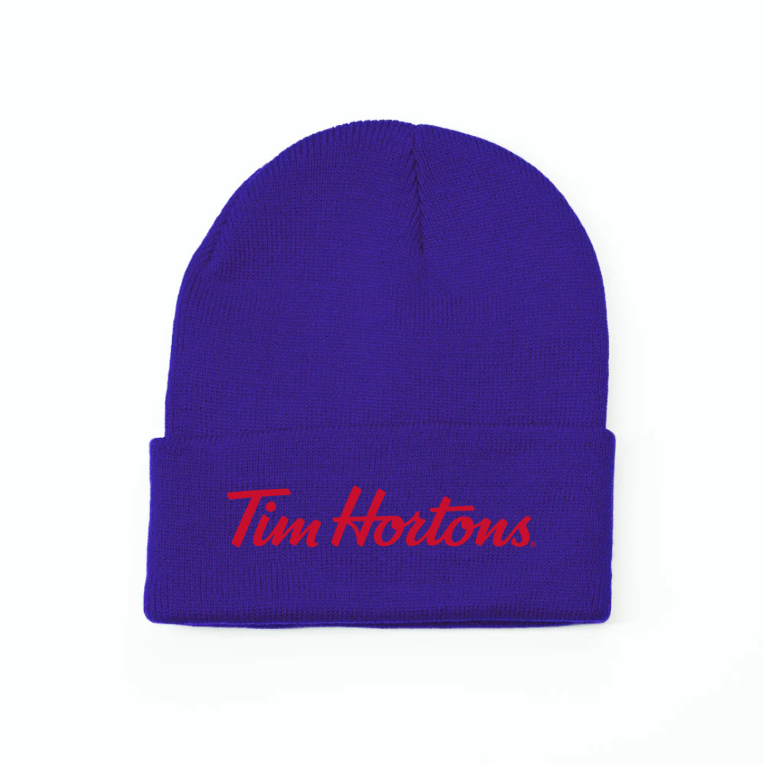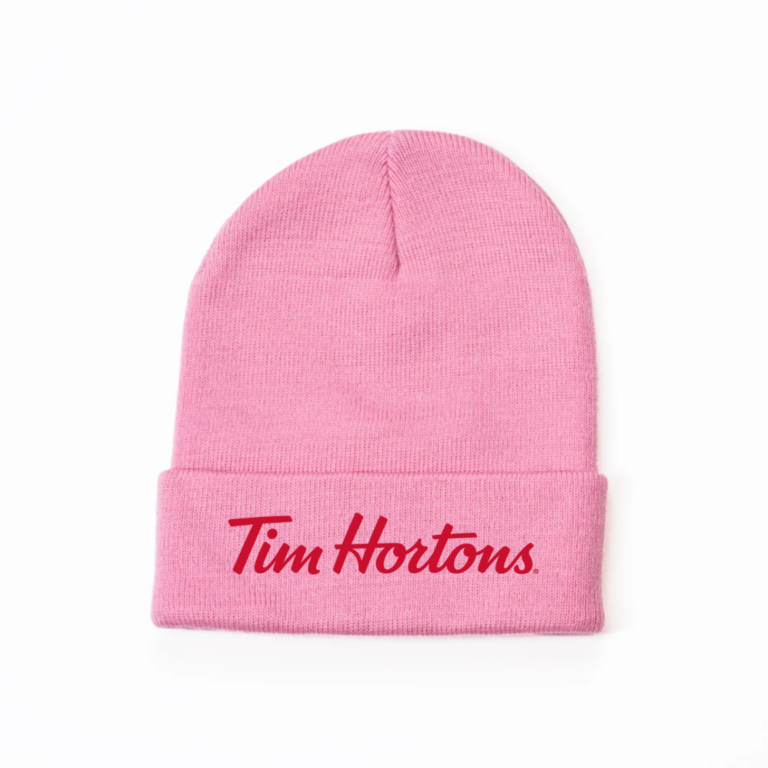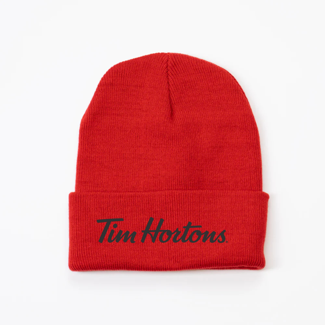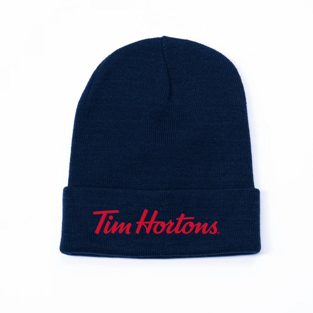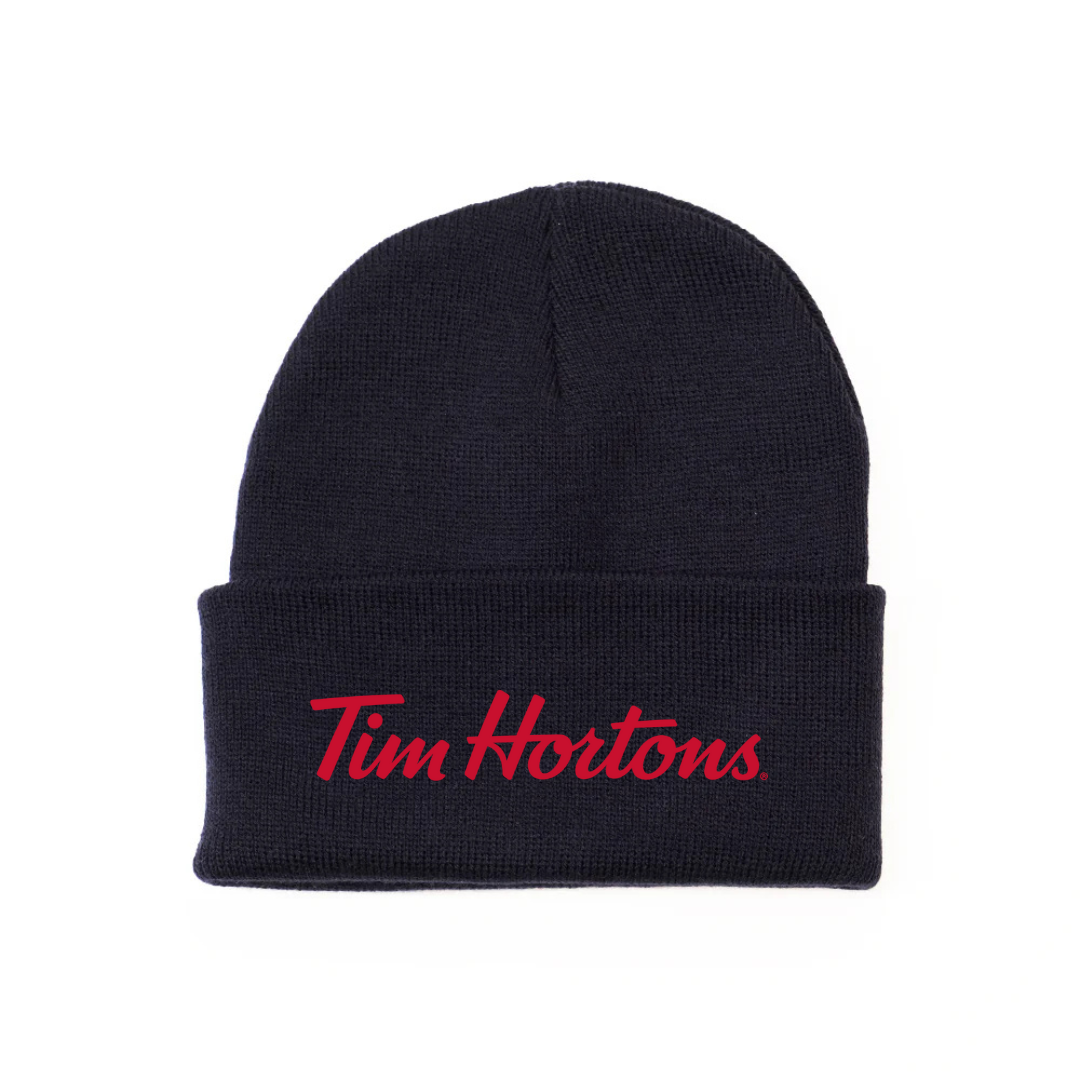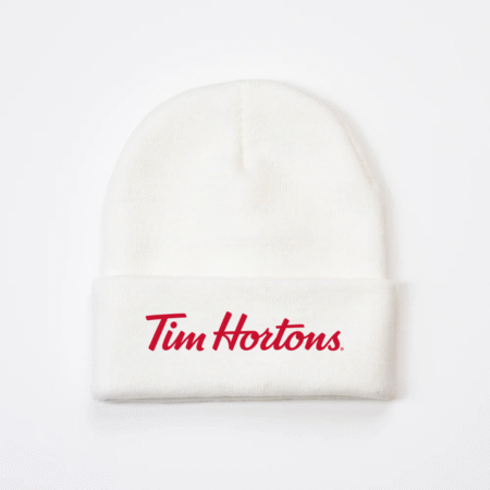 Keep cozy and show your love for Canada’s favorite coffee spot with our Tim Hortons Logo Knit Beanie. Featuring the classic Tim Hortons script embroidered on the front, this beanie offers both comfort and iconic style. Made from soft knit fabric, it provides warmth on chilly mornings — perfect for coffee runs, winter walks, or casual everyday wear.