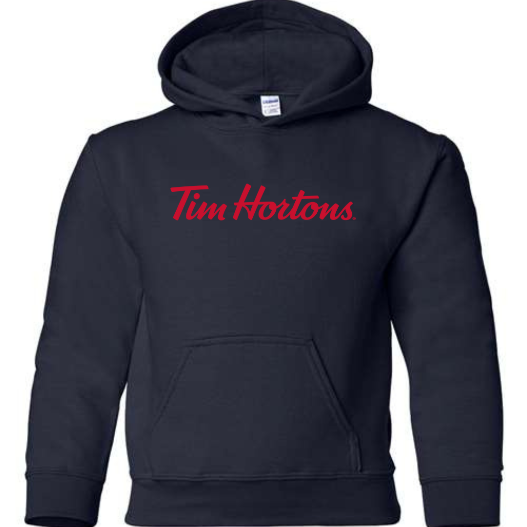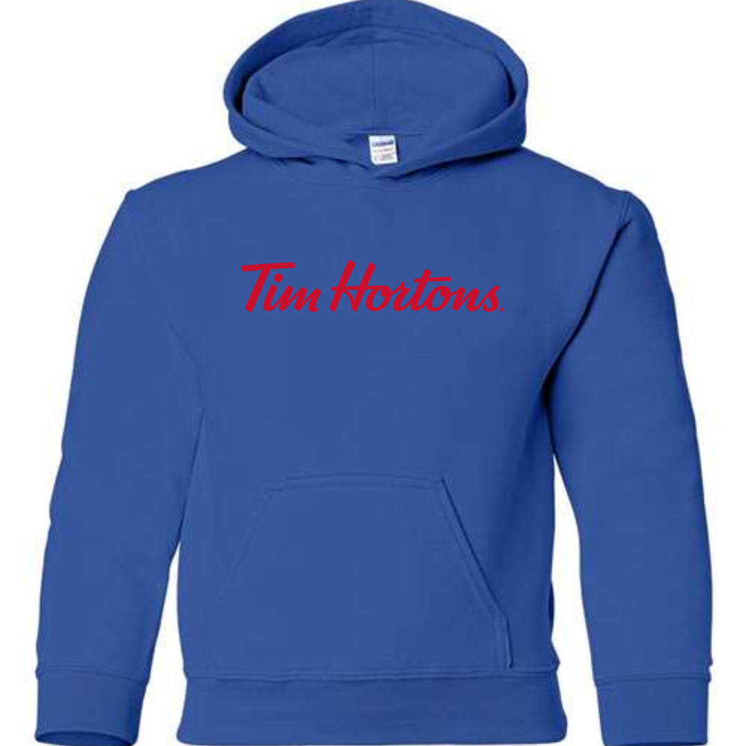 Cozy, classic, and perfect for young fans of the iconic coffee brand—the Tim Hortons Logo Youth Hoodie delivers everyday comfort with a clean, recognizable look. Featuring the famous Tim Hortons script logo across the chest, this hoodie is great for school, casual wear, or lounging in warm comfort.