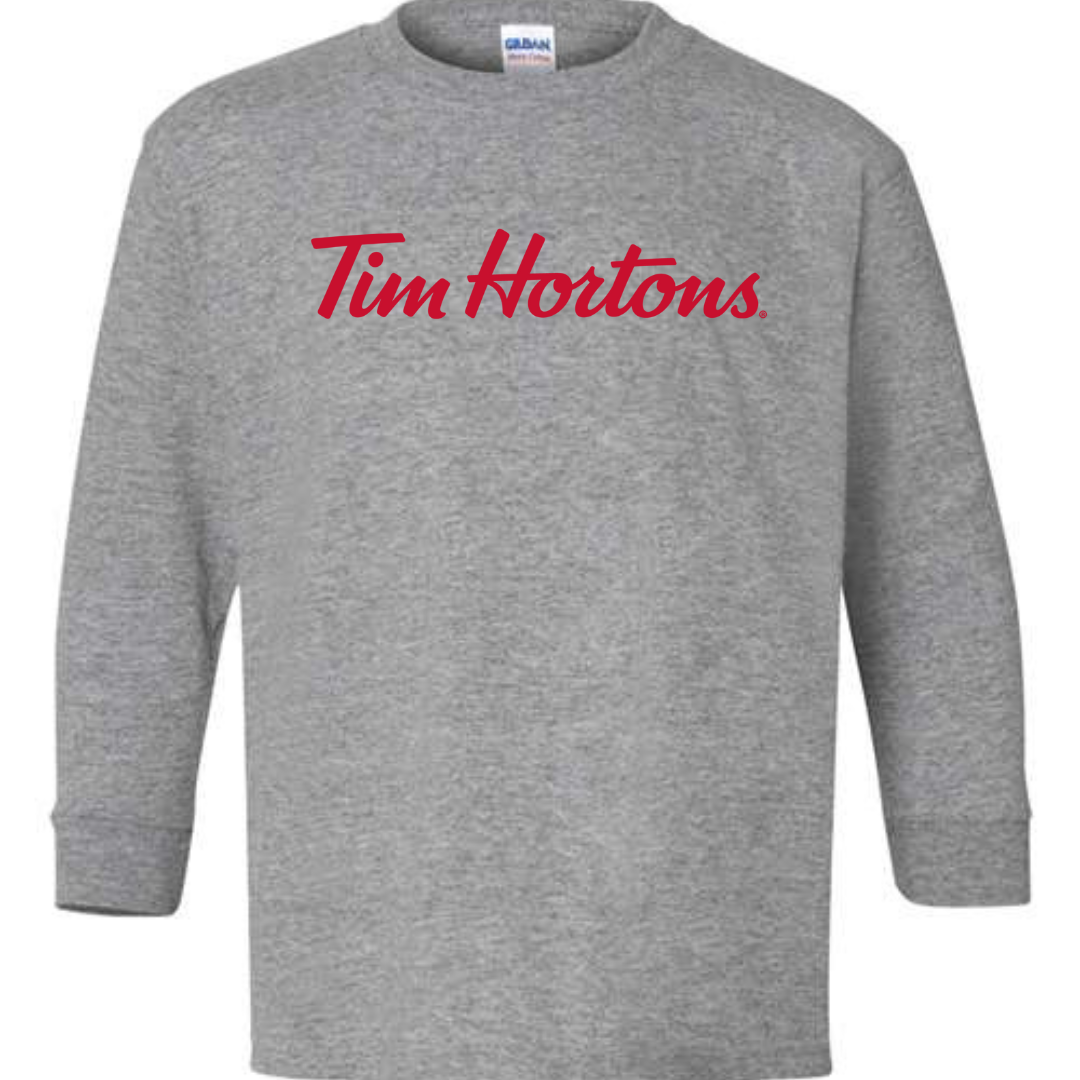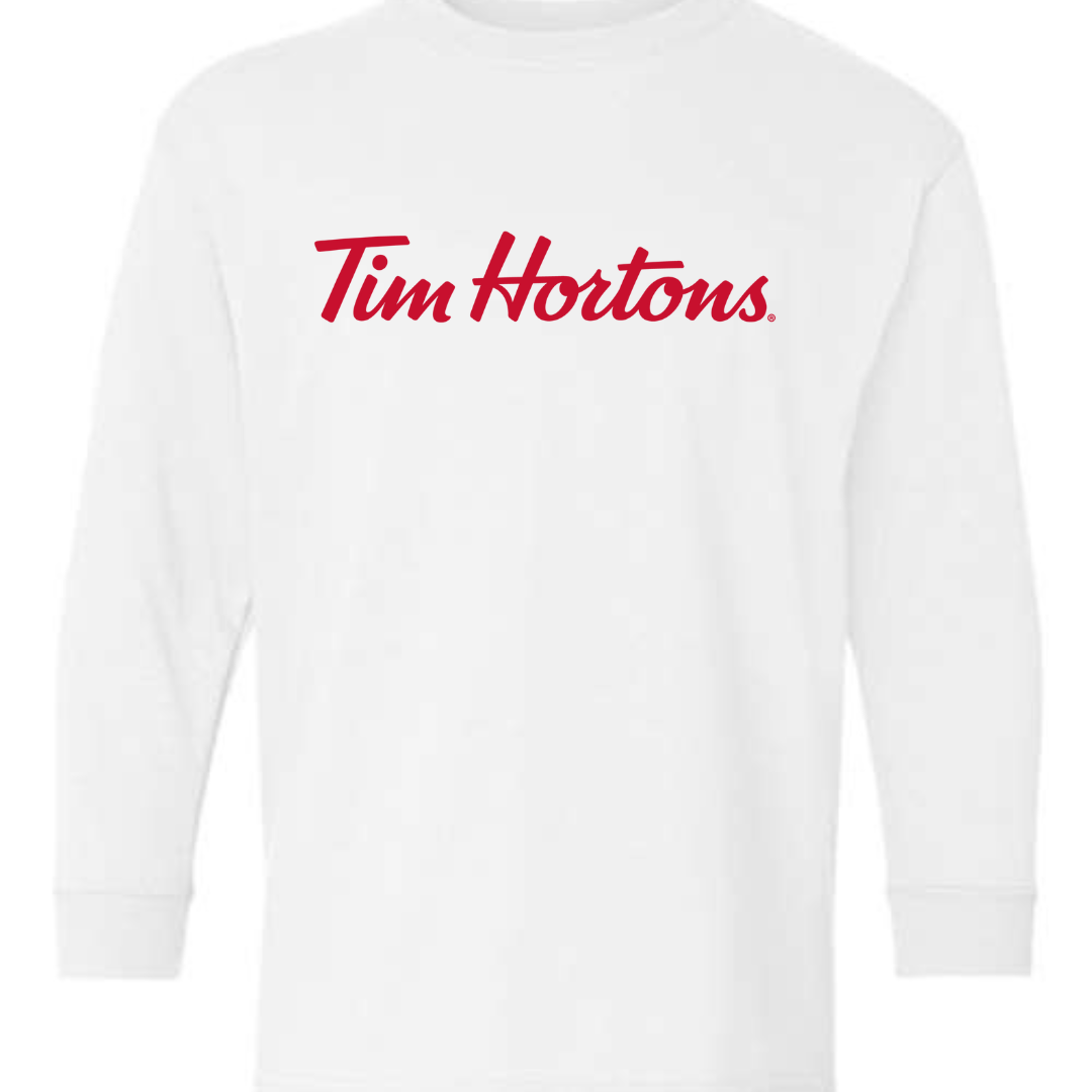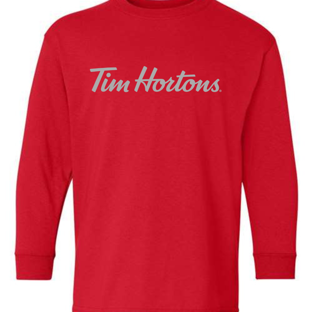 Cozy, classic, and perfect for young fans of Canada’s favorite coffee brand — this Tim Hortons Logo Youth Long Sleeve T-Shirt features the iconic red script logo across the chest. Whether they love donuts, hot chocolate, or simply bold branding, this tee delivers everyday comfort with a clean, recognizable design. Made from soft cotton-blend fabric with ribbed cuffs, it’s great for school, casual wear, or layering on cooler days.