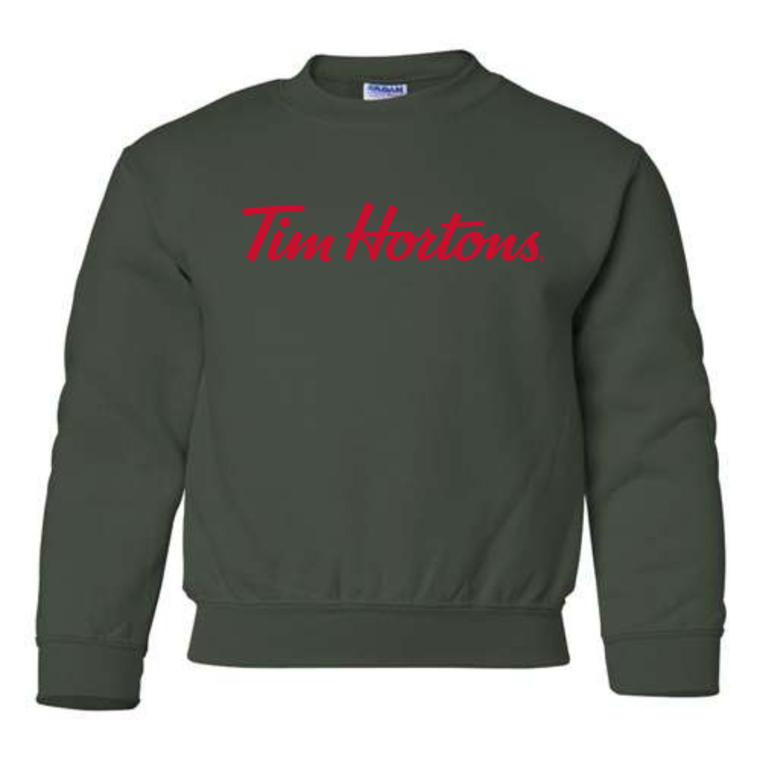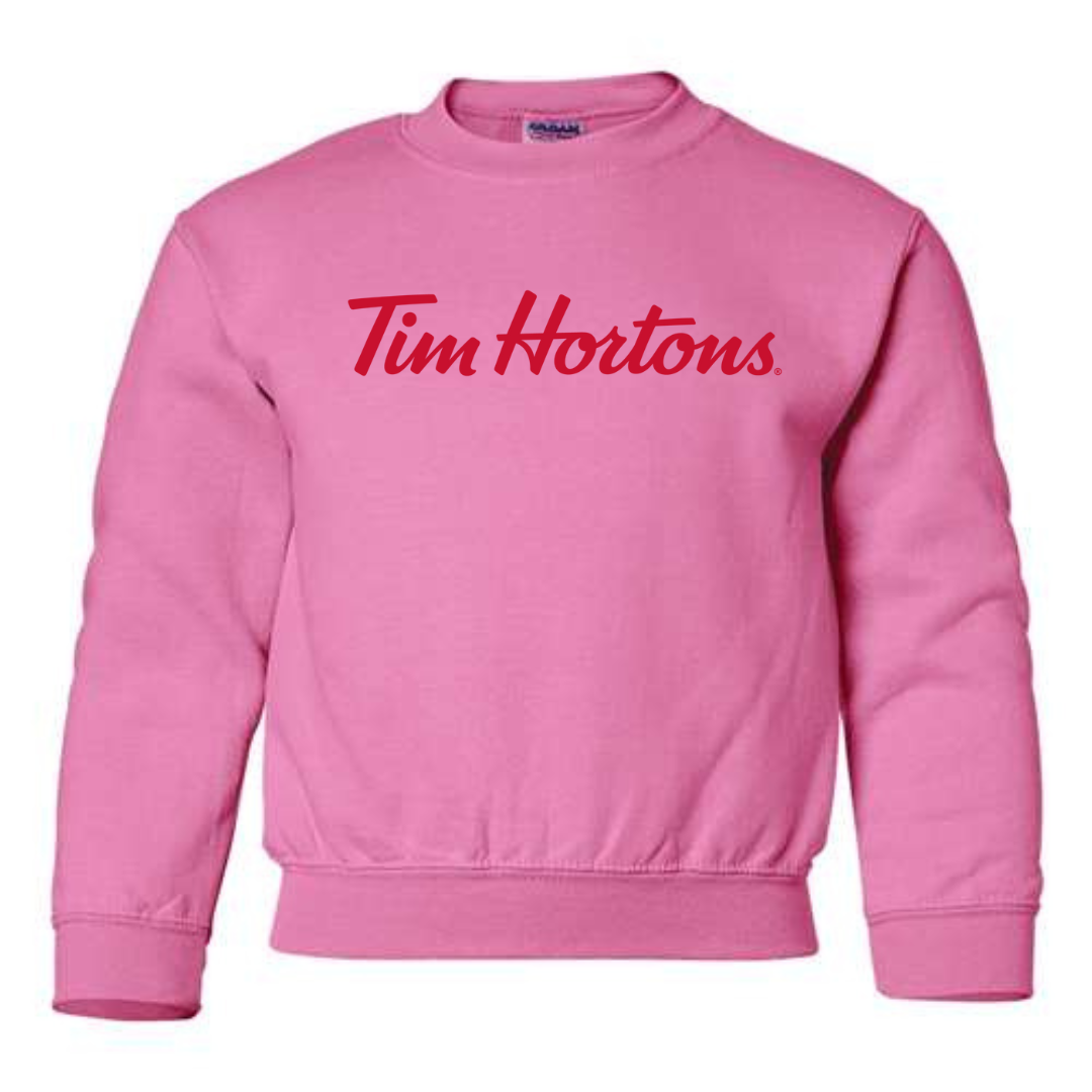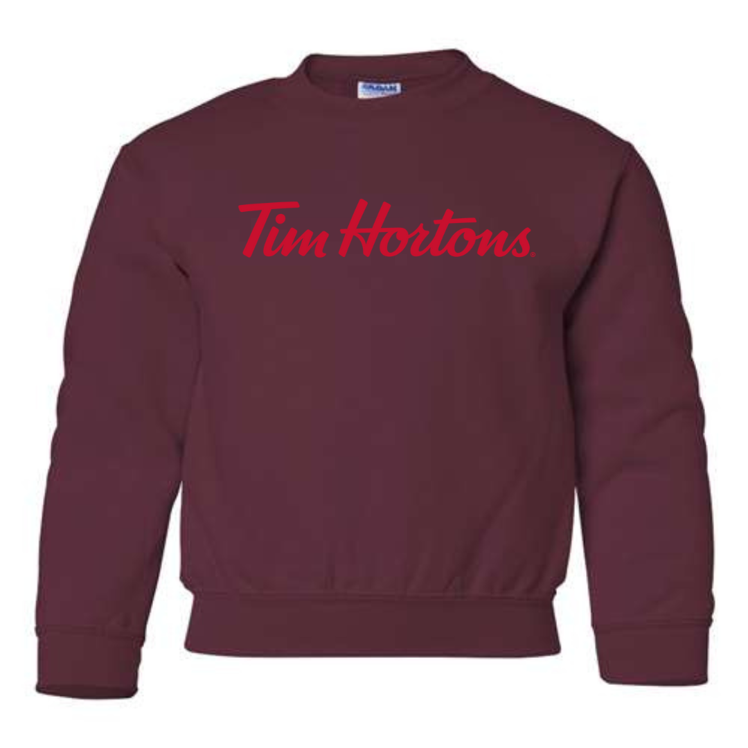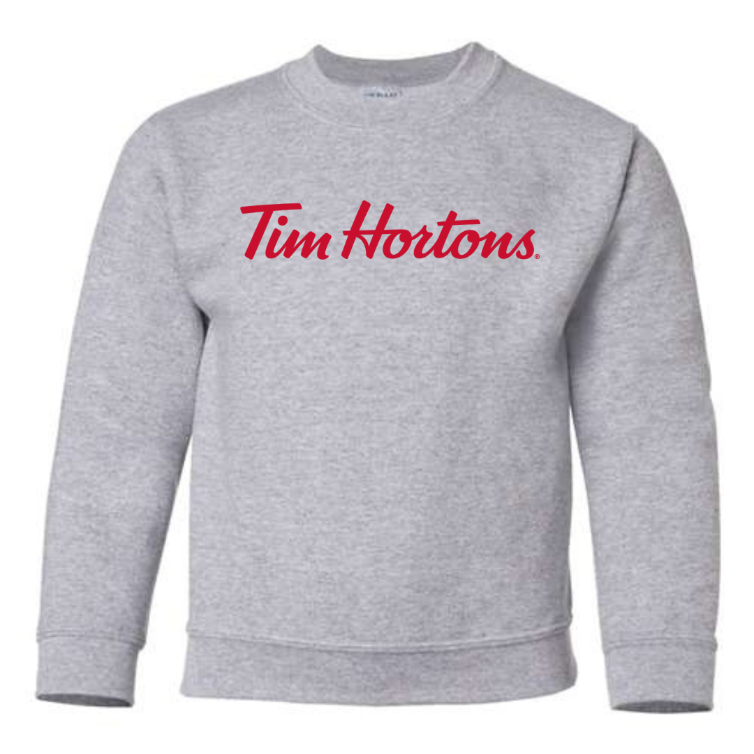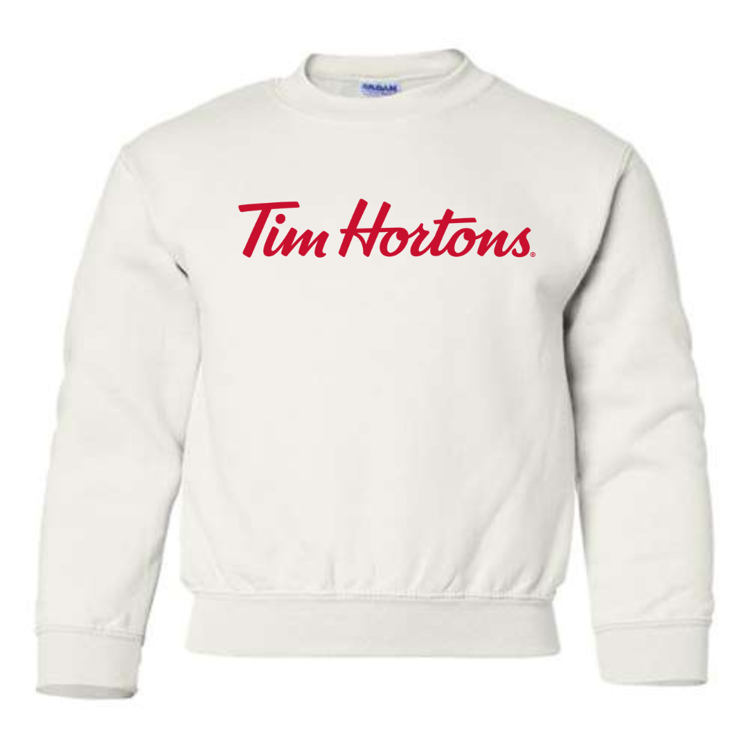 Warm up their wardrobe with the Tim Hortons Logo Youth Sweatshirt. Featuring the iconic red Tim Hortons script across the chest, this pullover blends cozy comfort with the familiar charm of a beloved café brand. Perfect for school, casual outings, or relaxing at home, it’s a great pick for young fans of simple, recognizable designs. Available in youth sizes XS to XL.