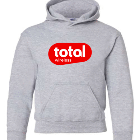 Simple, bold, and comfortable—the Total Wireless Logo Youth Hoodie is perfect for kids who love standout style. Featuring the recognizable red and white Total Wireless logo, this hoodie combines a clean look with soft, durable comfort. Ideal for school, casual wear, or lounging at home in cozy style.