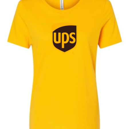Show off your logistics pride with this UPS logo women’s t-shirt. Featuring the iconic brown and gold shield, this tee is ideal for delivery drivers, postal fans, or anyone who loves repping the world’s most dependable shipping brand. A clean and bold design that speaks for itself.
