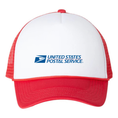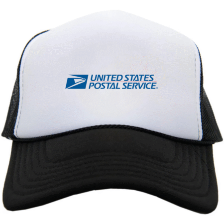 Show your postal pride with our USPS United States Postal Service Logo Trucker Cap. Featuring the official-style USPS eagle emblem and text on the structured front panel, this cap delivers a clean, recognizable, and classic look. The breathable mesh back and adjustable snap closure ensure all-day comfort — perfect for USPS employees, supporters, collectors, or anyone who loves iconic American service logos.